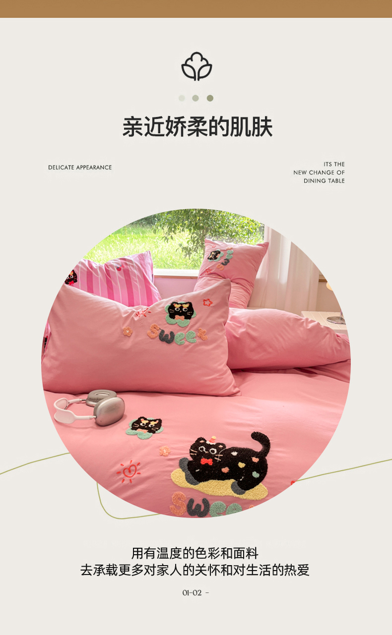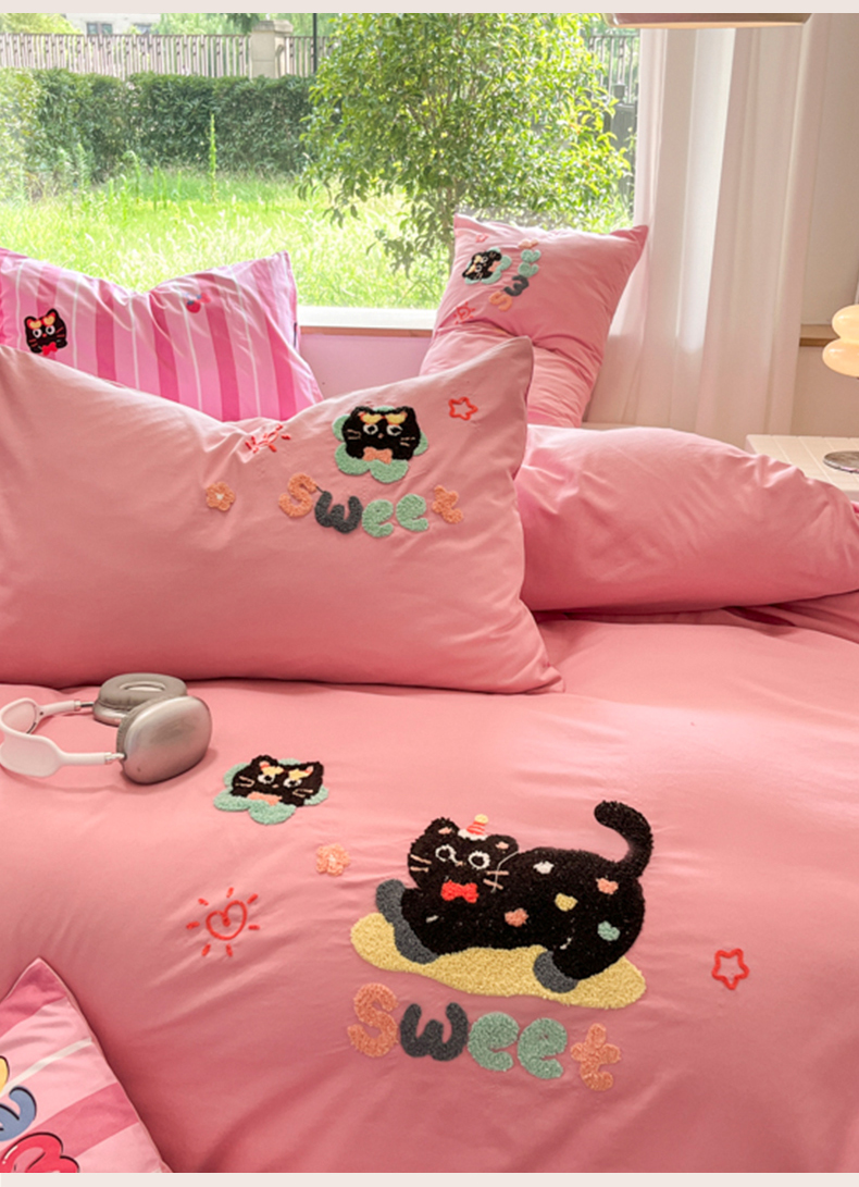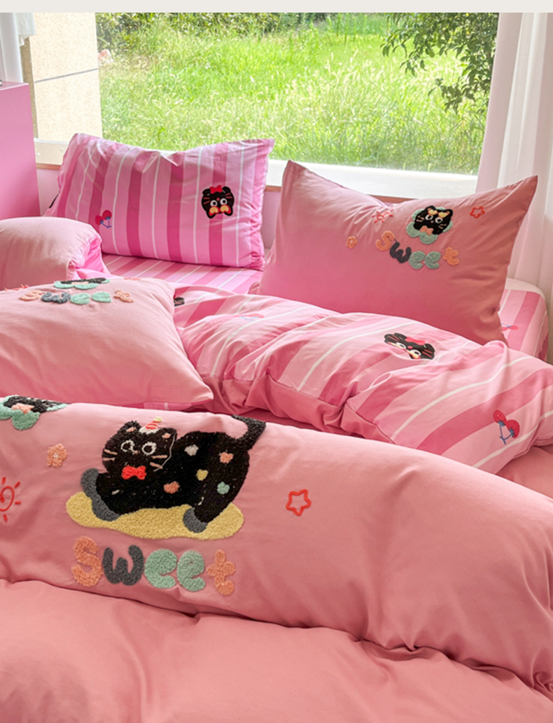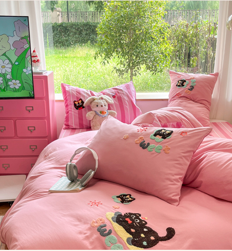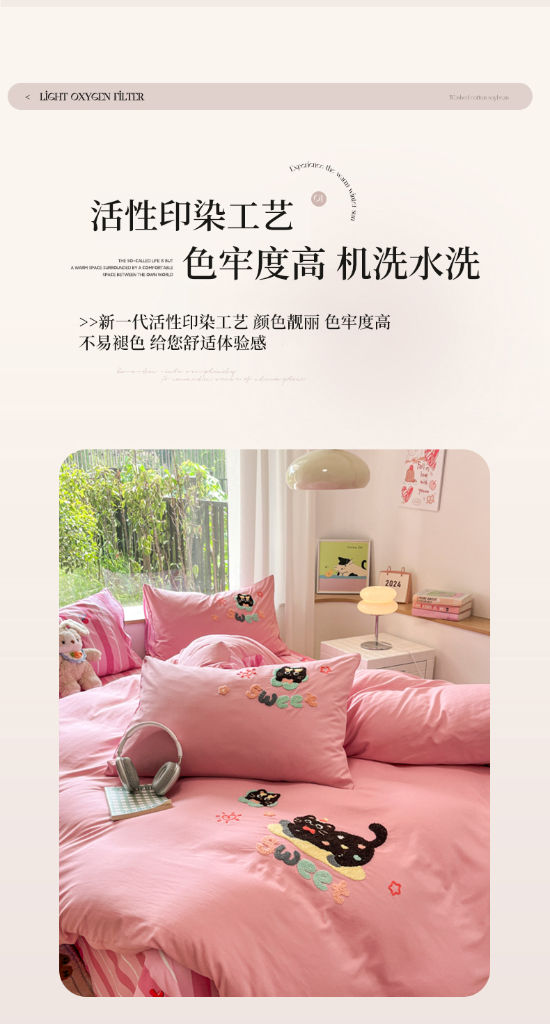 当前位置: 91家纺网 > 商品网购 > 床品套件 > 四件套 > 水洗棉四件套 > 晚爱家纺 2025新款A类ins风毛巾绣超柔亲肤云朵棉四件套 粉色猫咪
