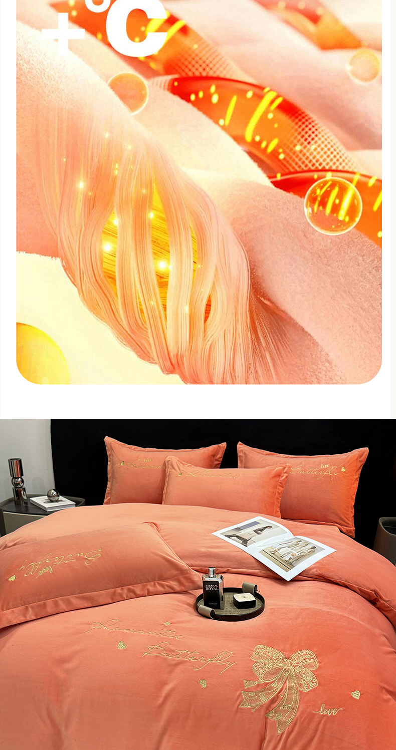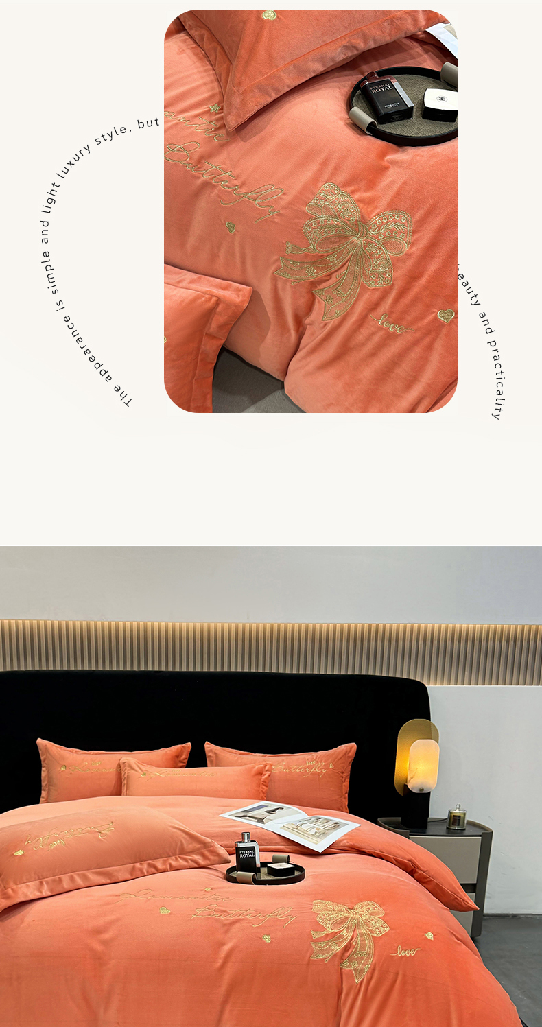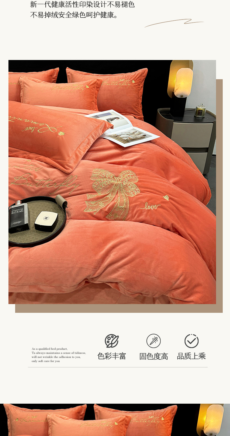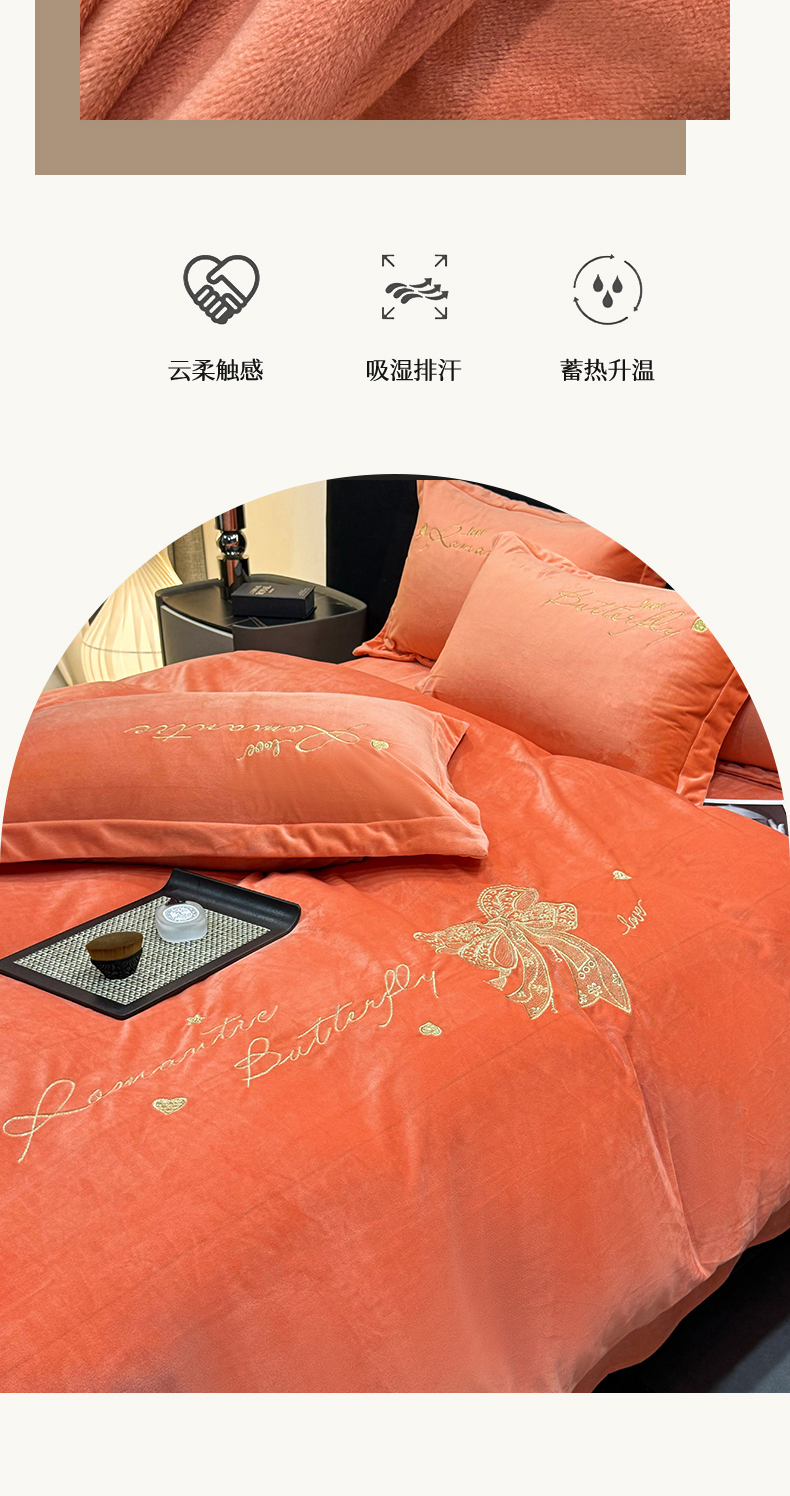 富之航 2024新款宝宝绒刺绣四件套 邂逅-活力橙