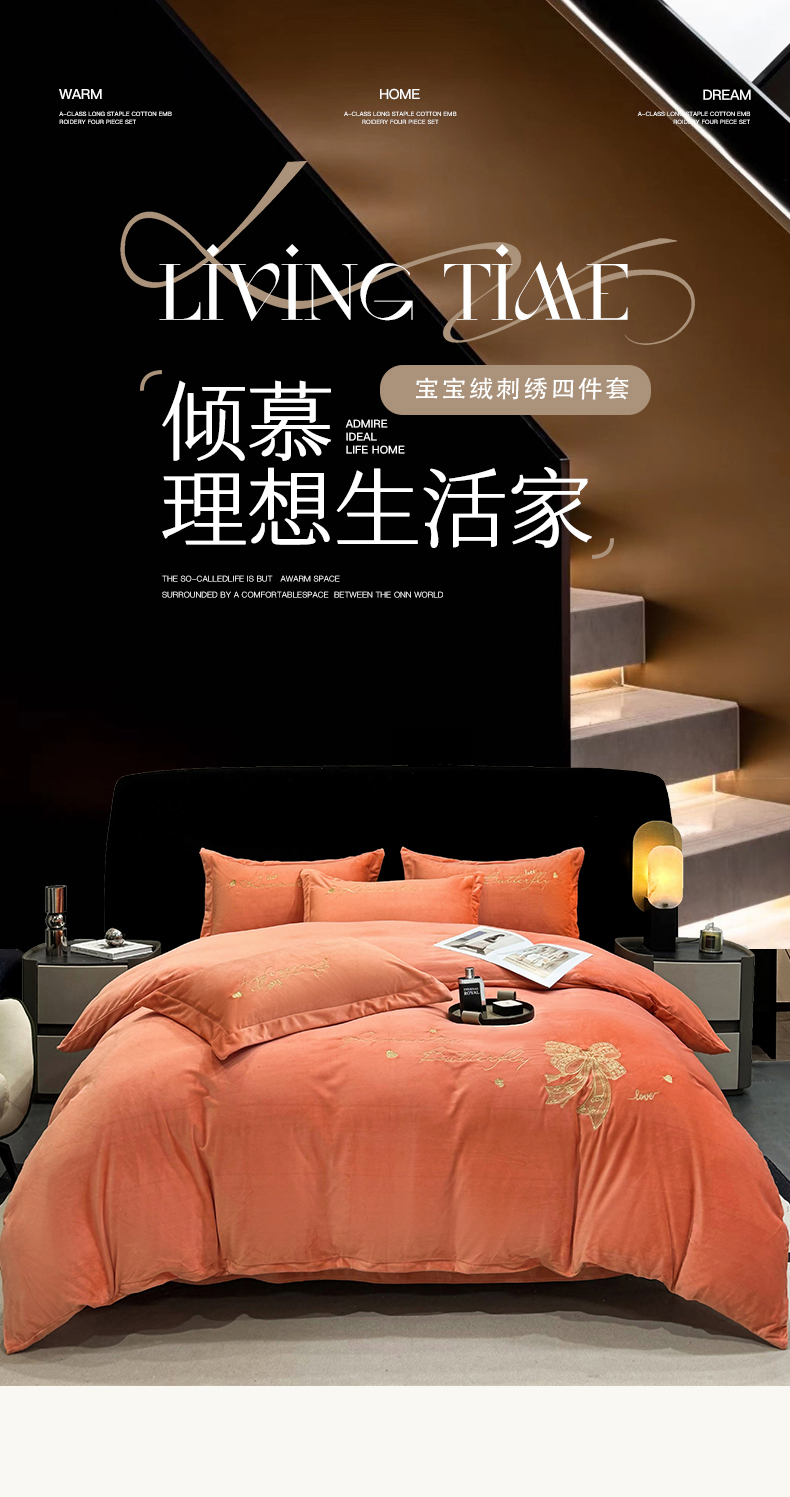 商品名称:富之航 2024新款宝宝绒刺绣四件套 邂逅-活力橙