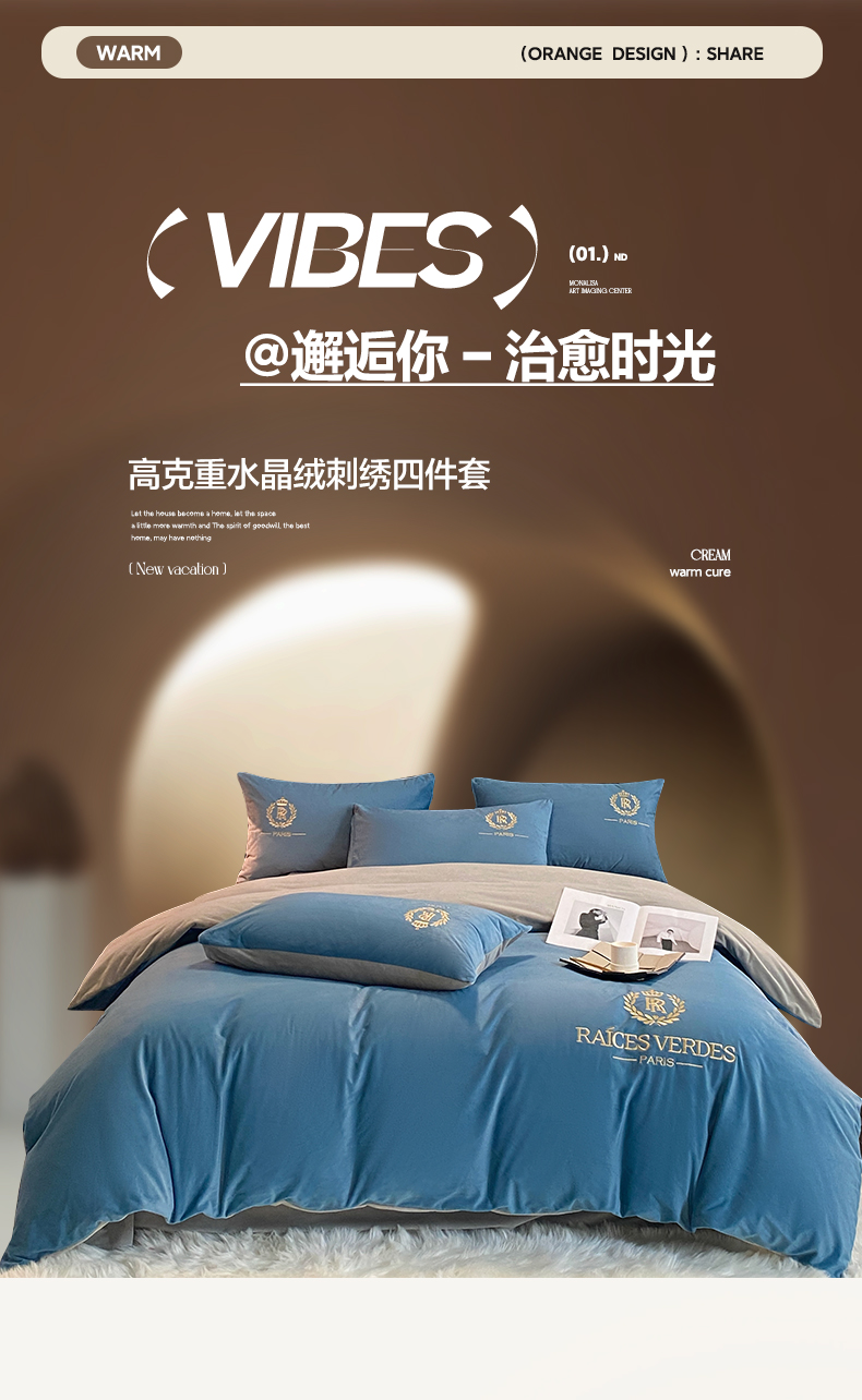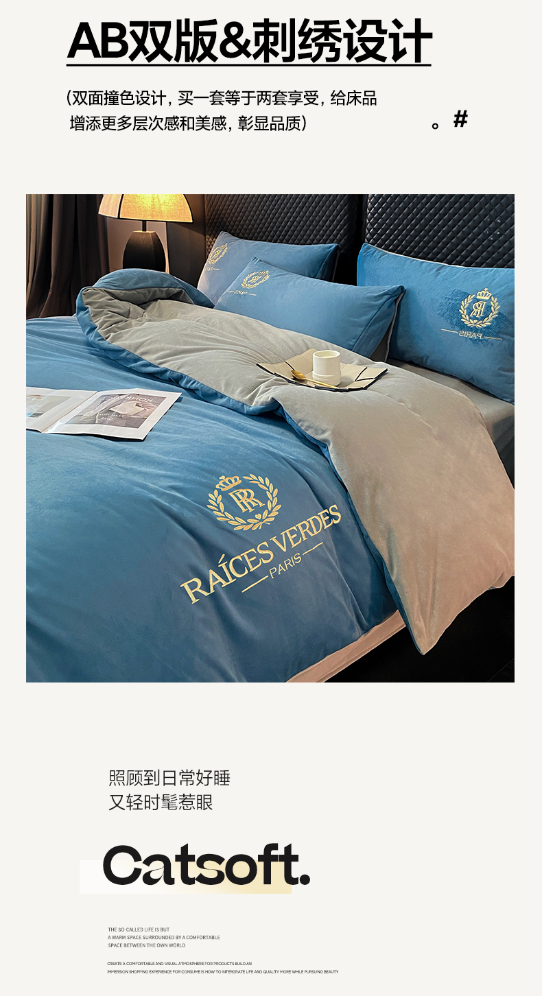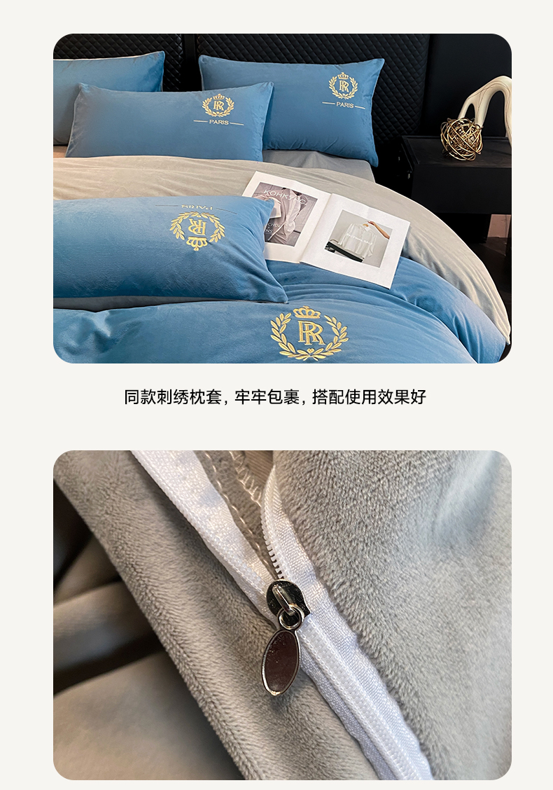 (总)如一 2025新款水晶绒双拼刺绣四件套轻羽系列-系列二,轻羽-典雅灰,轻羽-落日橙,轻羽-奶白咖,轻羽-深灰银,轻羽-雾蓝灰,轻羽-豆沙灰