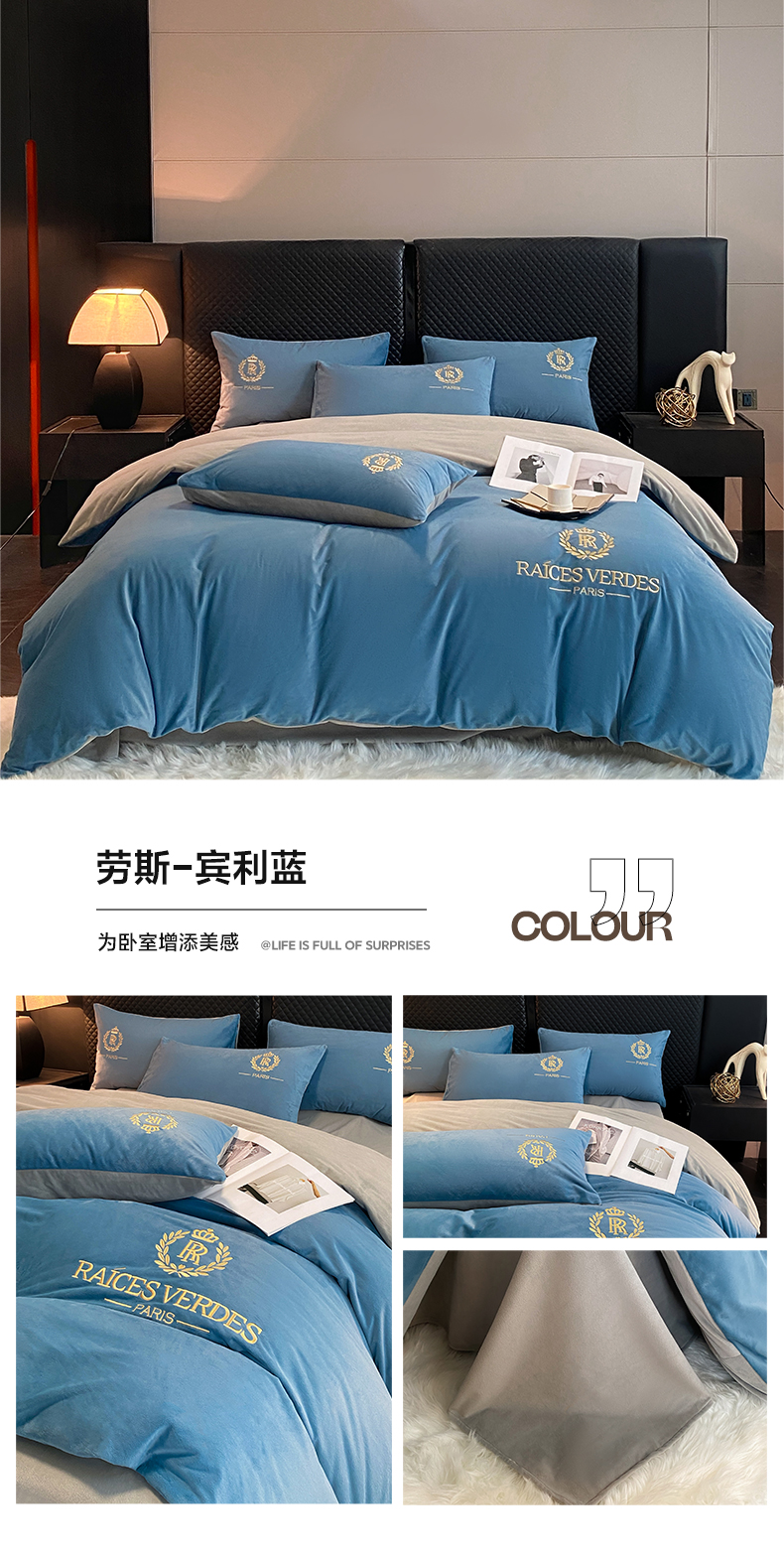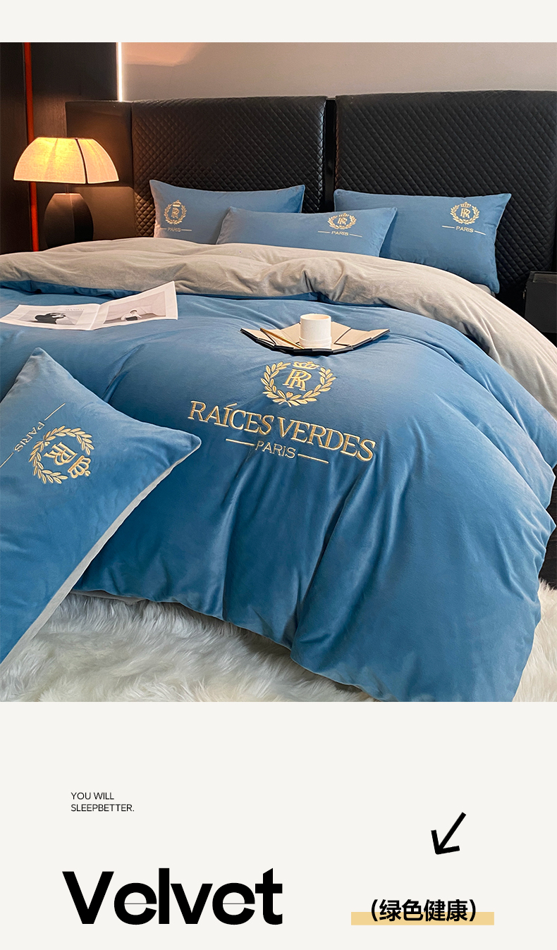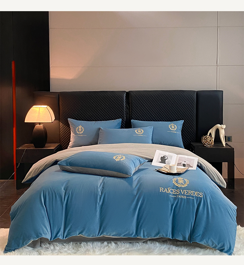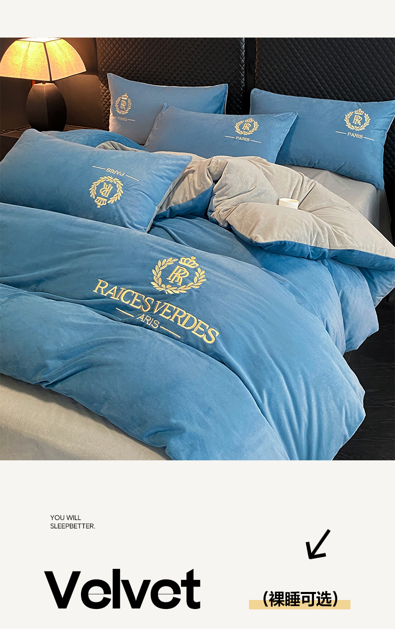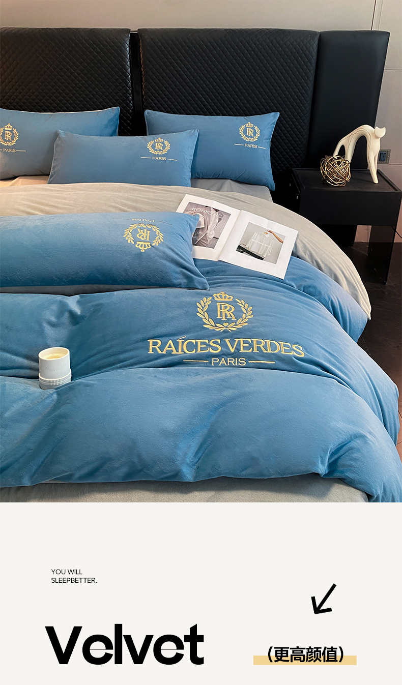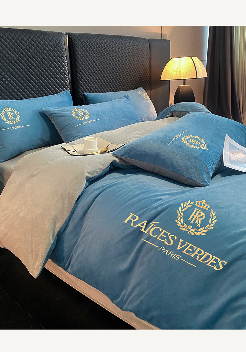 商品名称:如一 2024新款水晶绒双拼刺绣四件套-劳斯系列 劳斯-宾利蓝