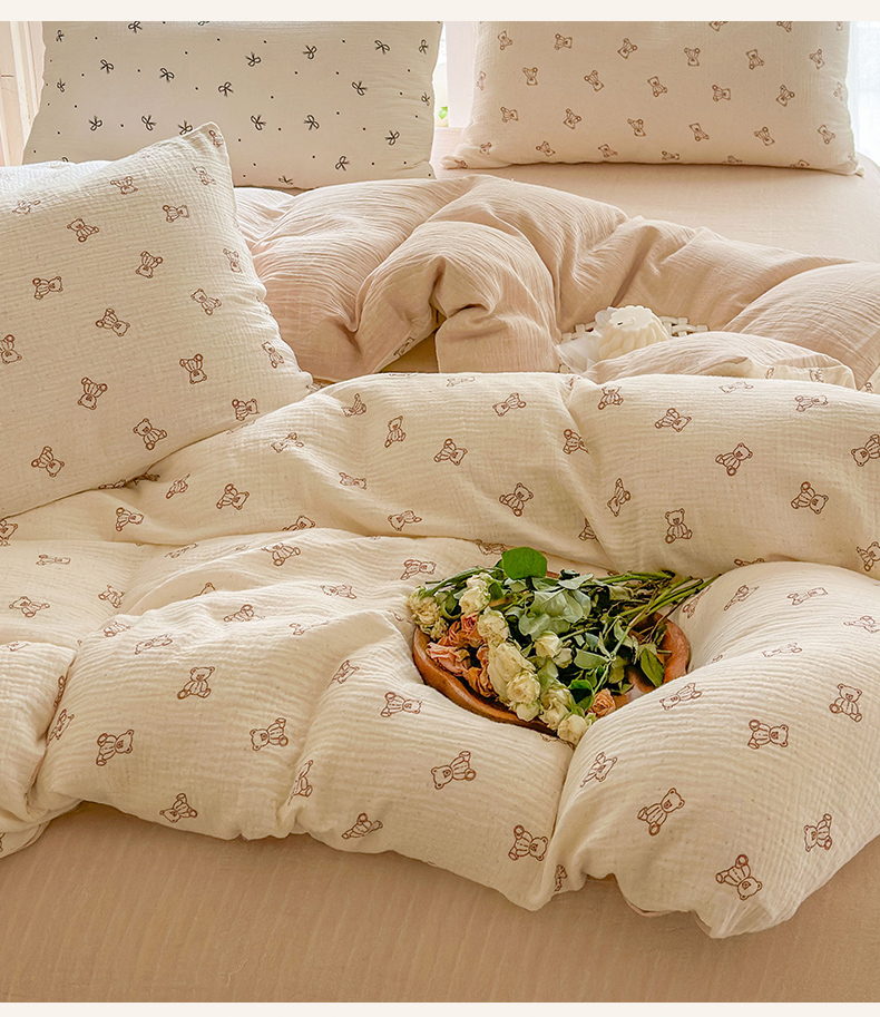 商品名称:木楌 2025新款全棉A类皱皱纱印花四件套 赫本熊