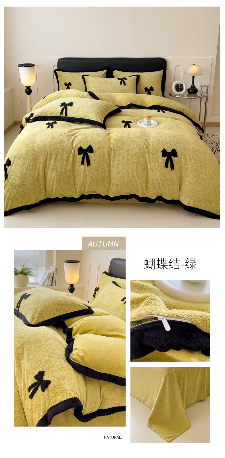 商品名称:丝羽坊 2024新款阳离子舒棉绒牛奶绒提花四件套 蝴蝶结-绿