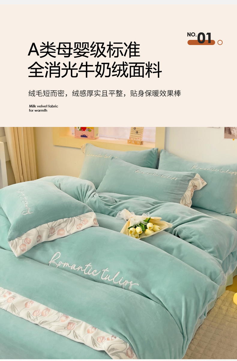 (总)星尚家纺 2024新款全消光A类230g牛奶绒刺绣保暖绒四件套-郁金香,淡雅粉,梵星绿,高级灰,蔷薇紫,婴儿蓝,樱花粉