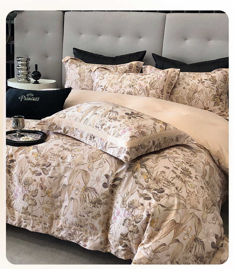 商品名称:薏思家纺 2025新款全棉生态磨毛数码印花高奢撞色四件套-繁花系列Blossoms 克洛伊粉