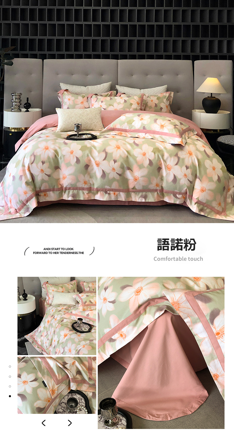 薏思家纺 2025新款全棉生态磨毛数码印花高奢撞色四件套-繁花系列Blossoms 克洛伊粉