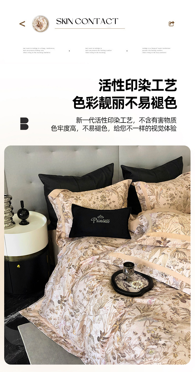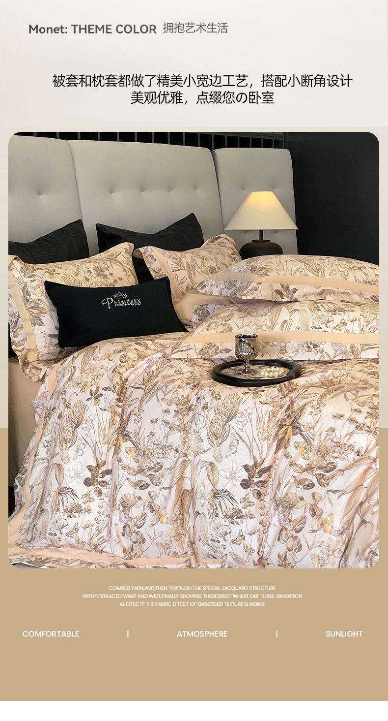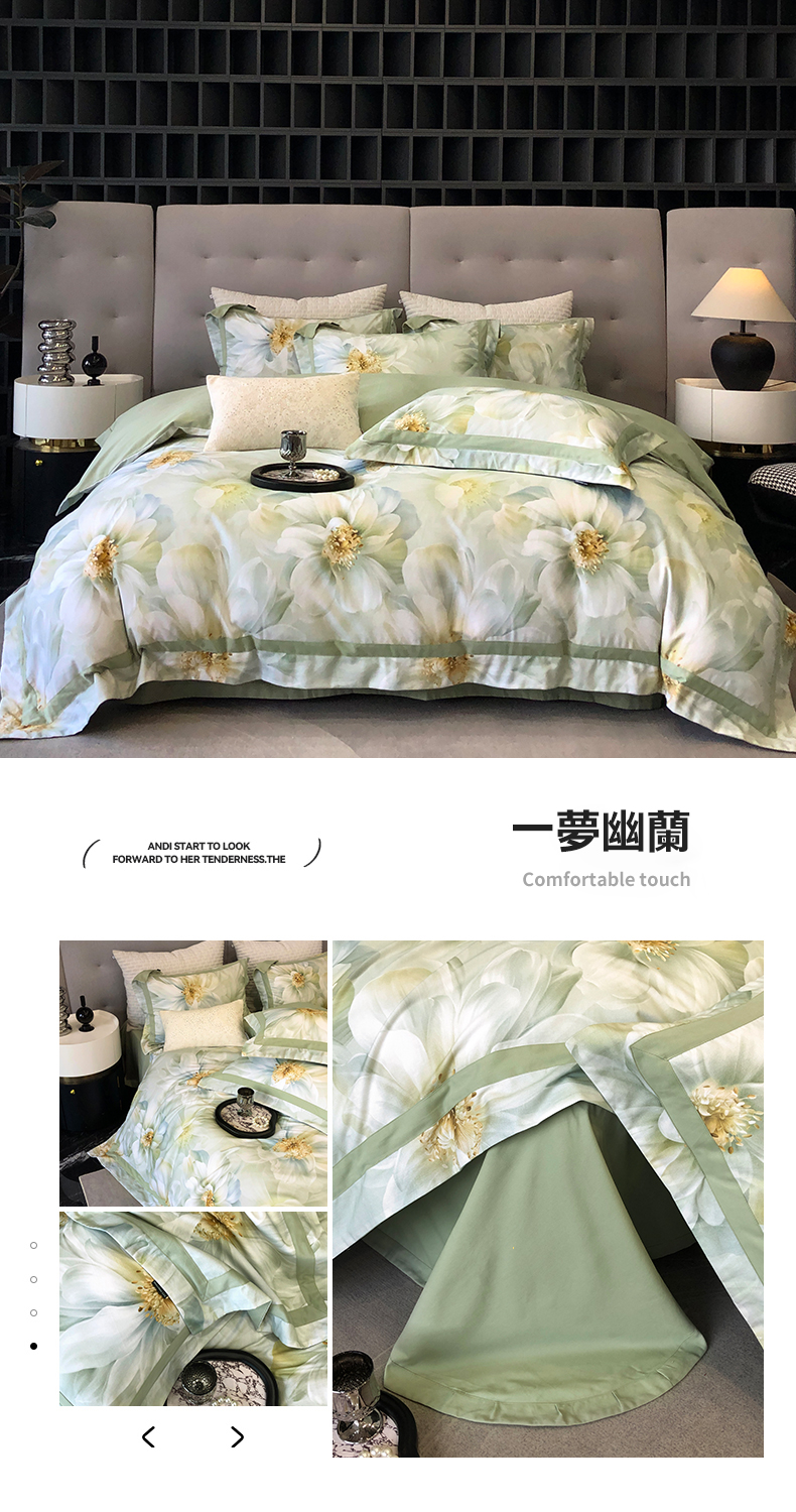 (总)薏思家纺 2025新款全棉100支数码印花生态磨毛轻奢款四件套-花边系列,橘子海,向云端,寻野-绿