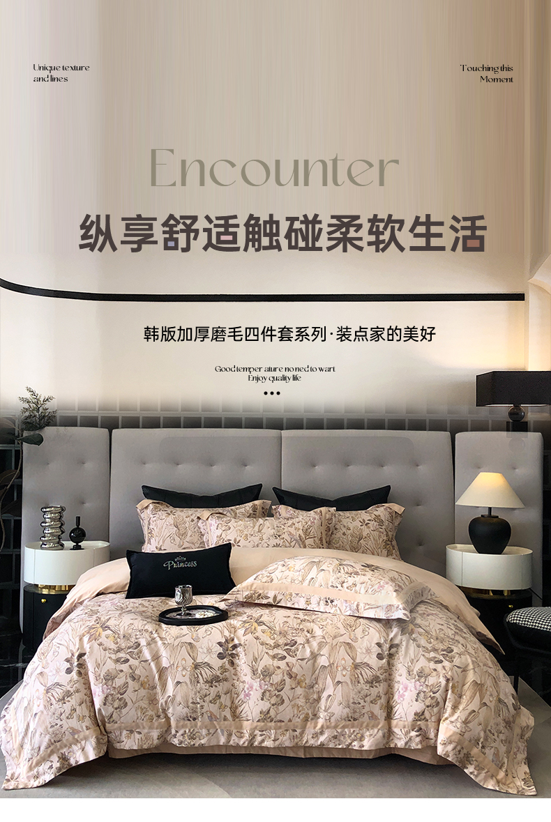 (总)薏思家纺 2025新款全棉纯棉数码印花双宽边磨毛四件套-繁花,春光郁金粉,花茉里-米白,克洛伊粉,克洛伊灰,暮光幽紫,蔷薇之恋,恬觅,温婉粉,舞 绿,心柔-绿,叶伴花香