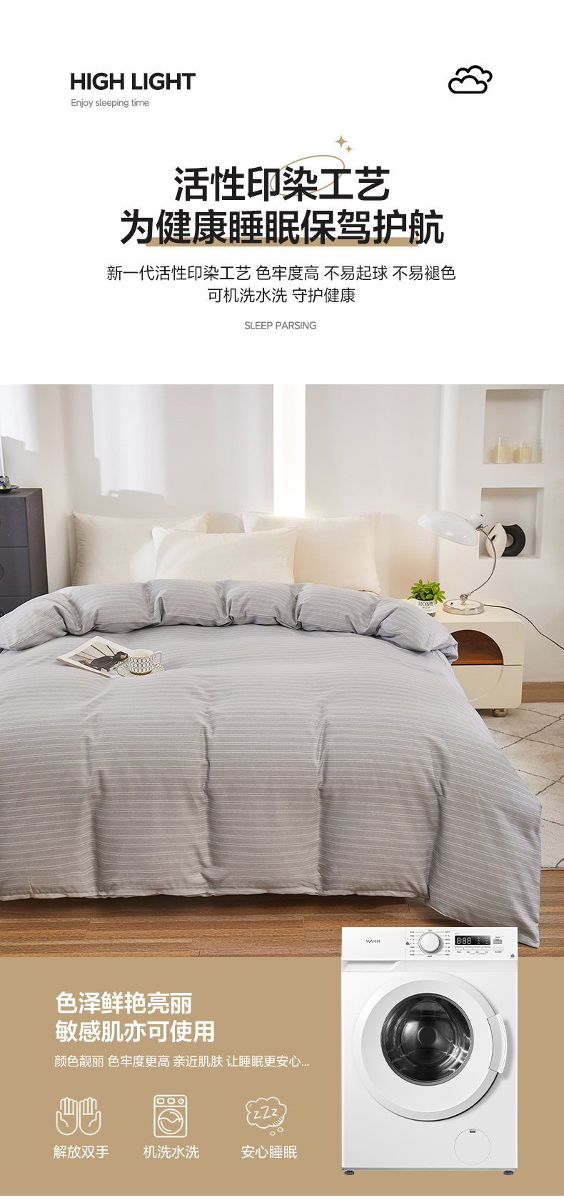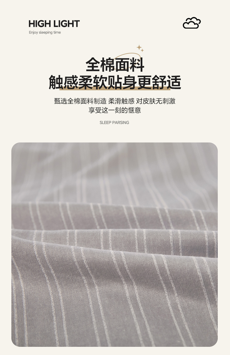 商品名称:雲归梦 2024新款全棉多规格加厚磨毛多规格单品--单被套 单被套-条芬芳-灰