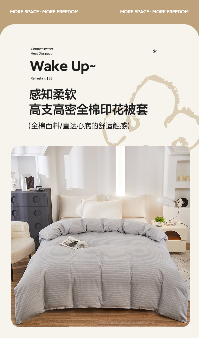 雲归梦 2024新款全棉多规格加厚磨毛多规格单品--单被套 单被套-条芬芳-灰