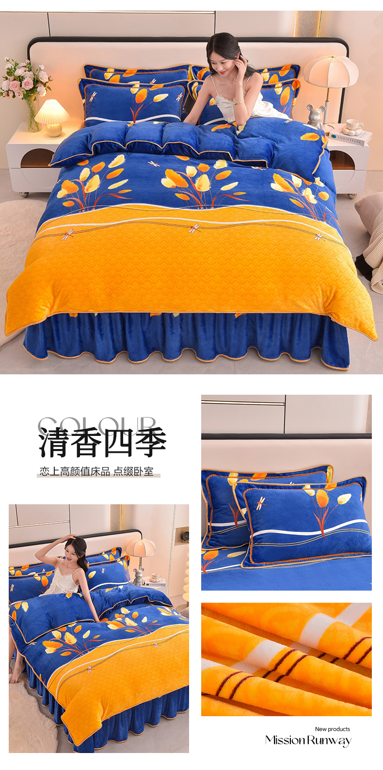 富之航 2024新款8-9斤高克重印花牛奶绒四件套保暖绒套件直播爆款清香四季