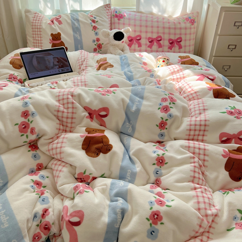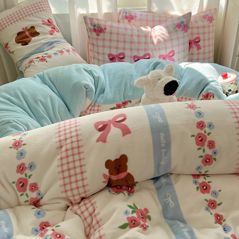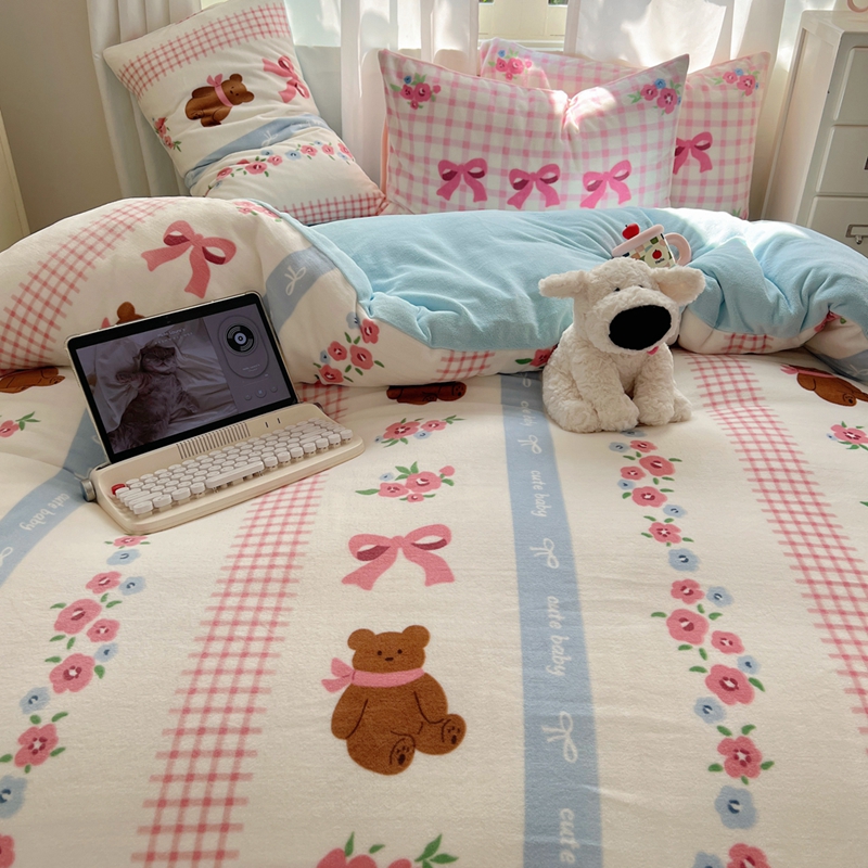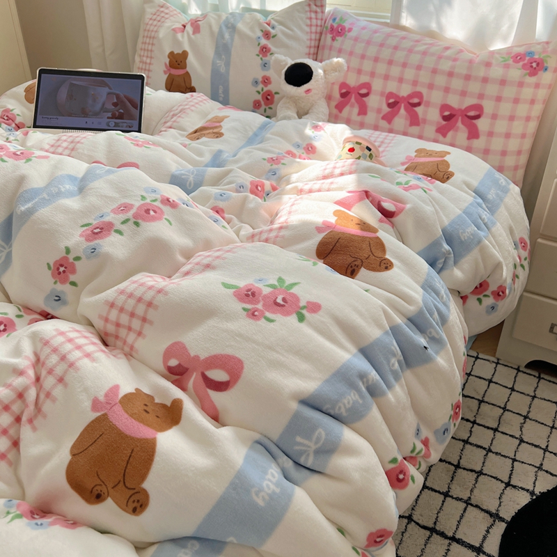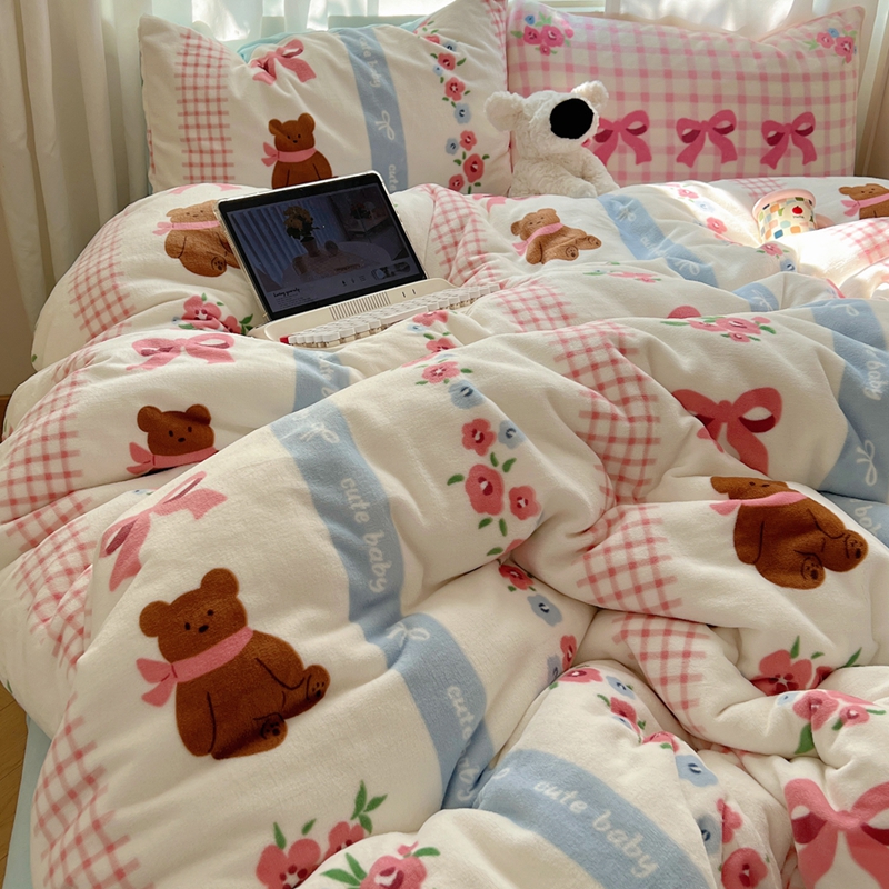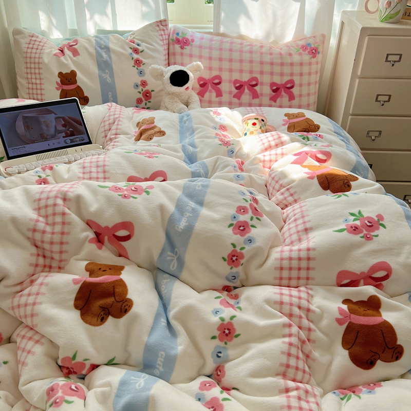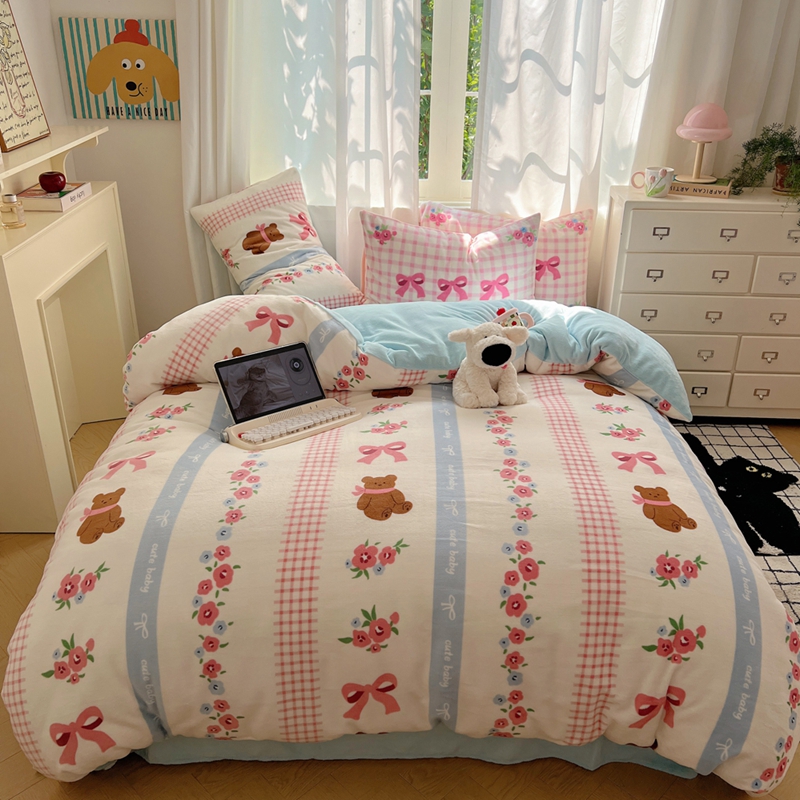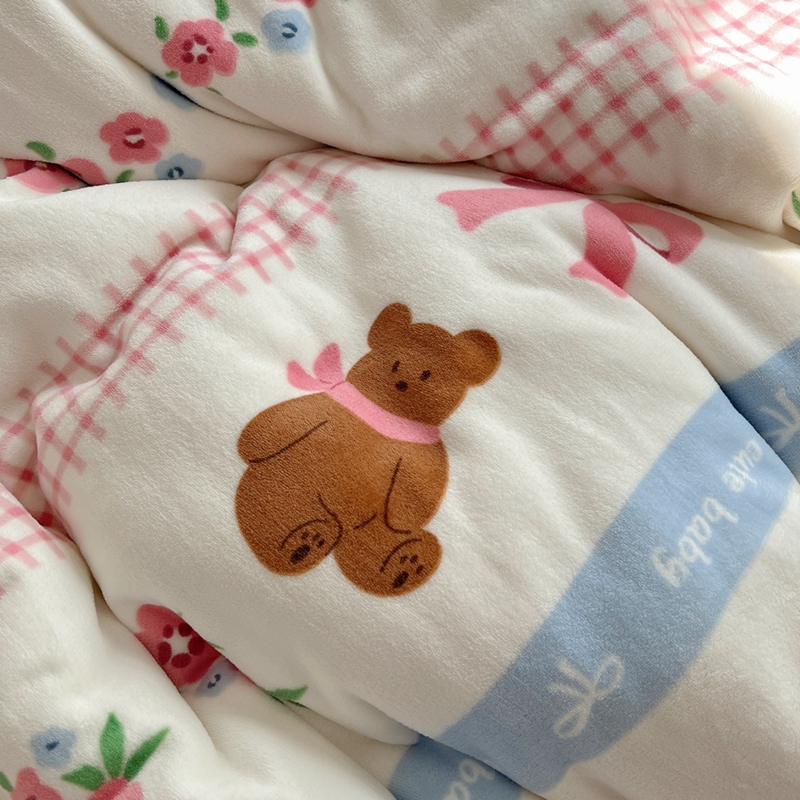 商品名称:桃喜 2024秋冬新品卡通混搭牛奶绒系列四件套 花园小熊