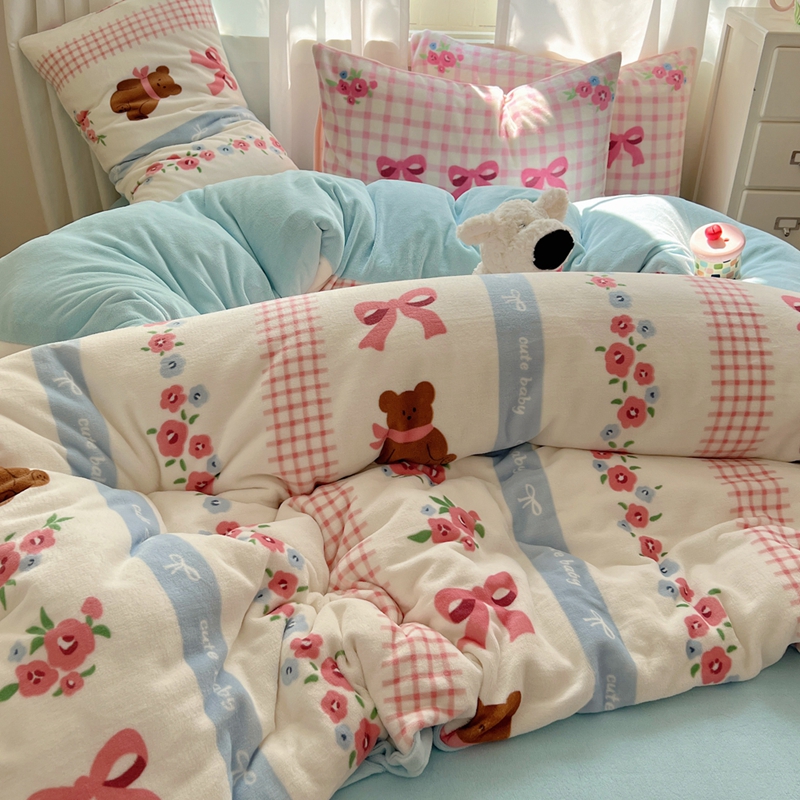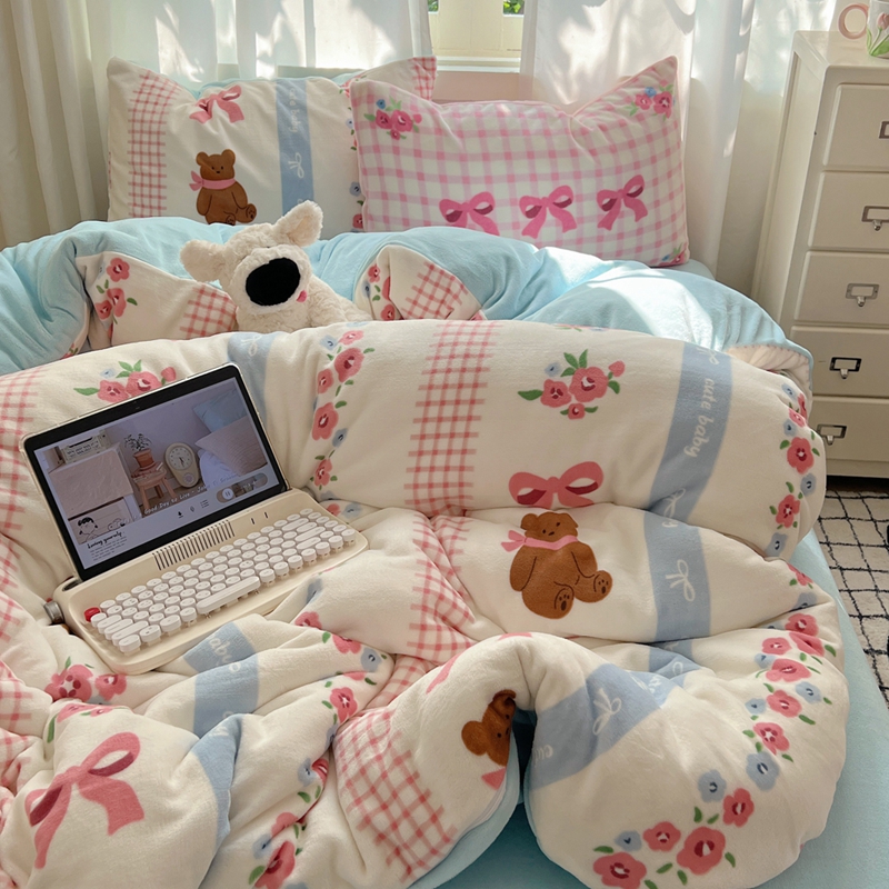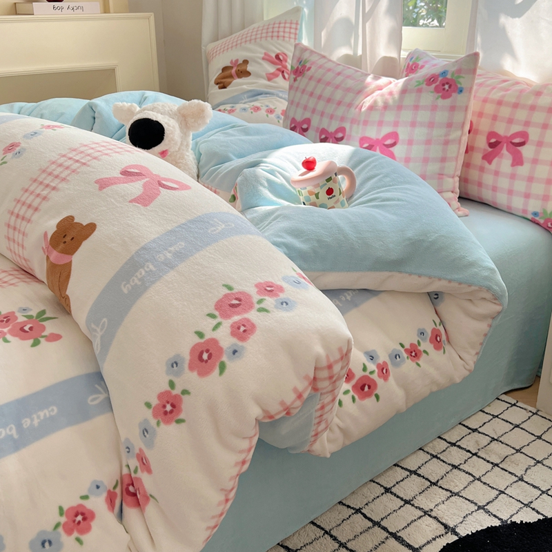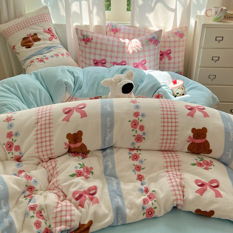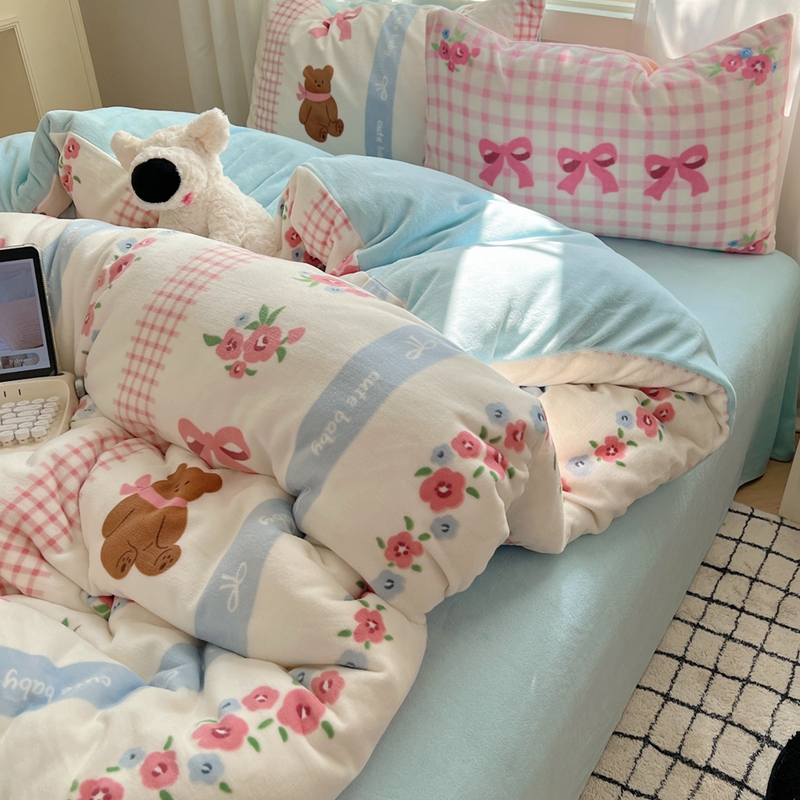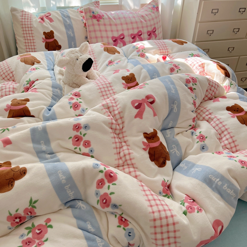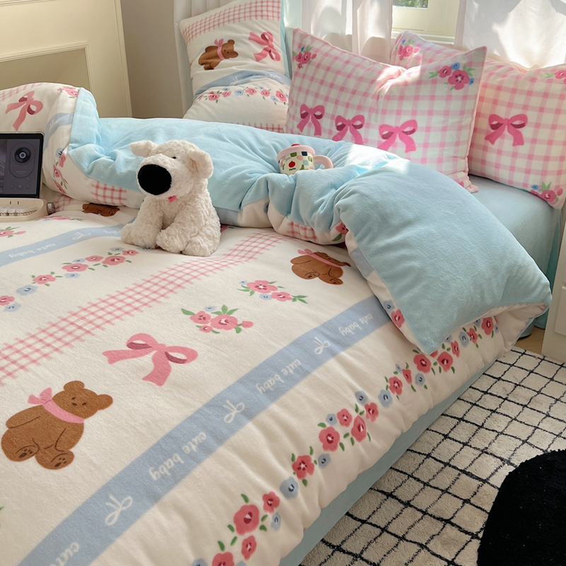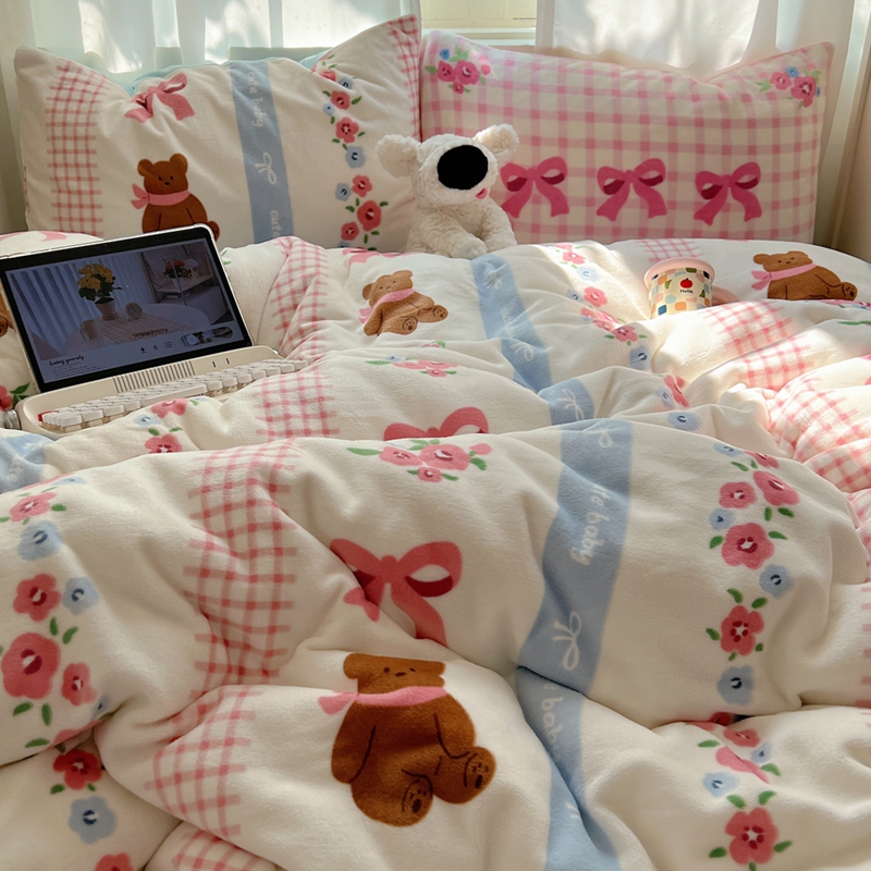 商品名称:桃喜 2024秋冬新品卡通混搭牛奶绒系列四件套 花园小熊