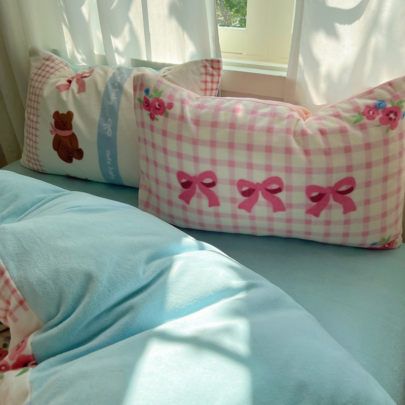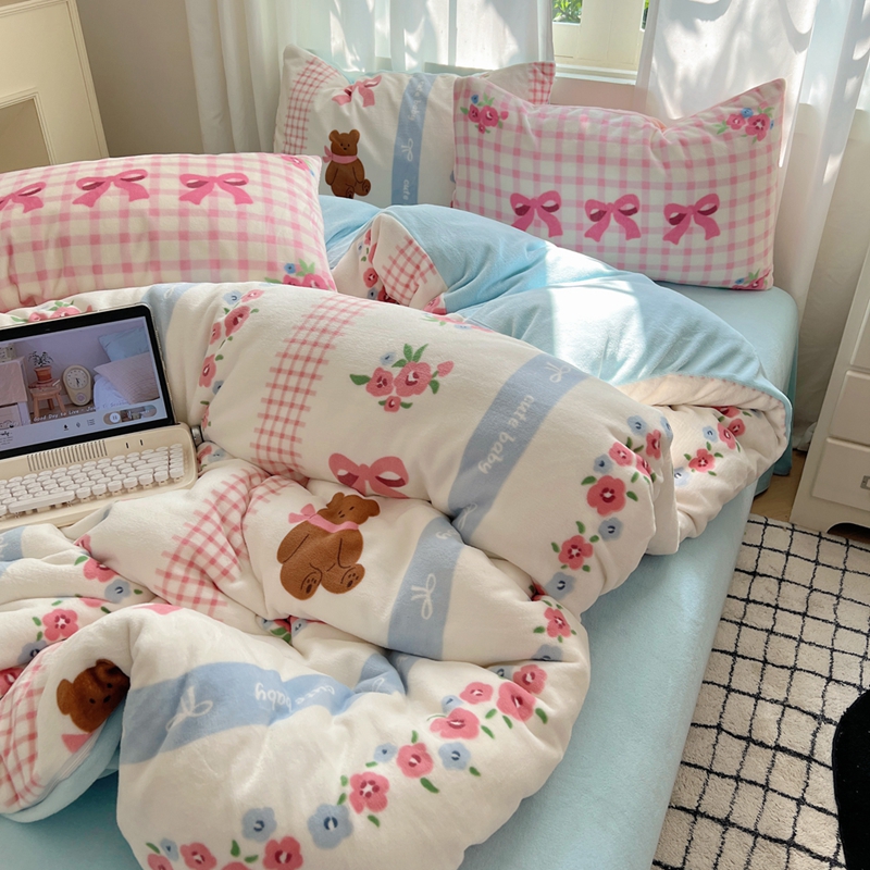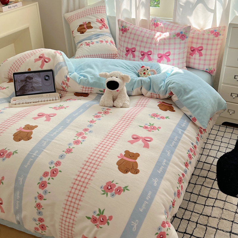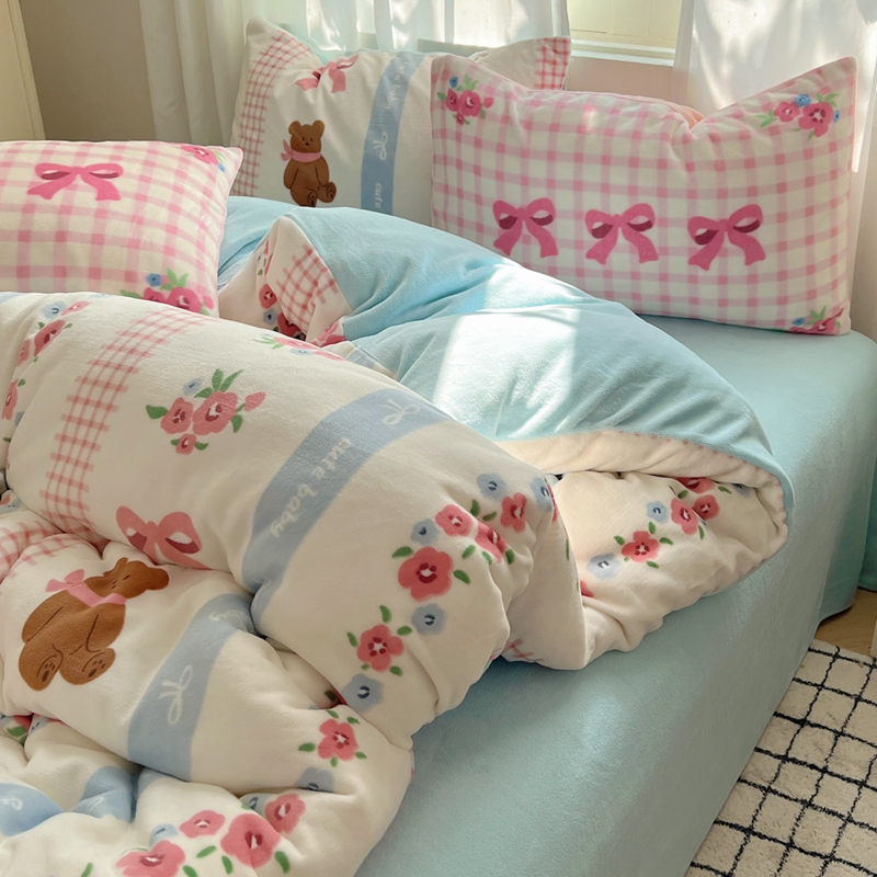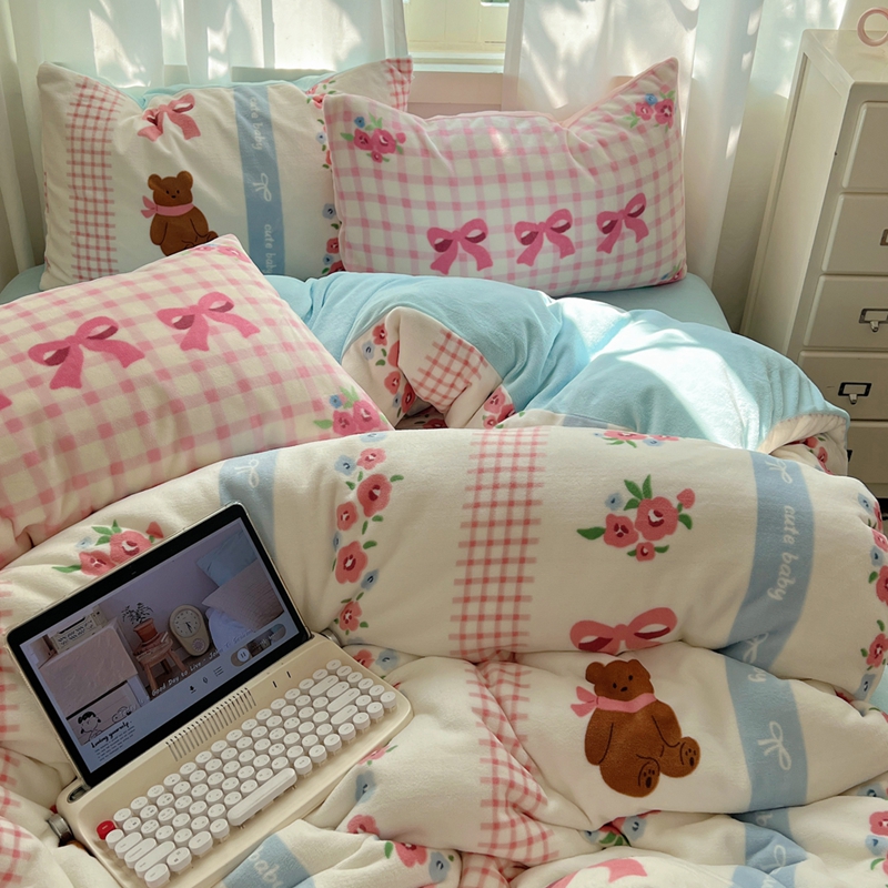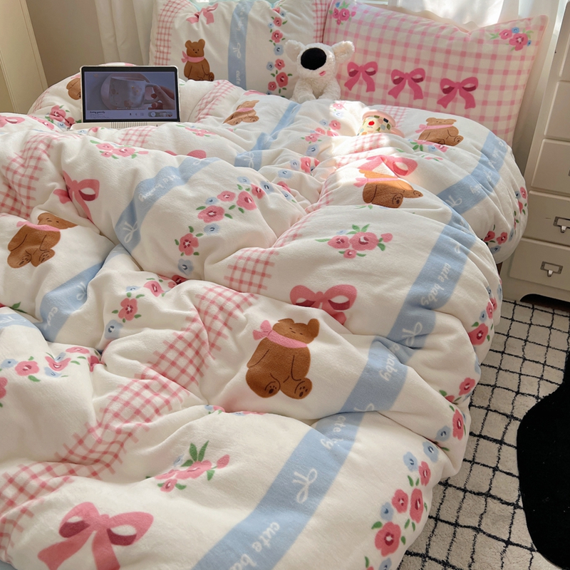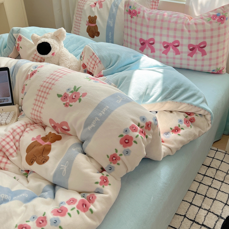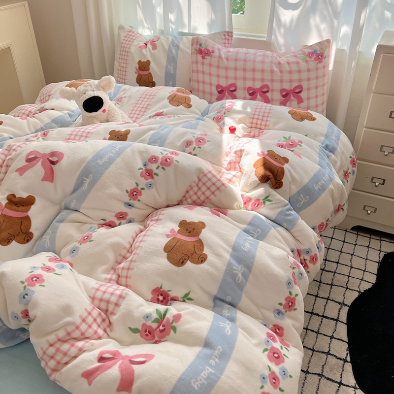 商品名称:桃喜 2024秋冬新品卡通混搭牛奶绒系列四件套 花园小熊