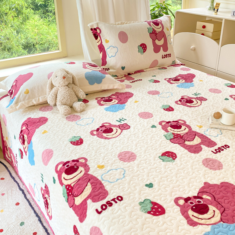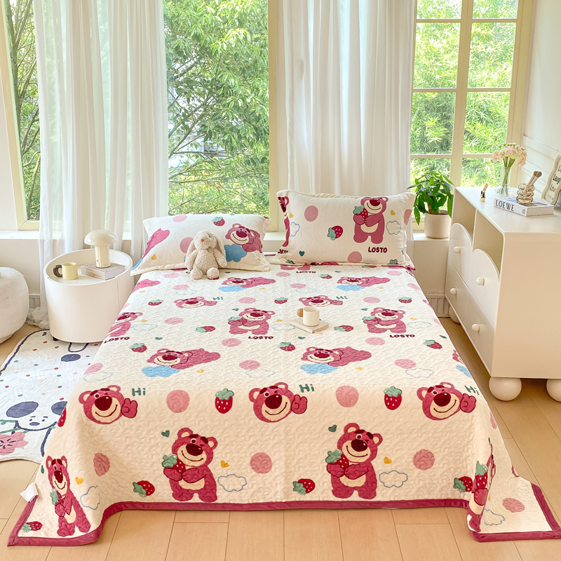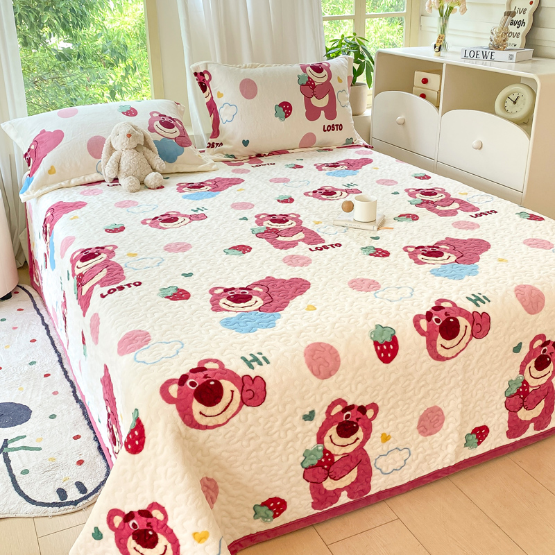 赫梵茜 2024新款高克重牛奶绒夹棉单床盖 甜心熊