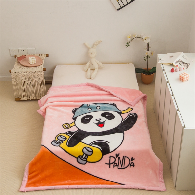 2025婴儿级A类儿童云毯幼儿园卡通毛毯超细柔婴童小毯子休闲沙发午睡办公室用毯(外贸跨境电商毯子) 滑板熊 粉