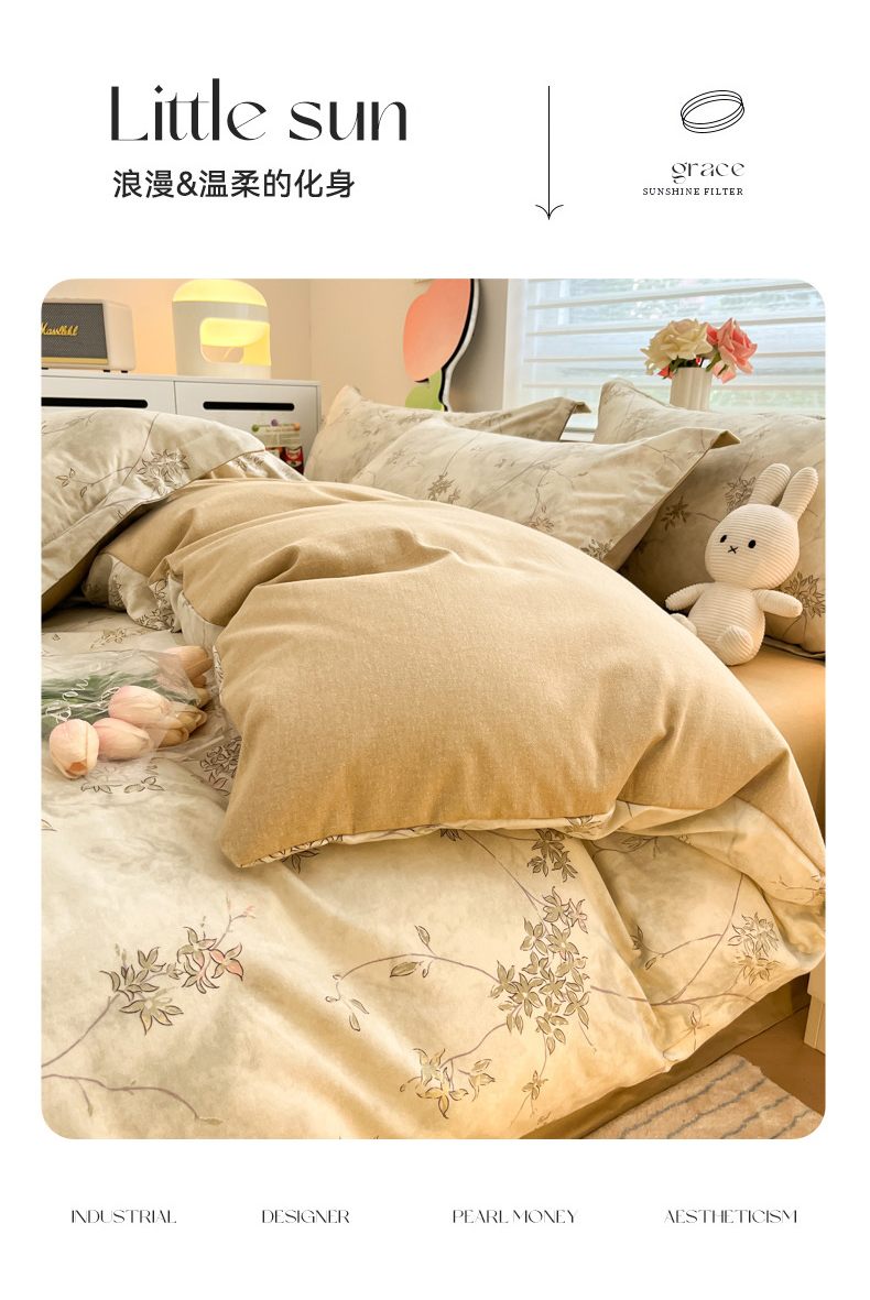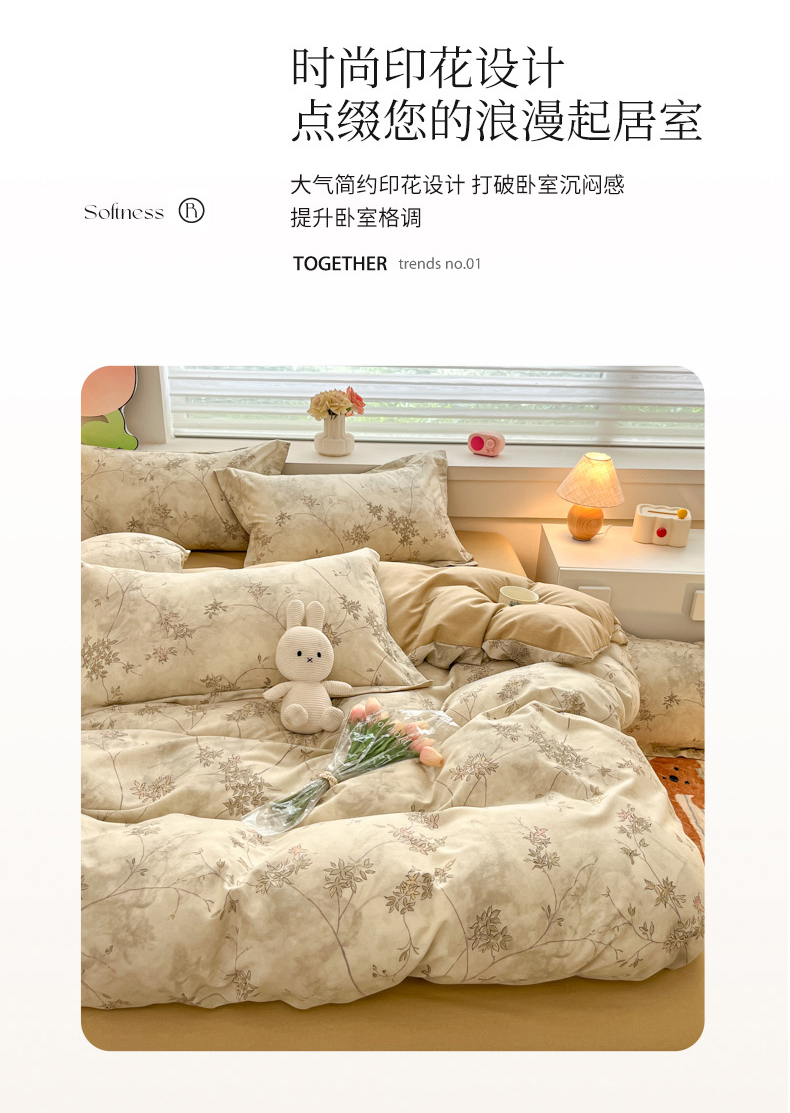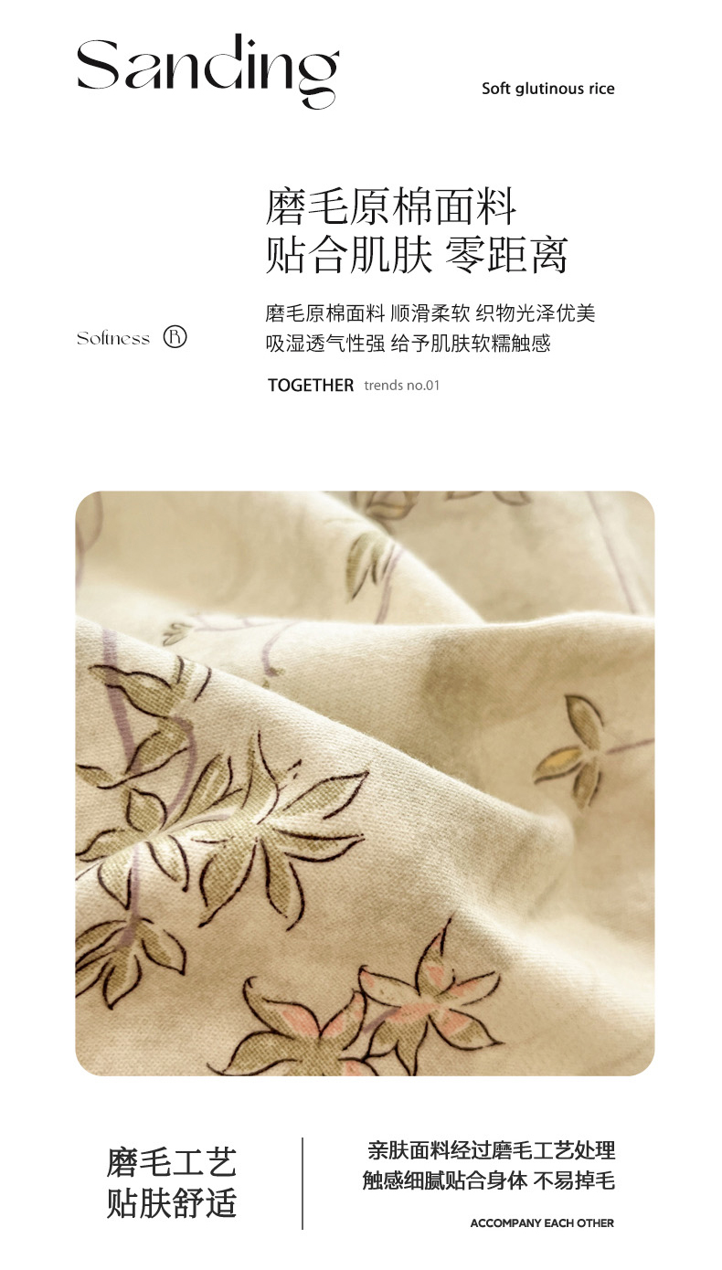 当前位置: 91家纺网 > 商品网购 > 床品套件 > 四件套 > 普通磨毛四件套 > 慕尚家纺 2025新款原棉磨毛四件套单被套系列-四件套 似水生花