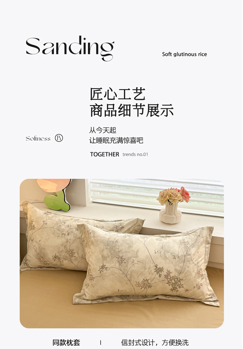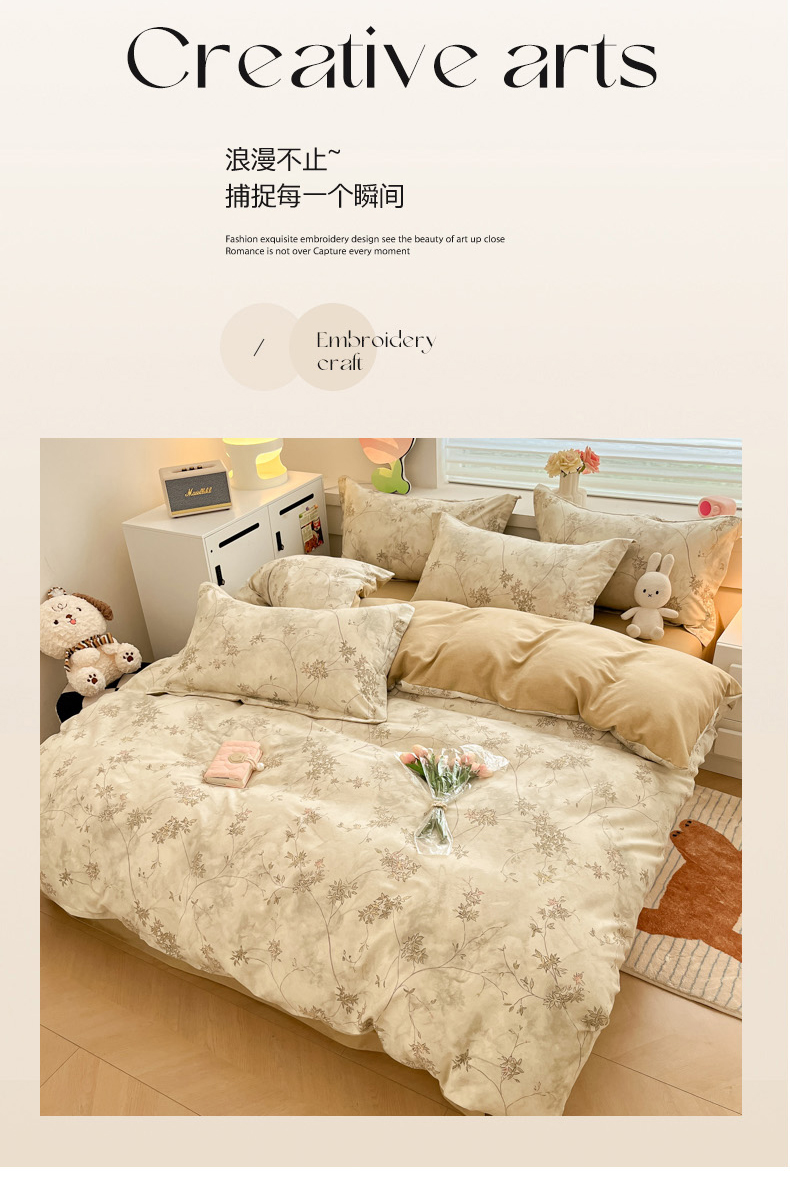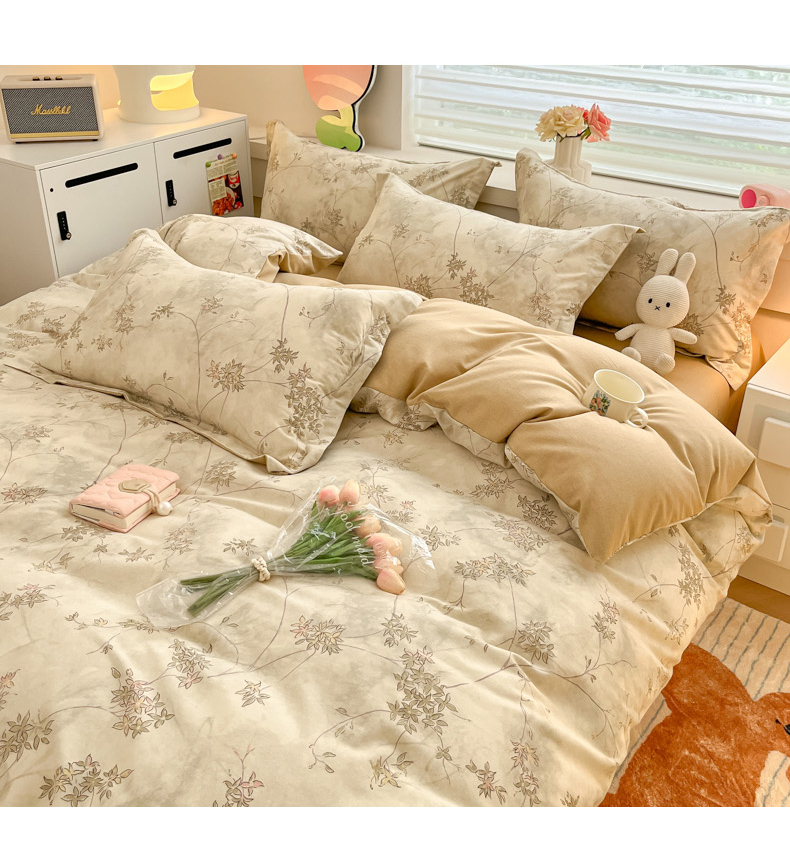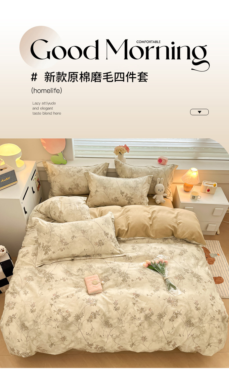 当前位置: 91家纺网 > 商品网购 > 床品套件 > 四件套 > 普通磨毛四件套 > 慕尚家纺 2025新款原棉磨毛四件套单被套系列-四件套 似水生花