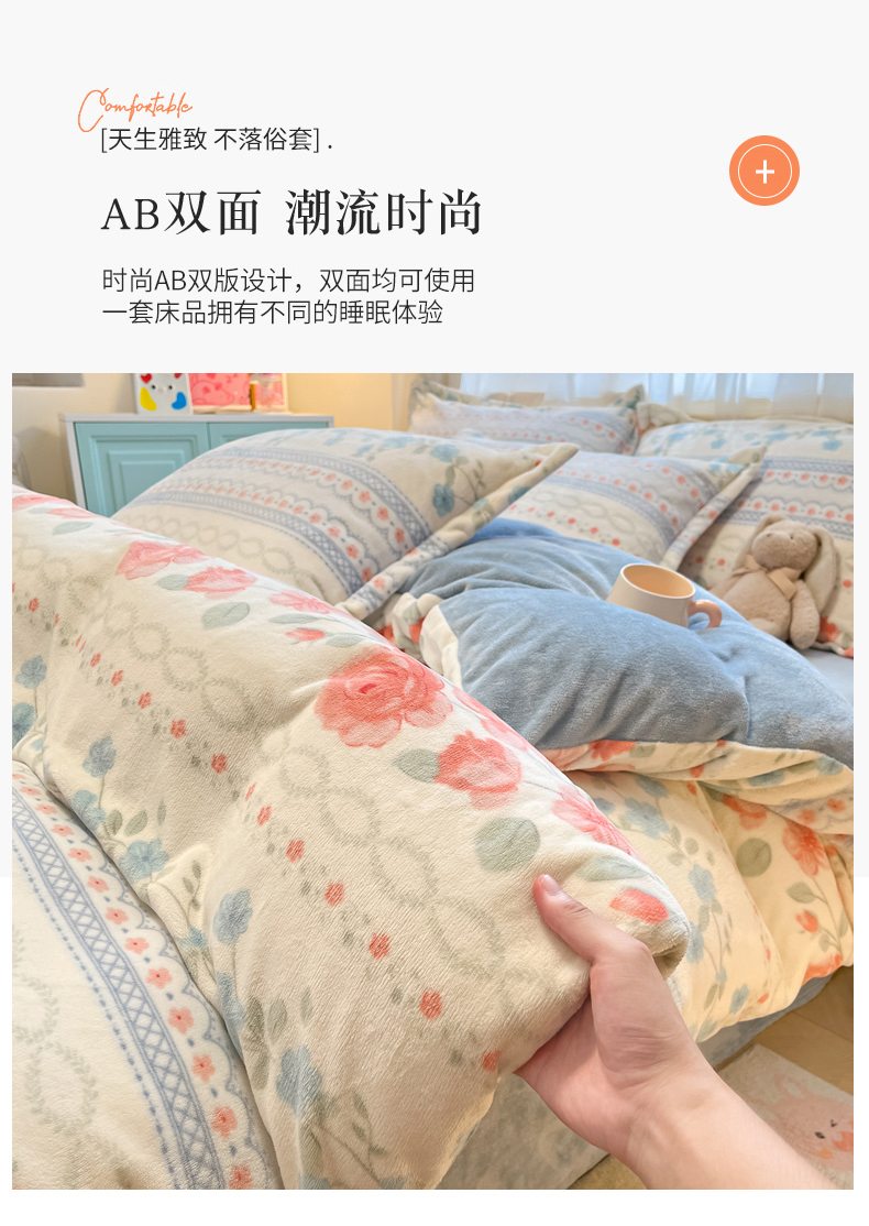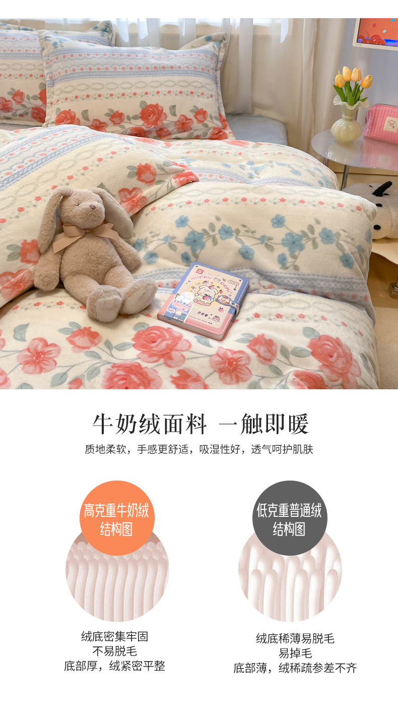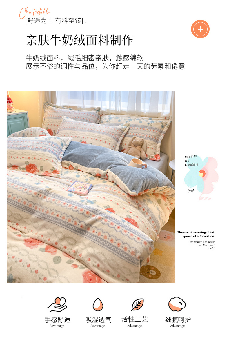 商品名称:2025新款田园花卉类印花牛奶绒被套单件 花美