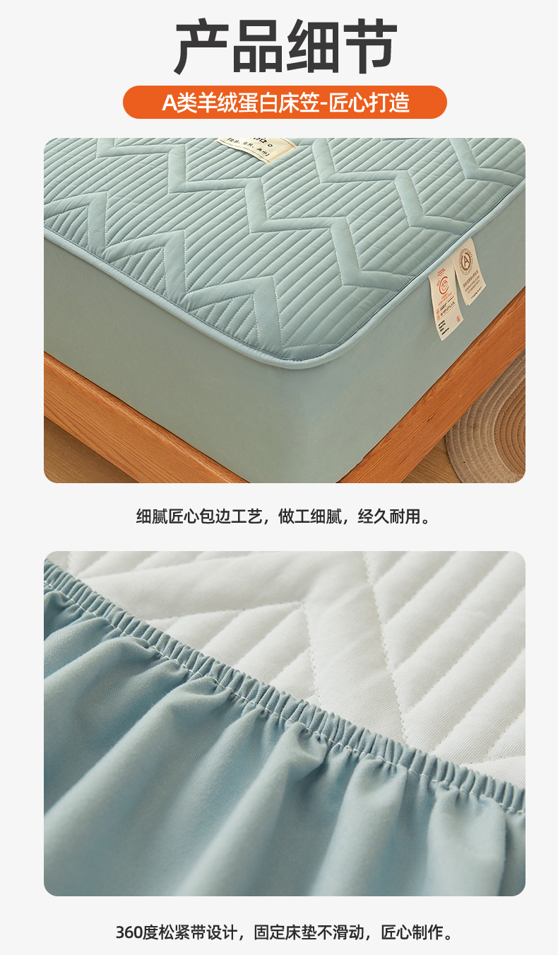 • 91家纺网 家纺一手货源 找家纺 优眠坊 2025新款羊绒蛋白床笠 远山-雾霾蓝