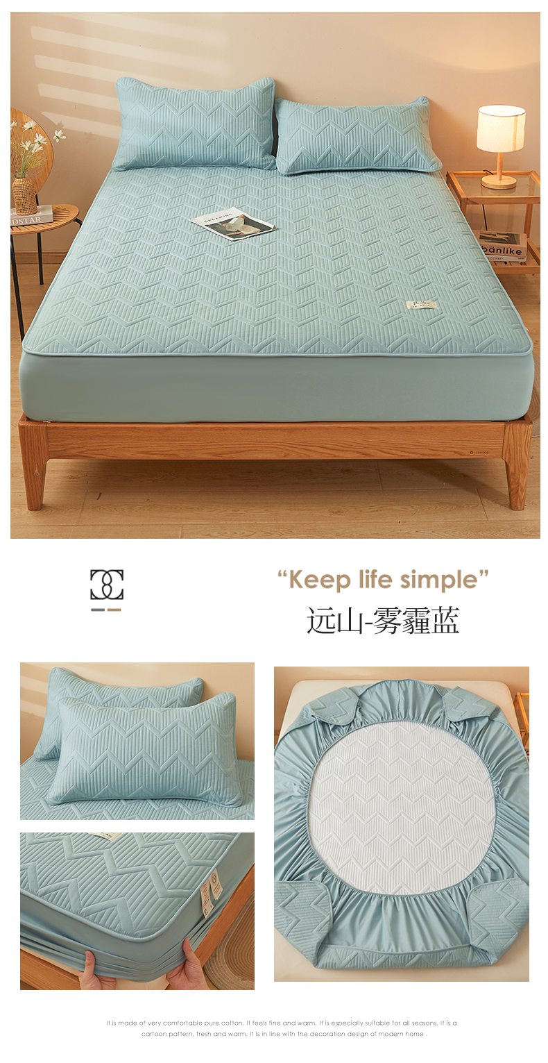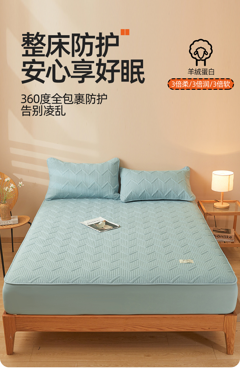 优眠坊 2025新款羊绒蛋白床笠 远山-雾霾蓝
