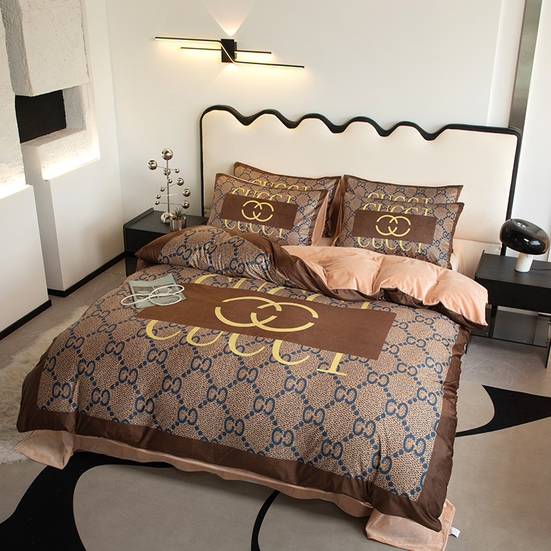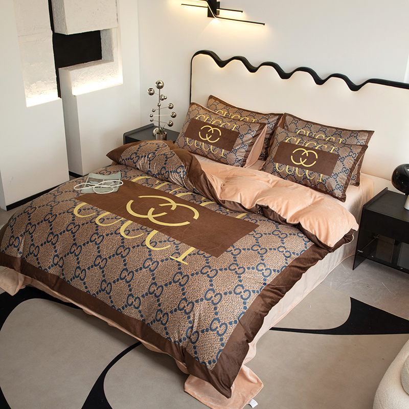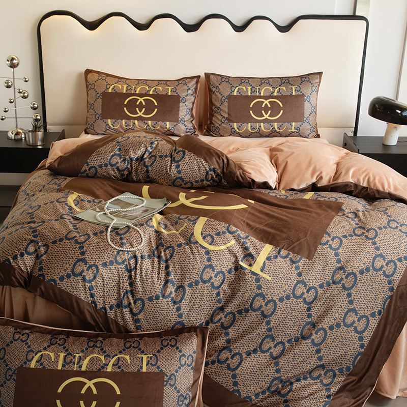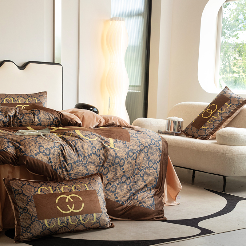 色鬼布艺 2024新款婴儿绒数码印花牛奶绒四件套仿大牌直播爆款网红款 经典咖