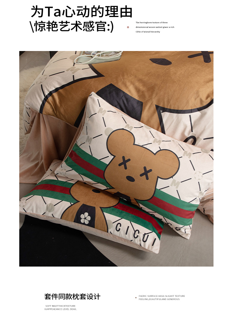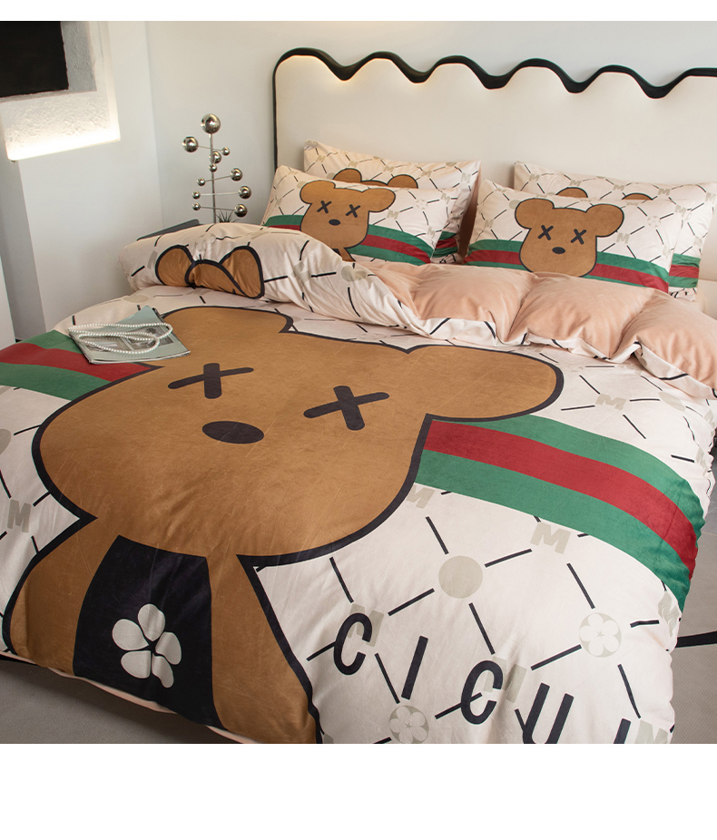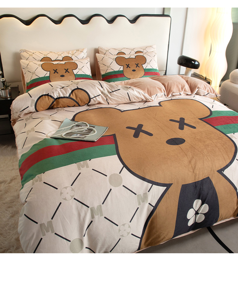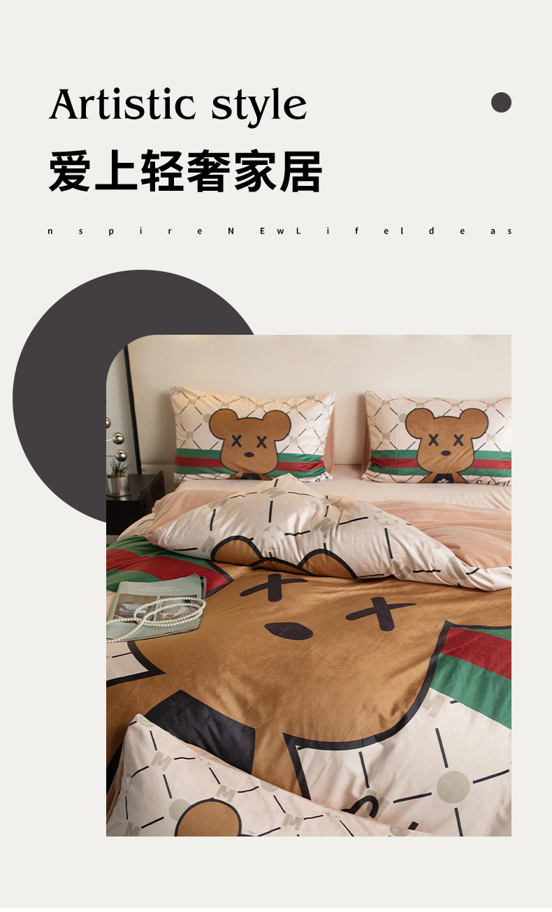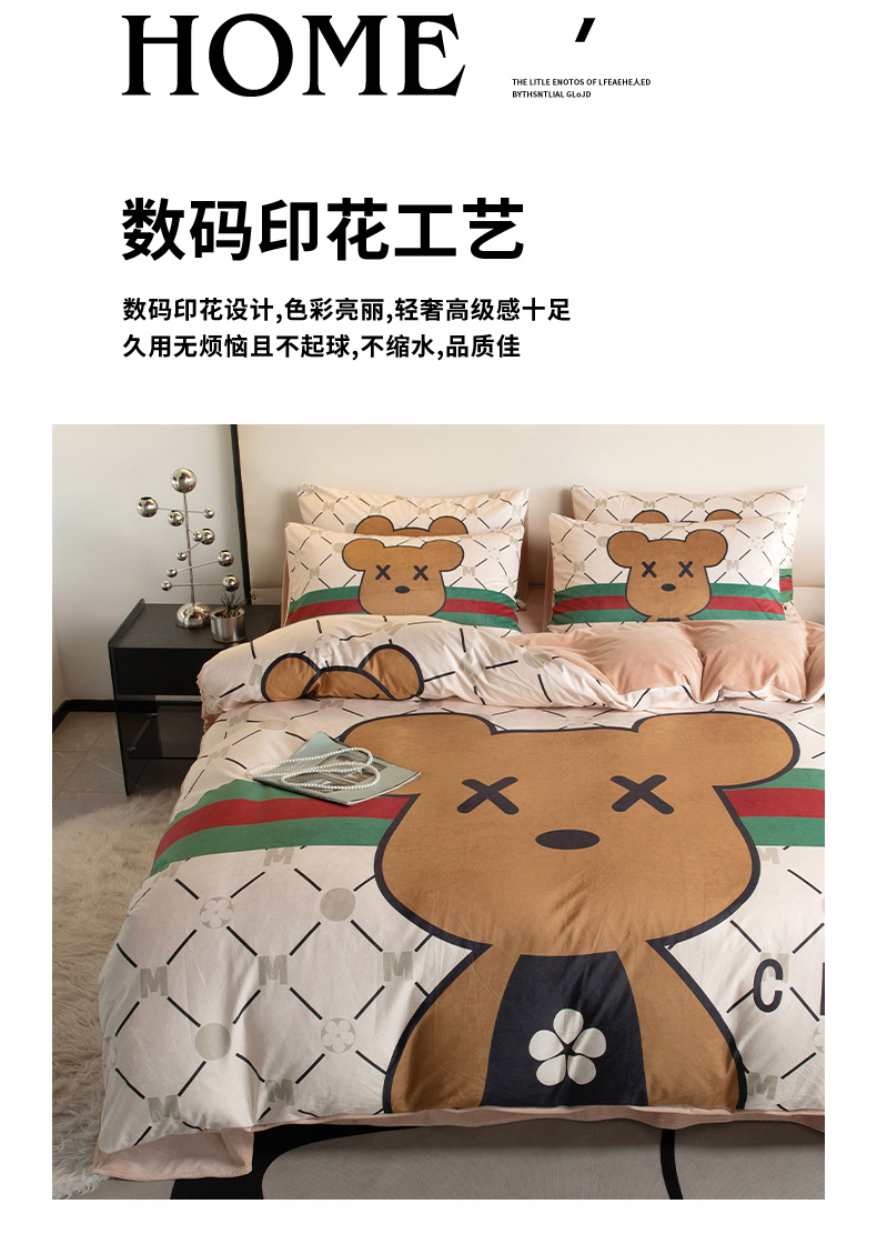 商品名称:色鬼布艺 2024新款婴儿绒数码印花牛奶绒四件套仿大牌直播爆款网红款 奇奇熊