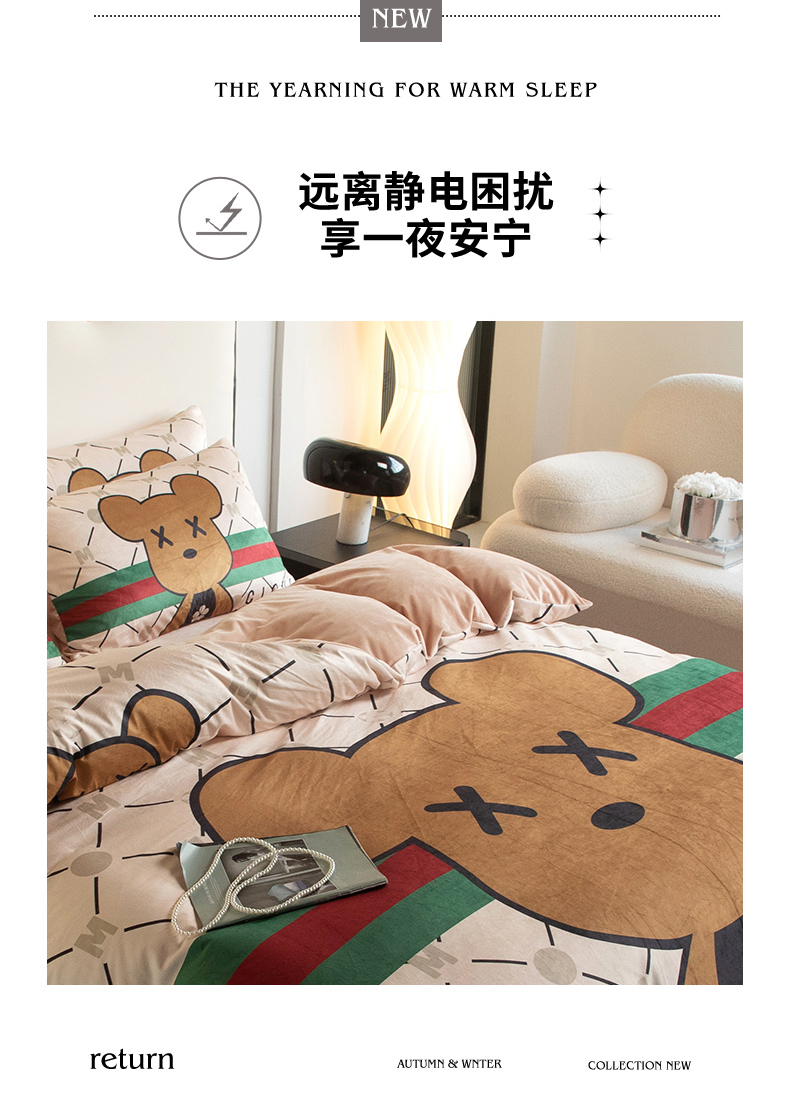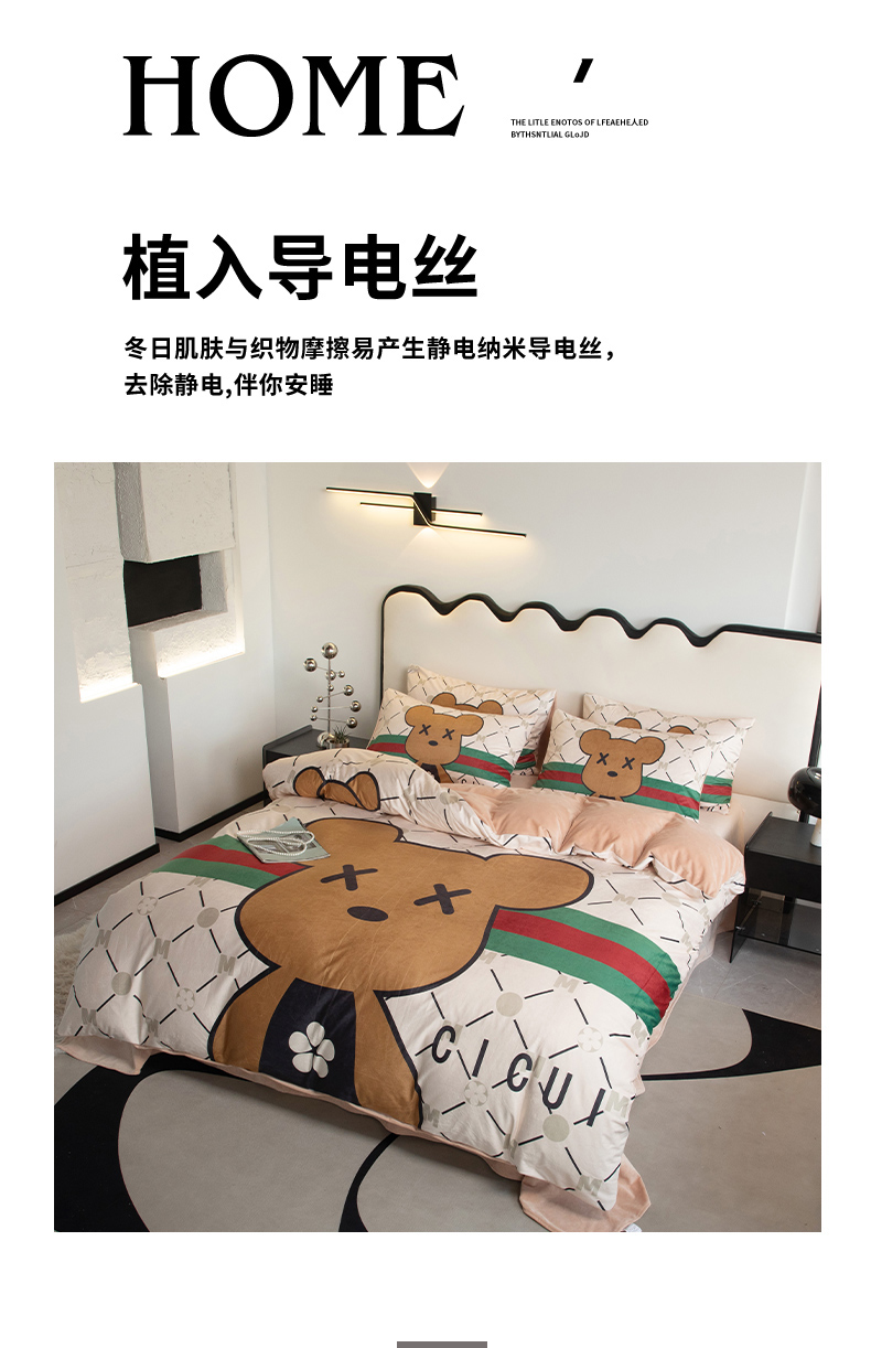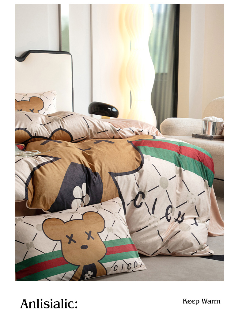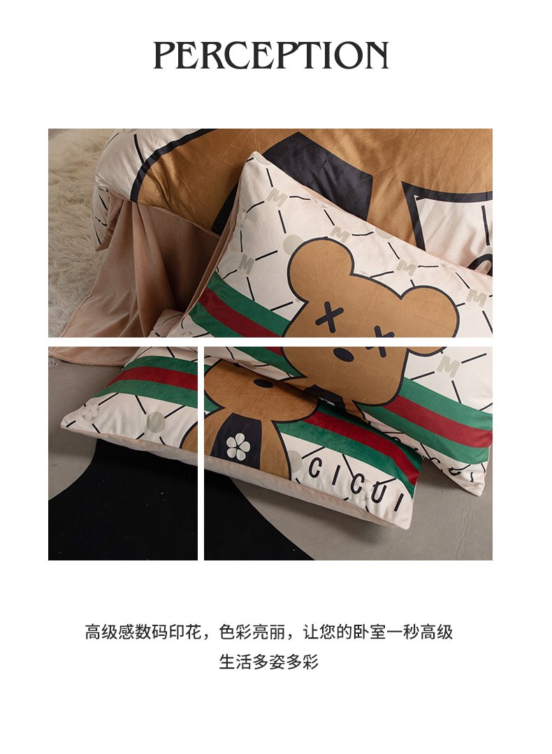 商品名称:色鬼布艺 2024新款婴儿绒数码印花牛奶绒四件套仿大牌直播爆款网红款 奇奇熊