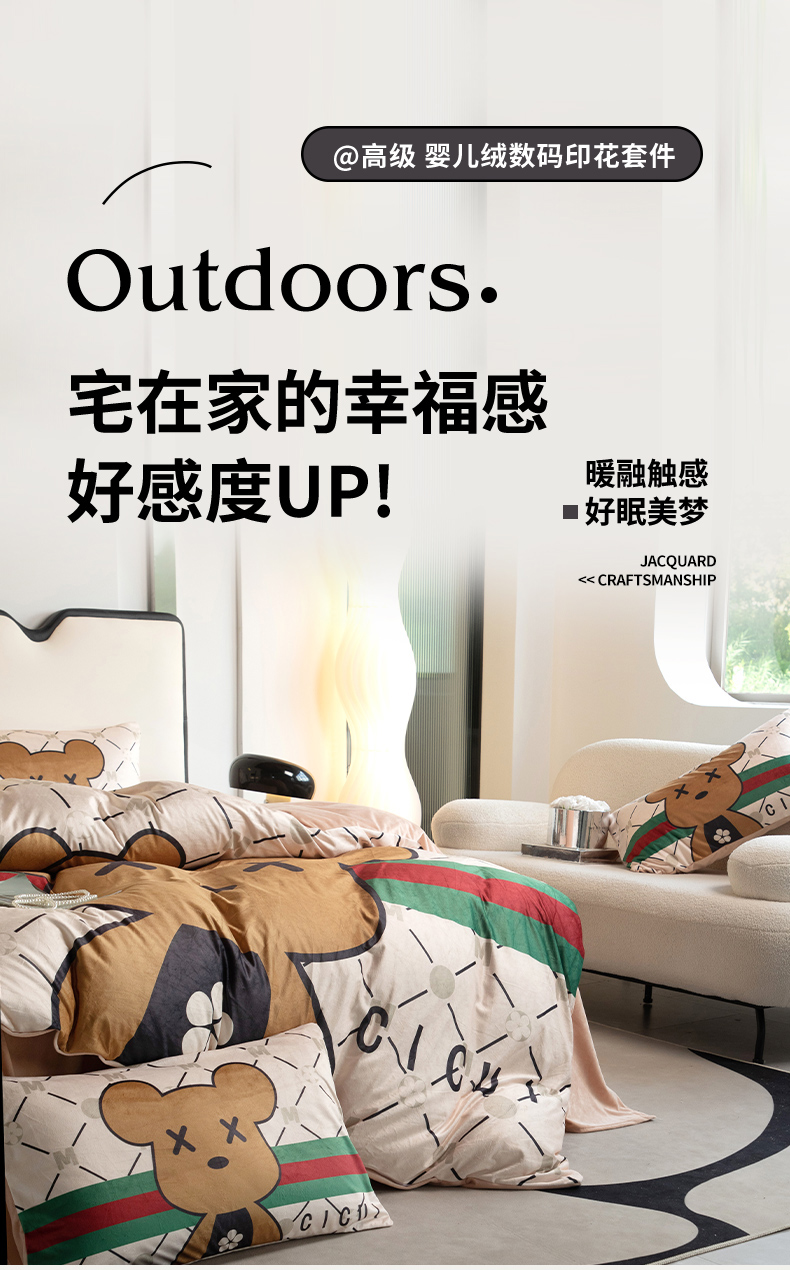 色鬼布艺 2024新款婴儿绒数码印花牛奶绒四件套仿大牌直播爆款网红款 奇奇熊