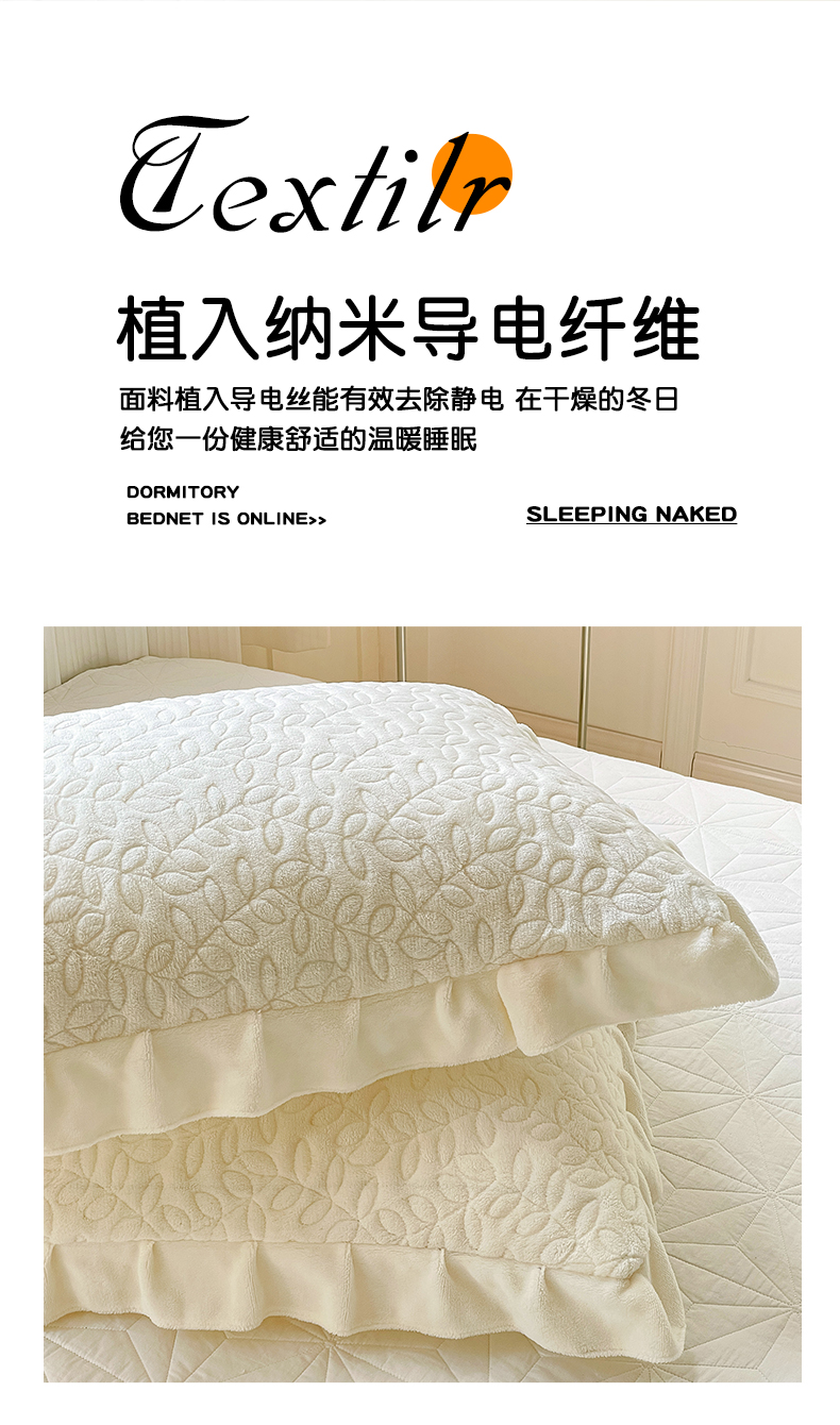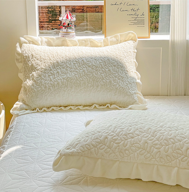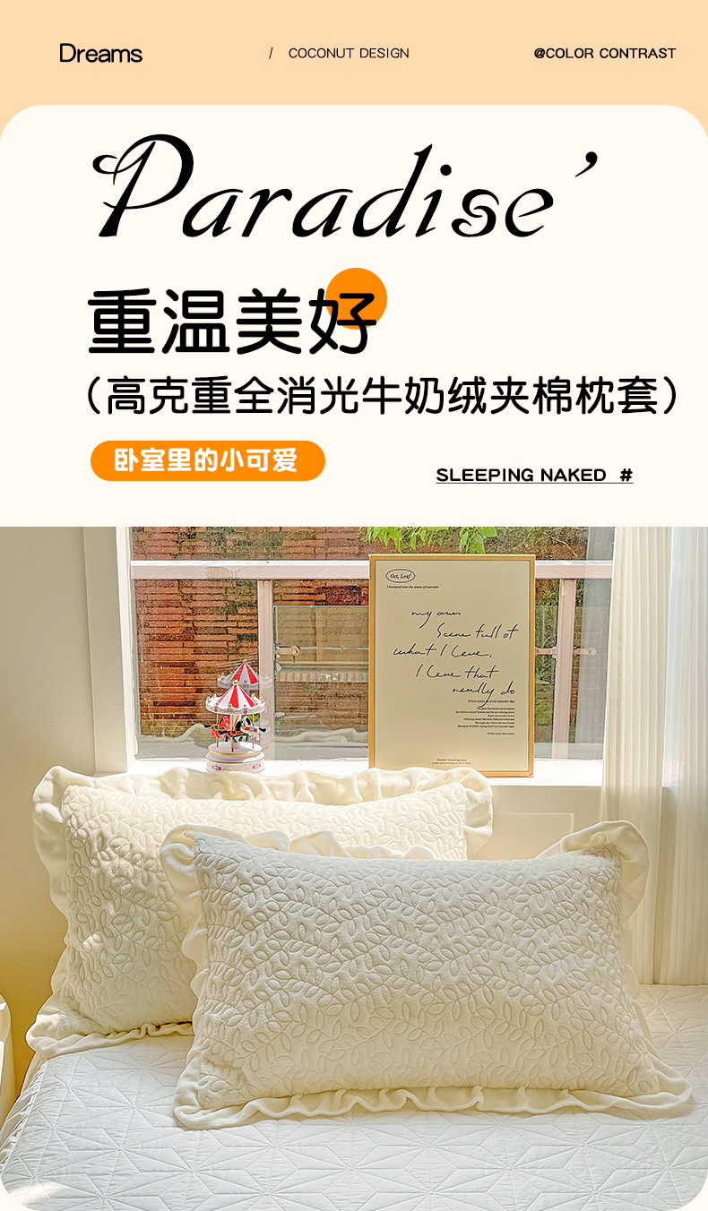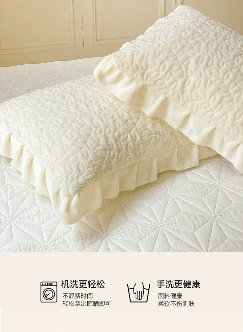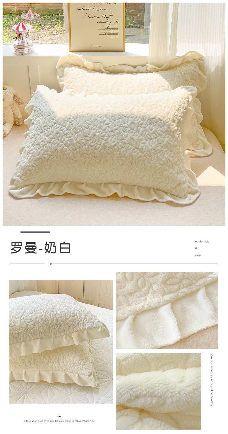 商品名称:漫时光 2025新款纯色牛奶绒花边款枕套 罗曼-奶白