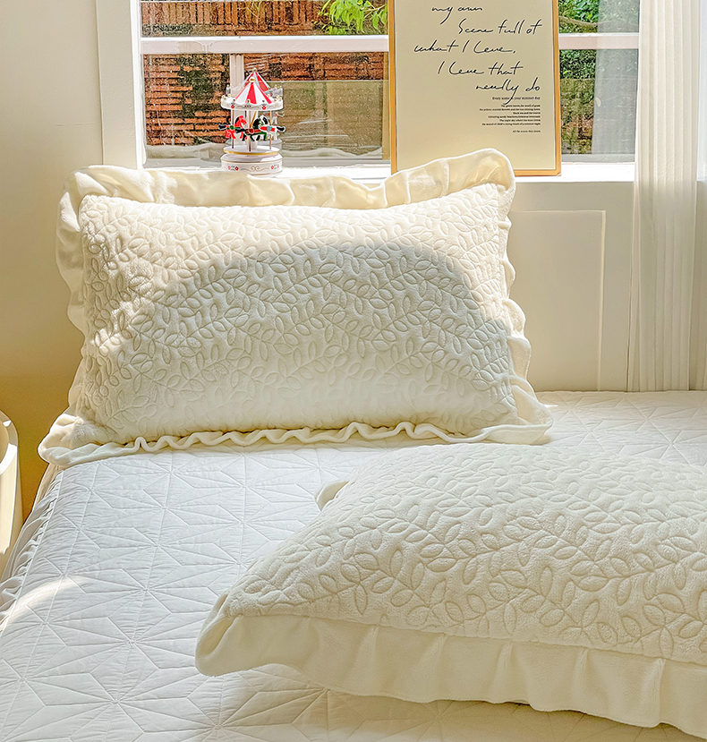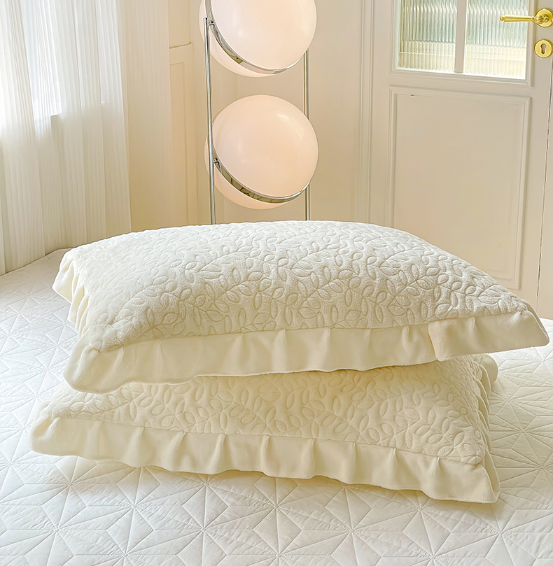 漫时光 2025新款纯色牛奶绒花边款枕套 罗曼-奶白