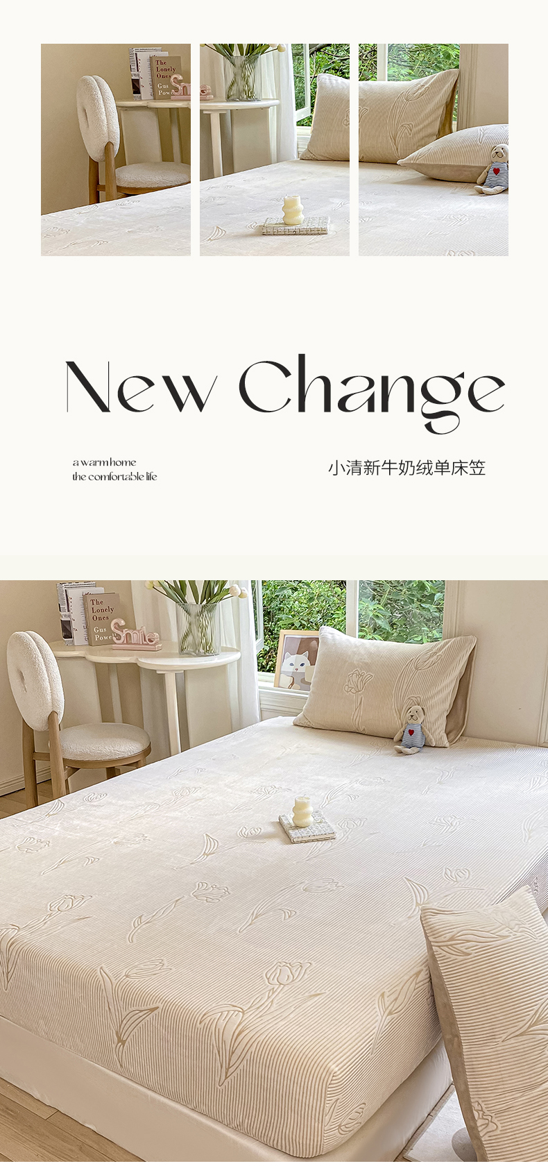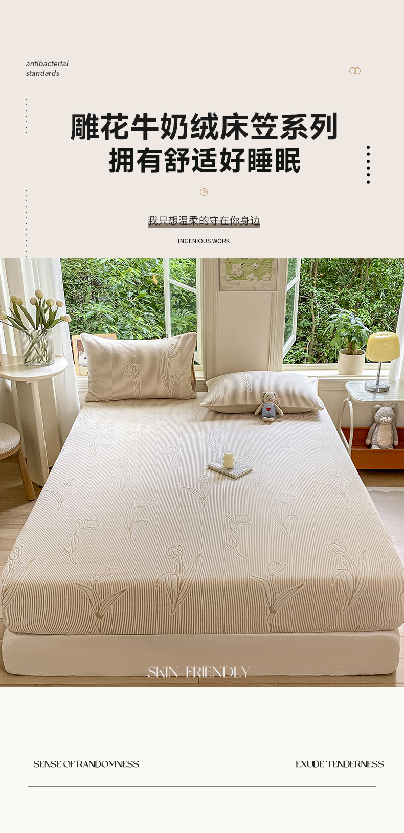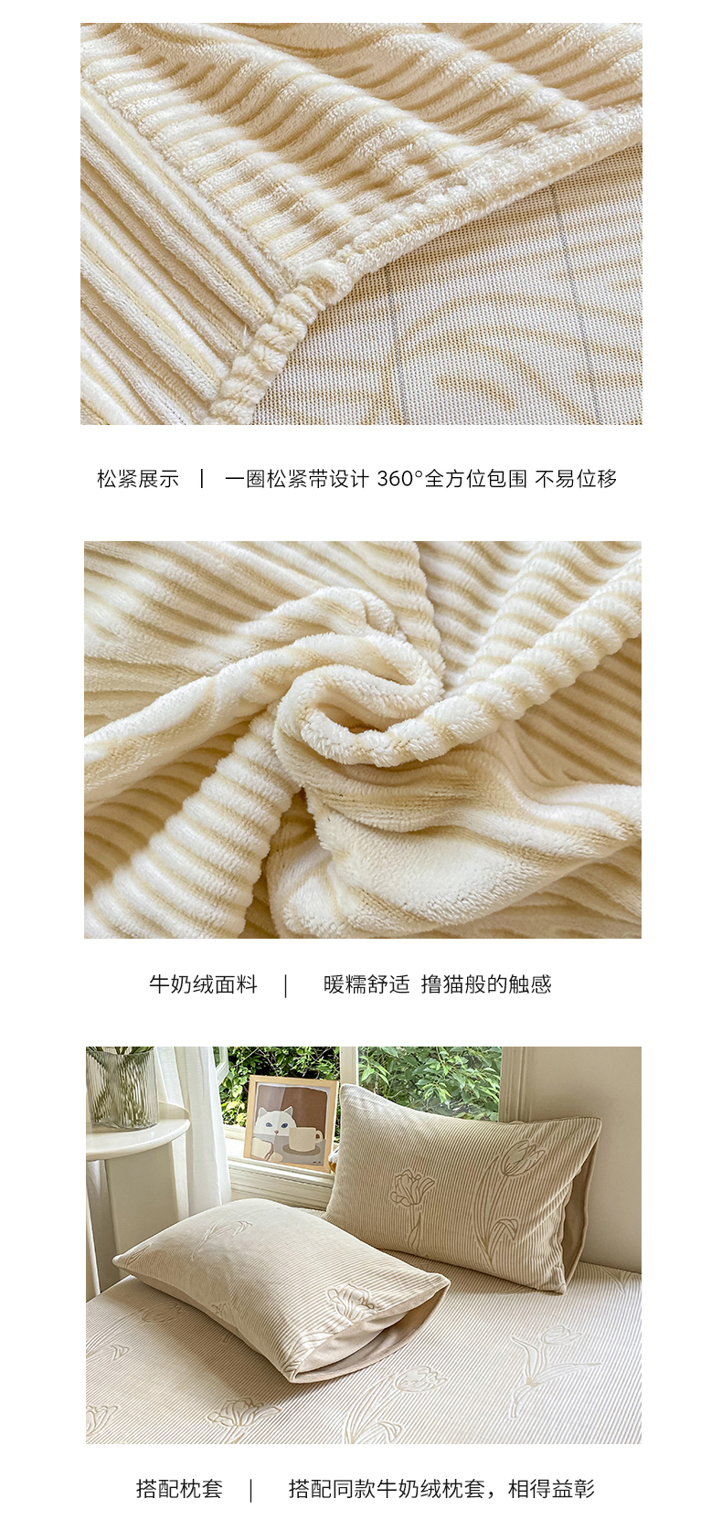 • 91家纺网 家纺一手货源 找家纺 其奥家纺 2025新款A类雕花绒牛奶绒床笠三件套单床笠宝宝绒婴儿绒 郁见 米咖