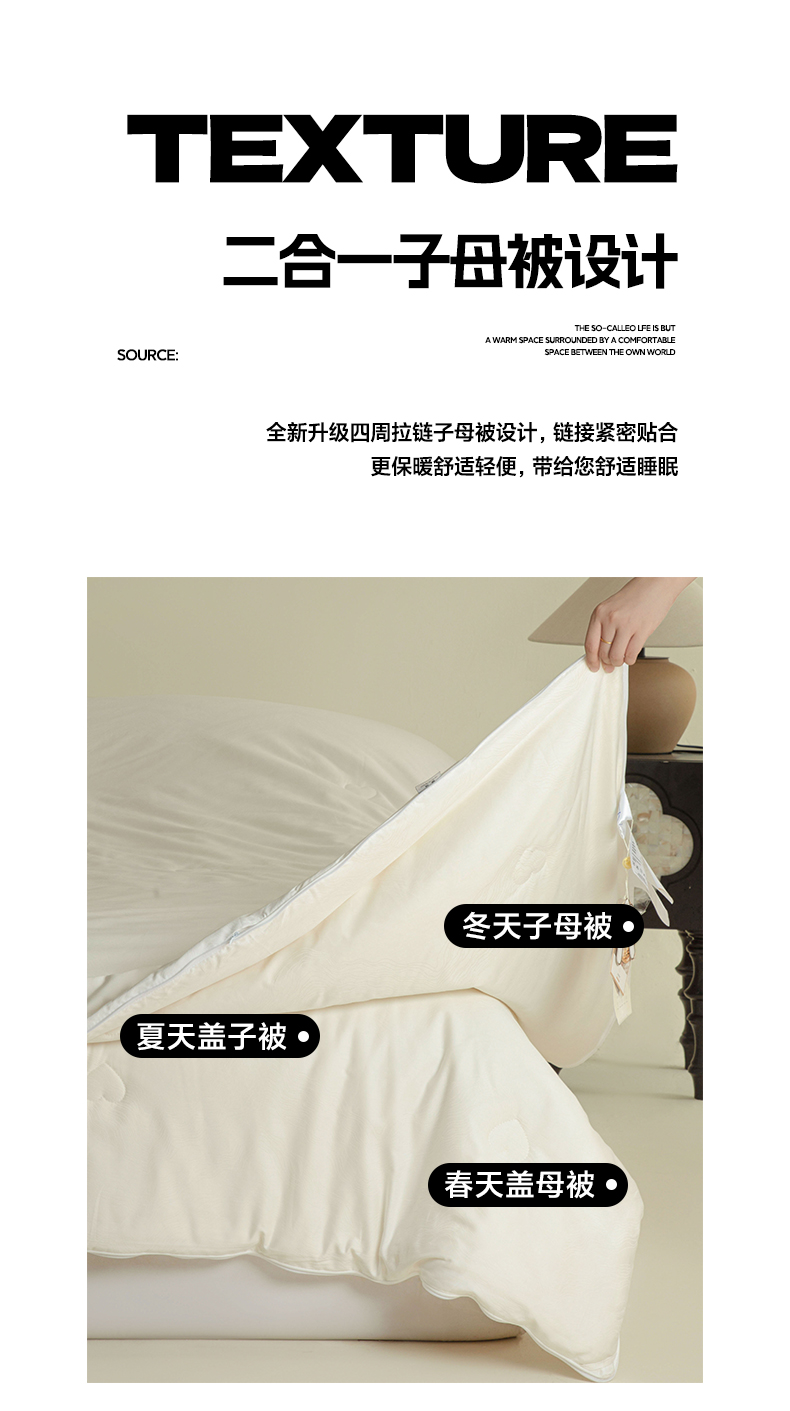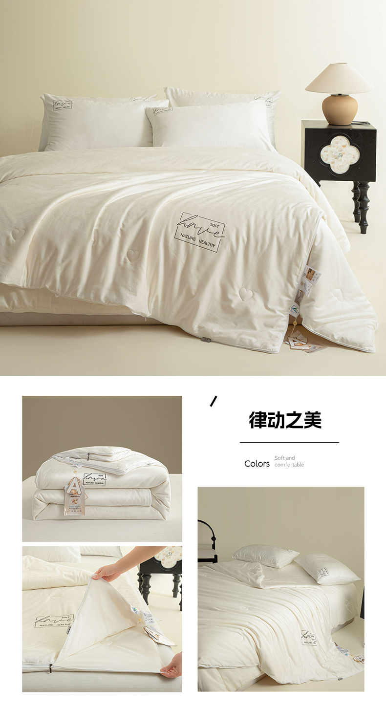 • 91家纺网 家纺一手货源 找家纺 莱登卡奴 2024新款全棉A类60支大提花20%桑蚕丝51%大豆纤维被芯系列 律动之美子母被
