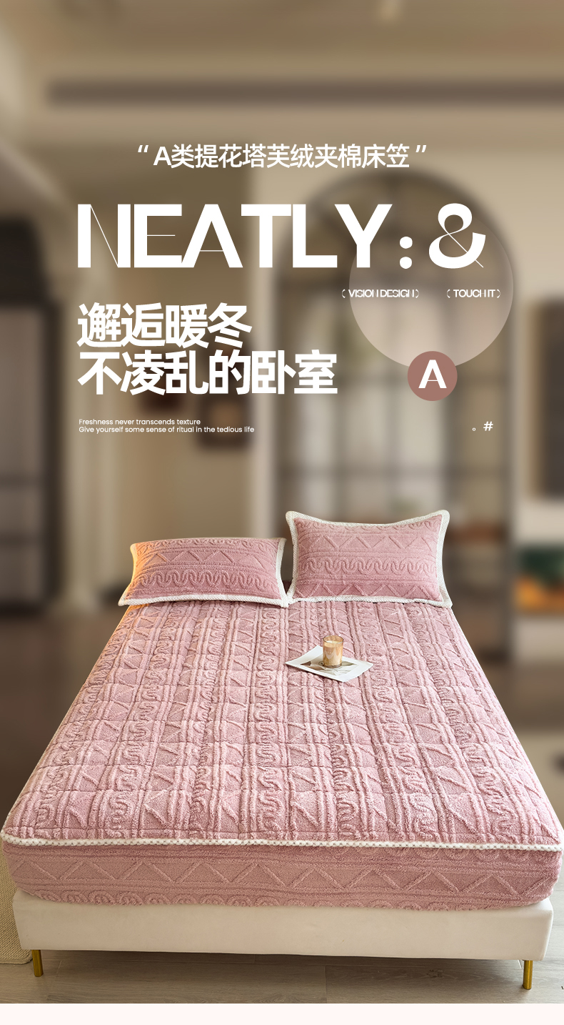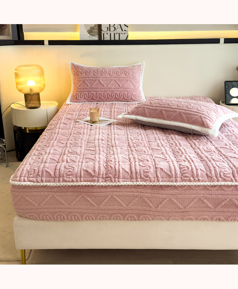 暖季家纺 2025新款A类高克重提花塔芙绒单床笠 浮笙-玫瑰粉床笠