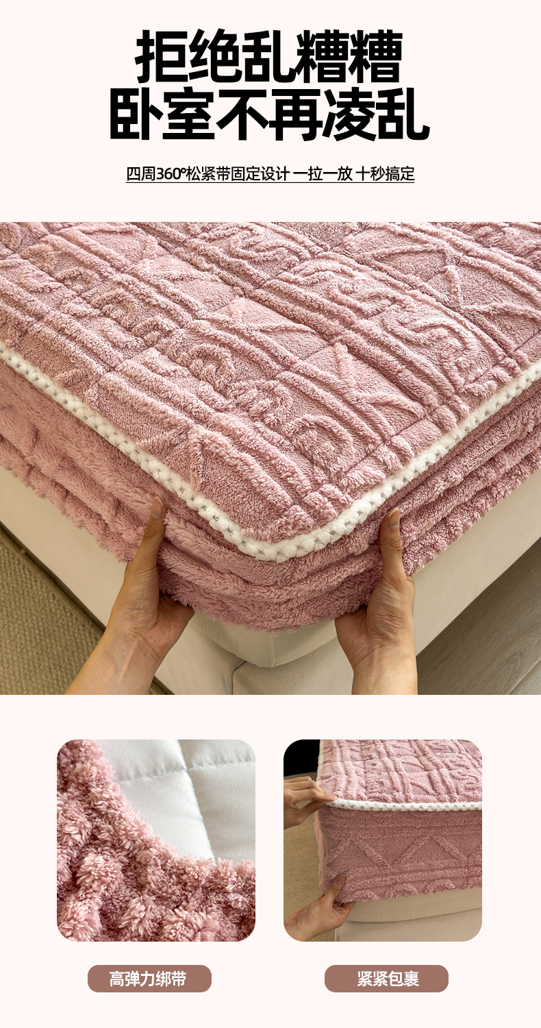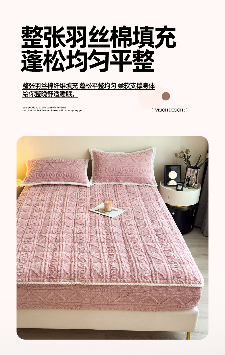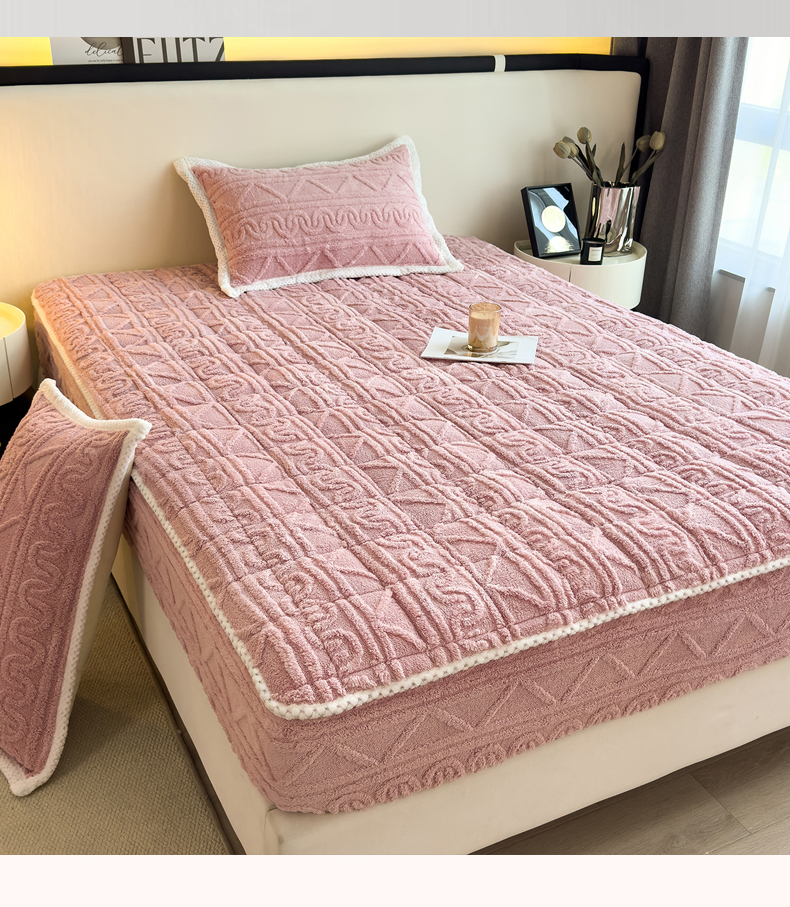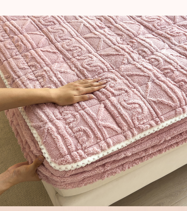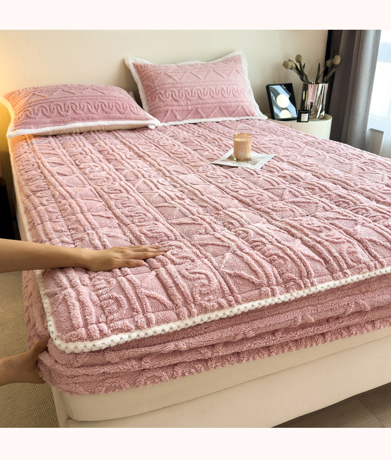 商品名称:暖季家纺 2025新款A类高克重提花塔芙绒单床笠 浮笙-玫瑰粉床笠