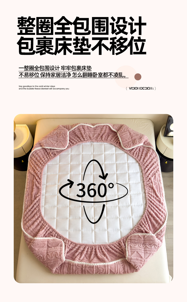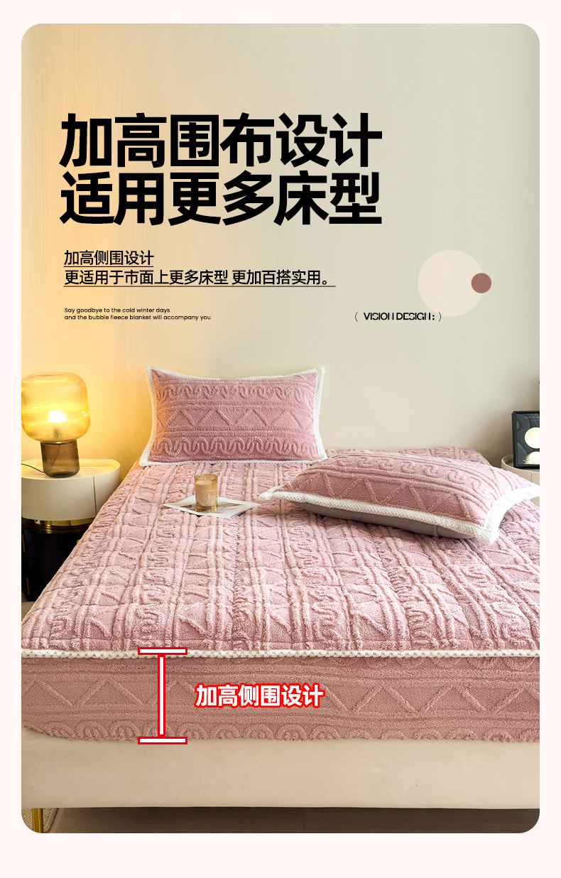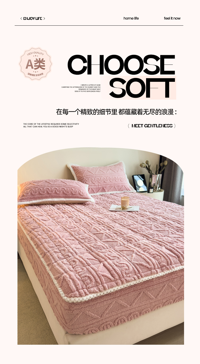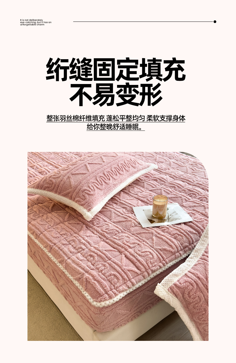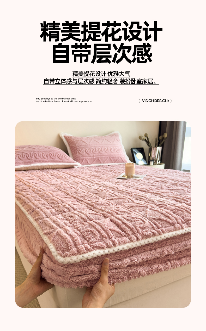 商品名称:暖季家纺 2025新款A类高克重提花塔芙绒单床笠 浮笙-玫瑰粉床笠