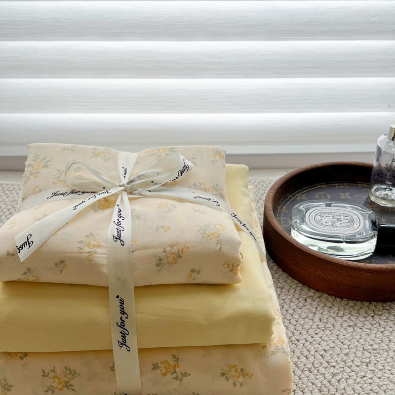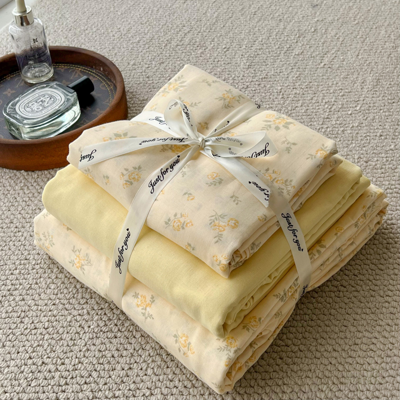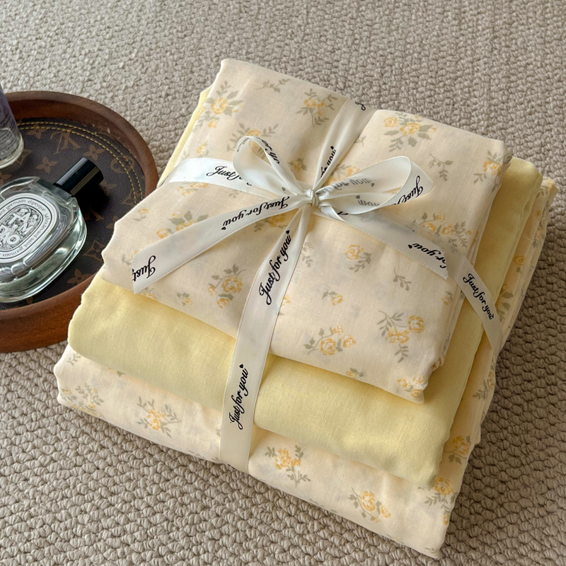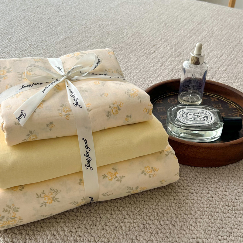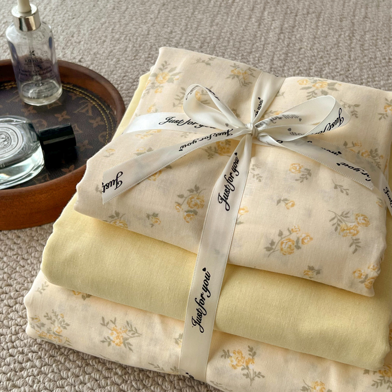 一比一家纺 2025新款全棉母婴级抗菌有氧全棉双层纱亲肤全棉小清新印花三件套四件套 小晴天