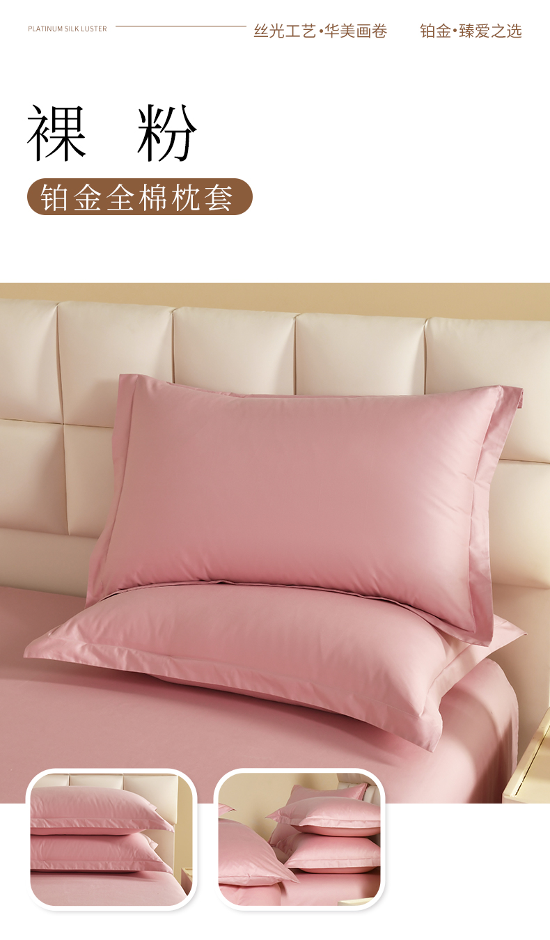 商品名称:元元被芯 2025款纯色全丝光-全精梳高密纺-铂金A类全棉枕套 裸粉