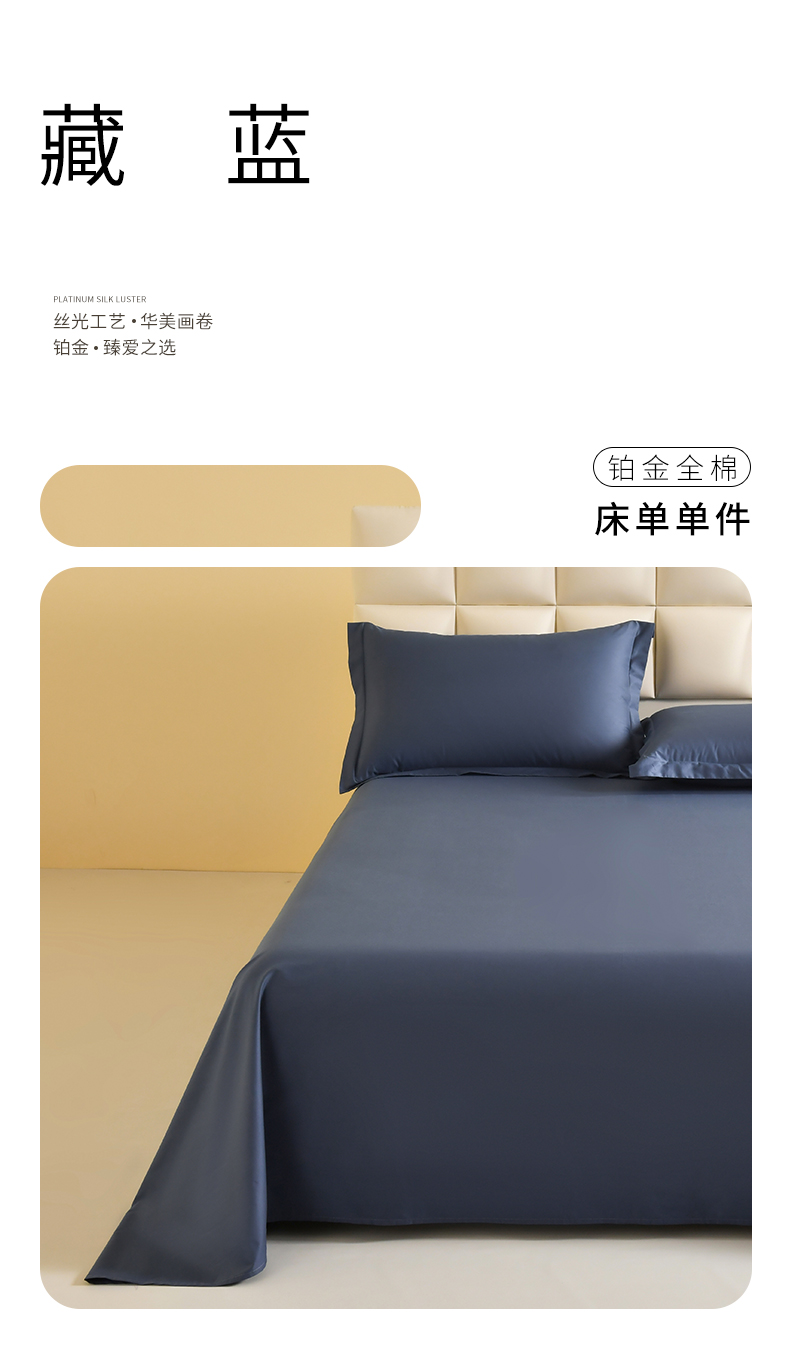 商品名称:元元被芯 2025款纯色全丝光-全精梳高密纺-铂金A类全棉单床单 藏蓝