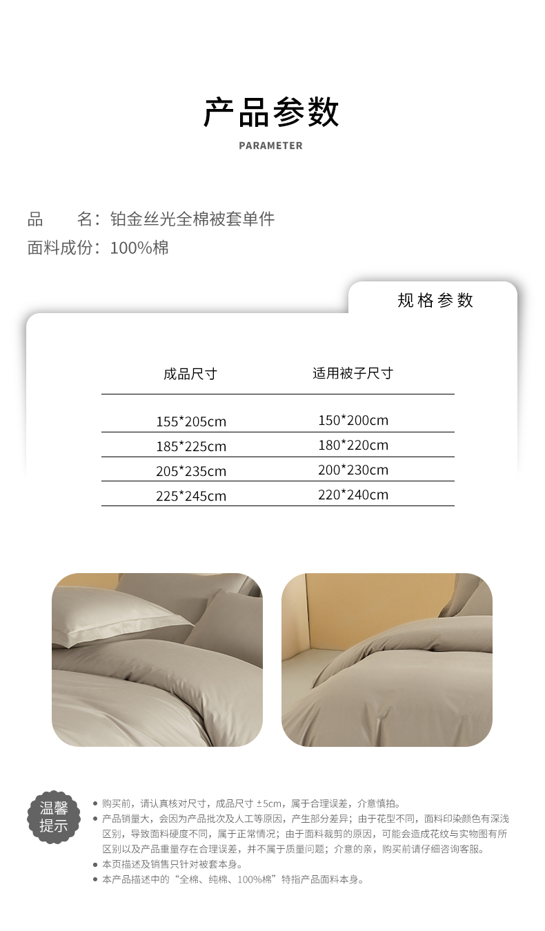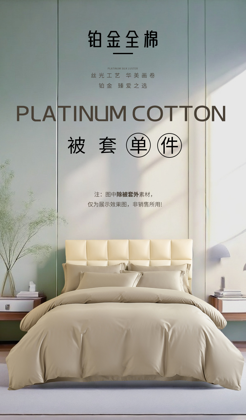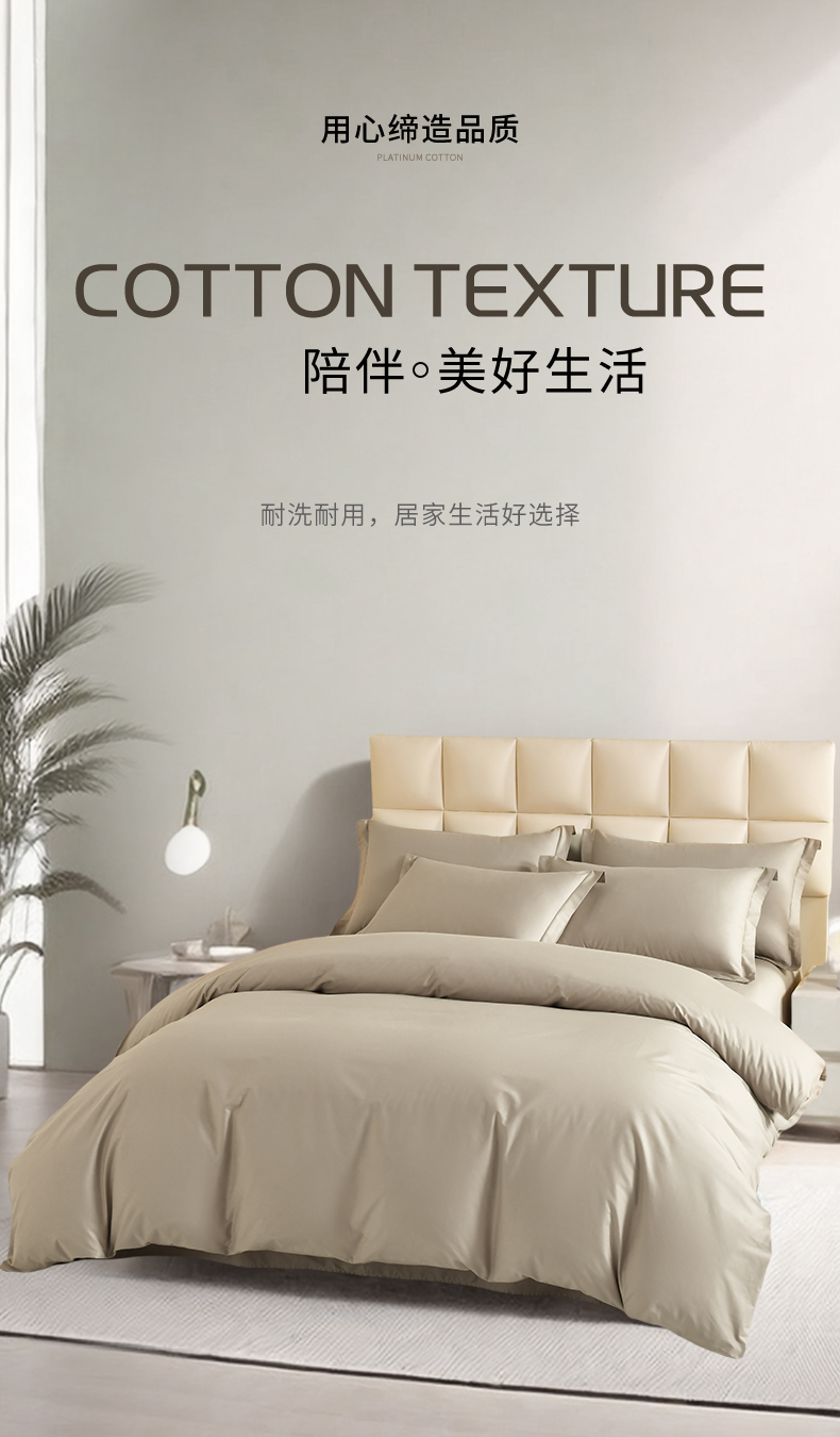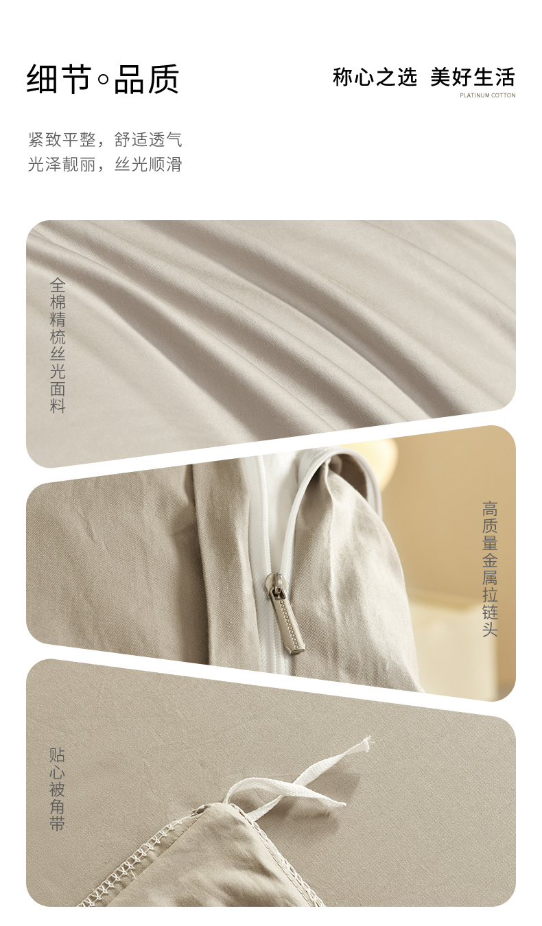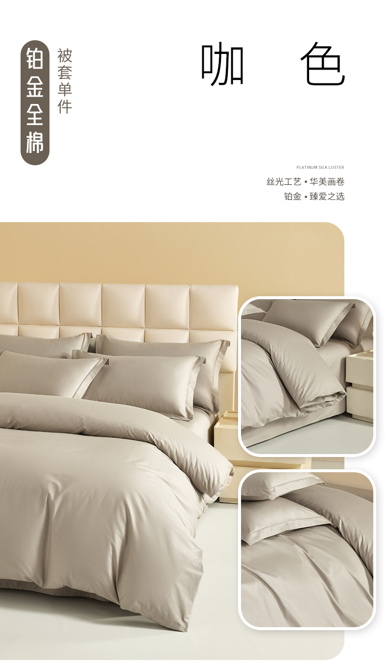 商品名称:元元被芯 2025款纯色全丝光-全精梳高密纺-铂金A类全棉单被套 咖色