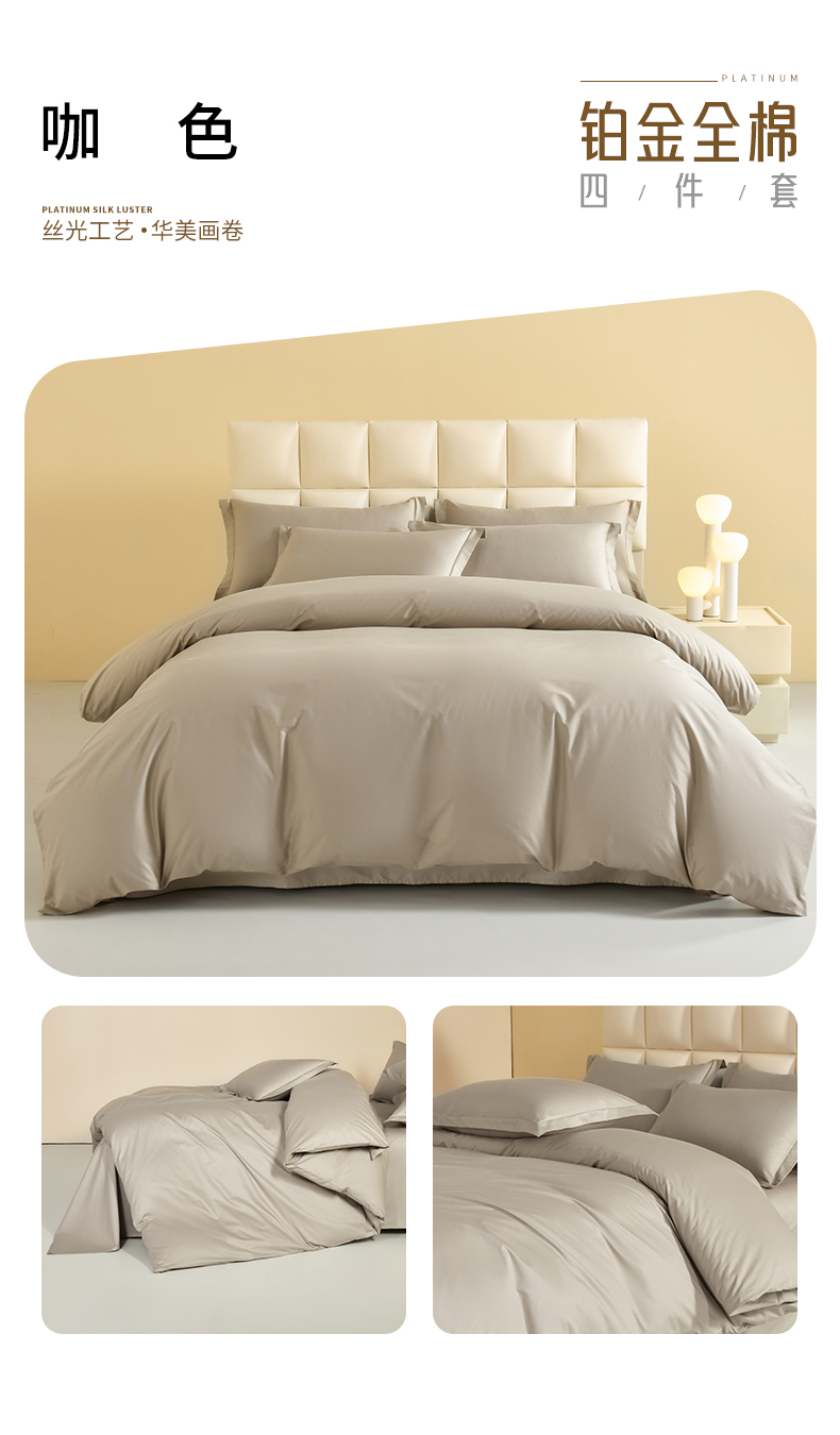 当前位置: 91家纺网 > 商品网购 > 床品套件 > 四件套 > 全棉活性四件套 > 元元被芯 2025款纯色全丝光-全精梳高密纺-铂金A类全棉四件套 咖色