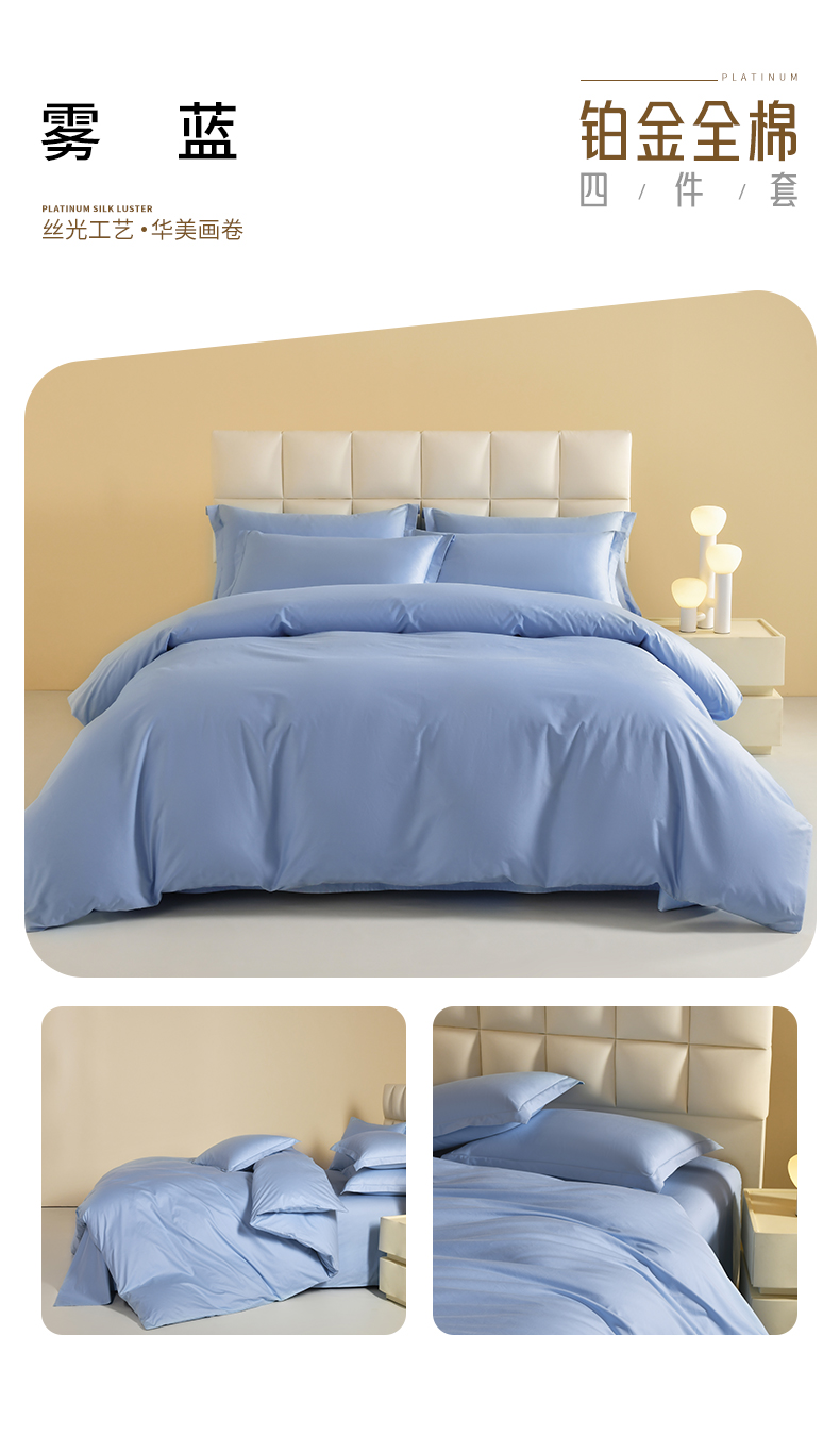 当前位置: 91家纺网 > 商品网购 > 床品套件 > 四件套 > 全棉活性四件套 > 元元被芯 2025款纯色全丝光-全精梳高密纺-铂金A类全棉四件套 雾蓝