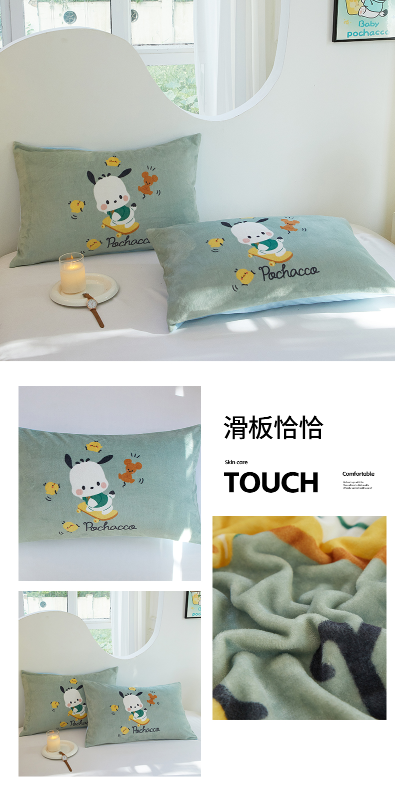 商品名称:蘭菲家纺 2024新款牛奶绒卡通三丽鸥单品枕套 向往