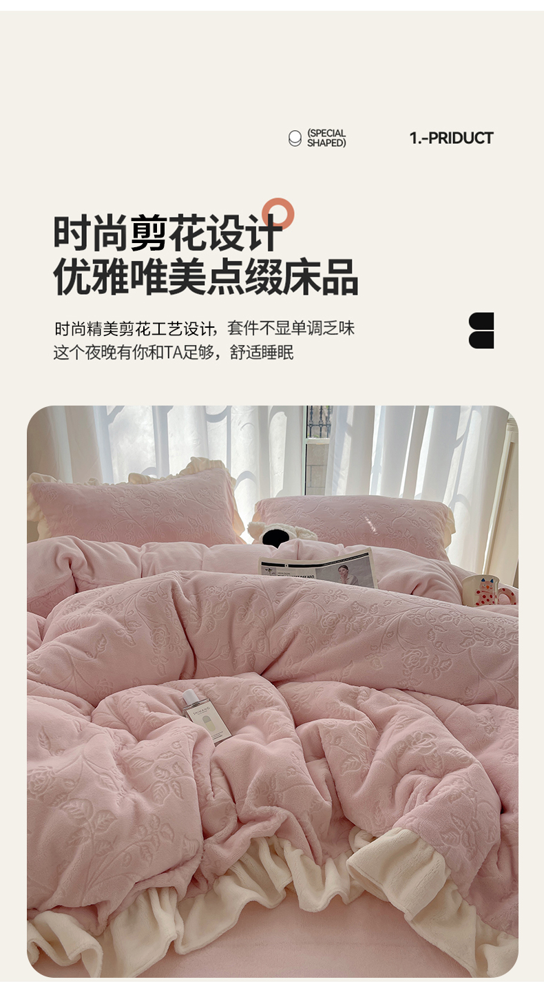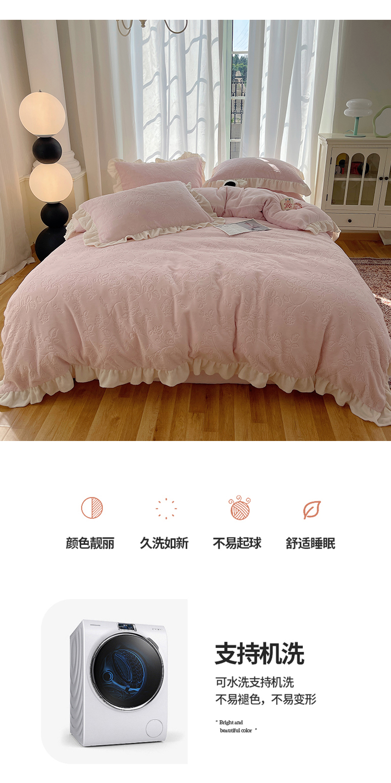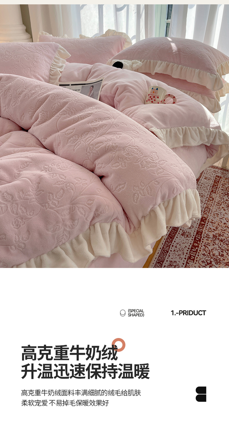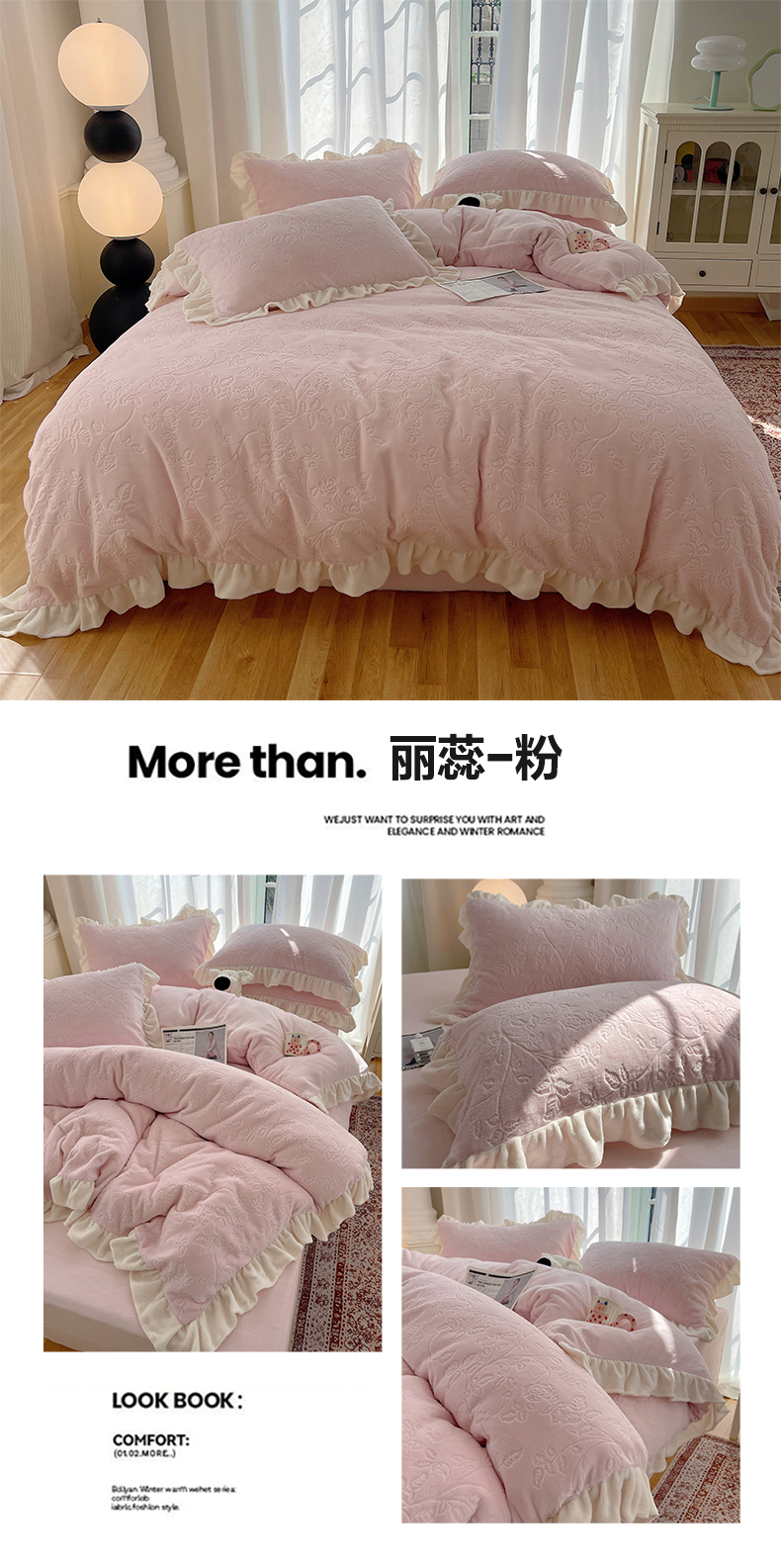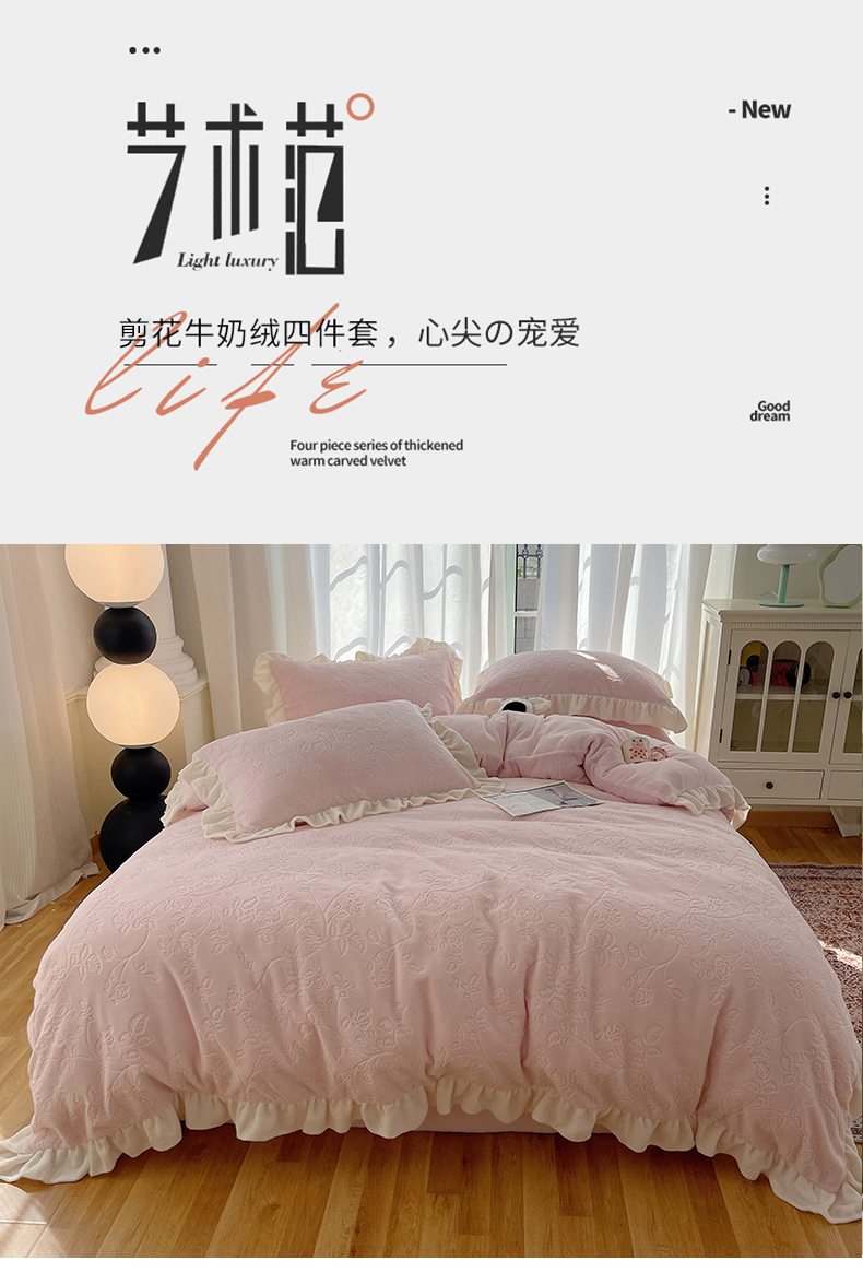 艾咪-Amy ntmy 2024新款花边款雕花牛奶绒四件套 丽蕊-粉