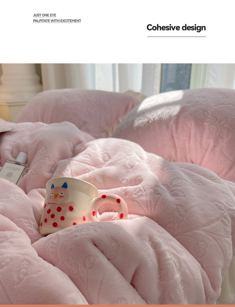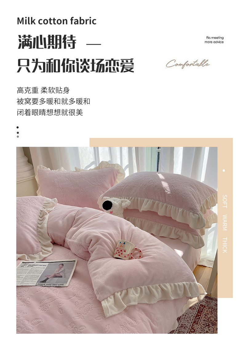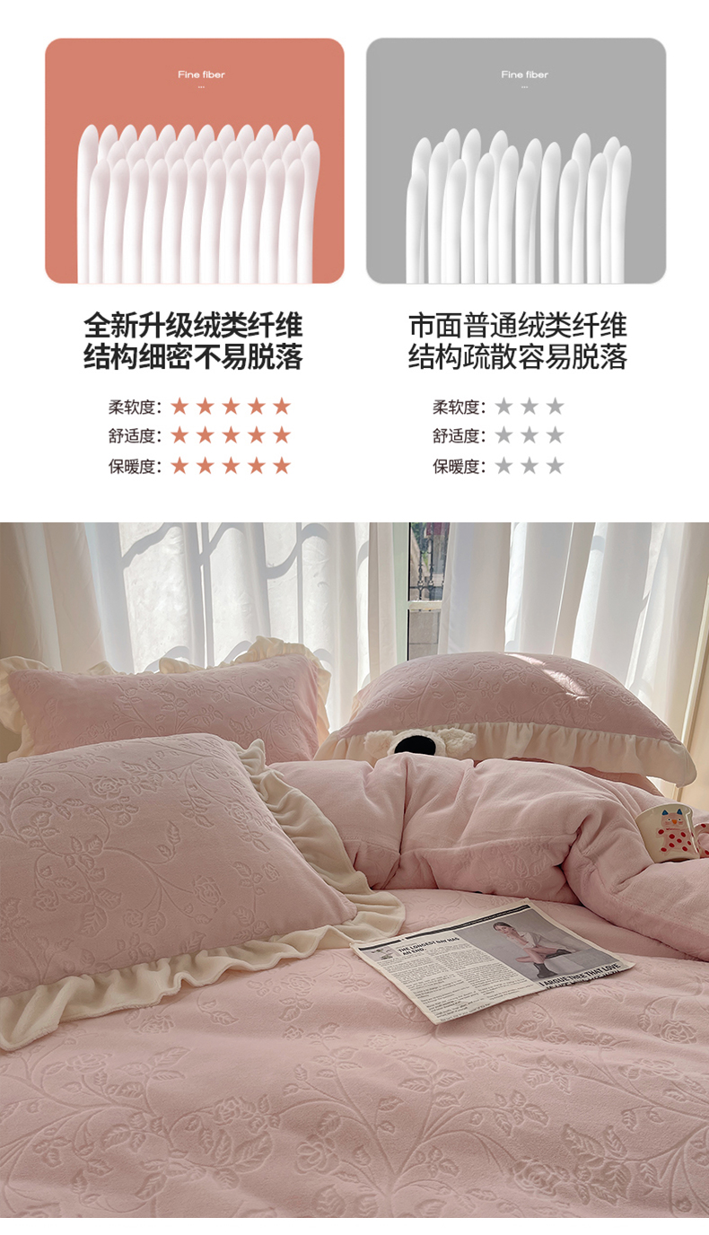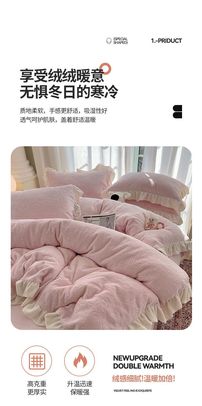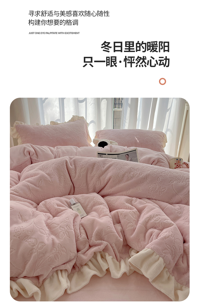艾咪-Amy ntmy 2024新款花边款雕花牛奶绒四件套 丽蕊-粉