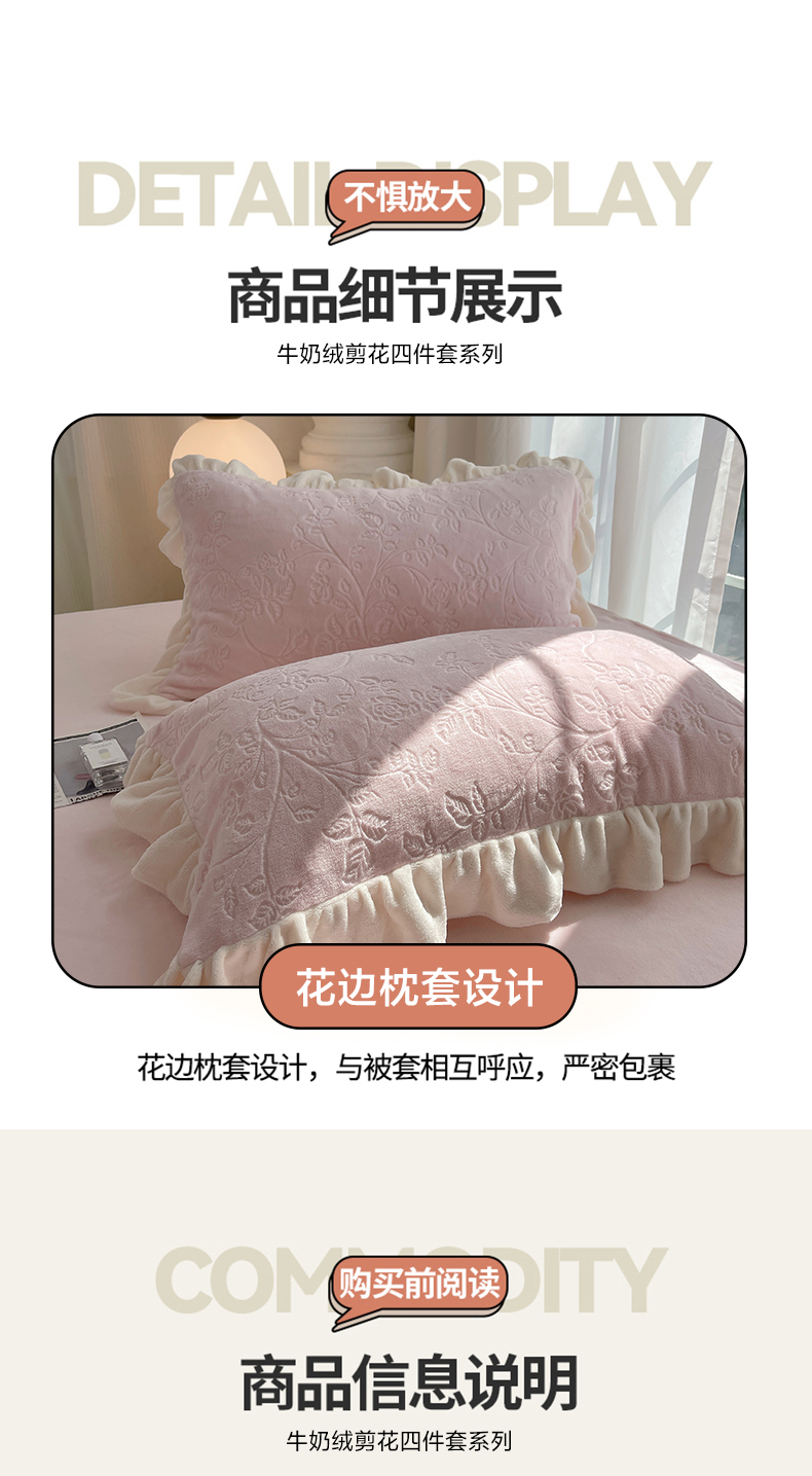 商品名称:艾咪-Amy ntmy 2024新款花边款雕花牛奶绒四件套 丽蕊-粉