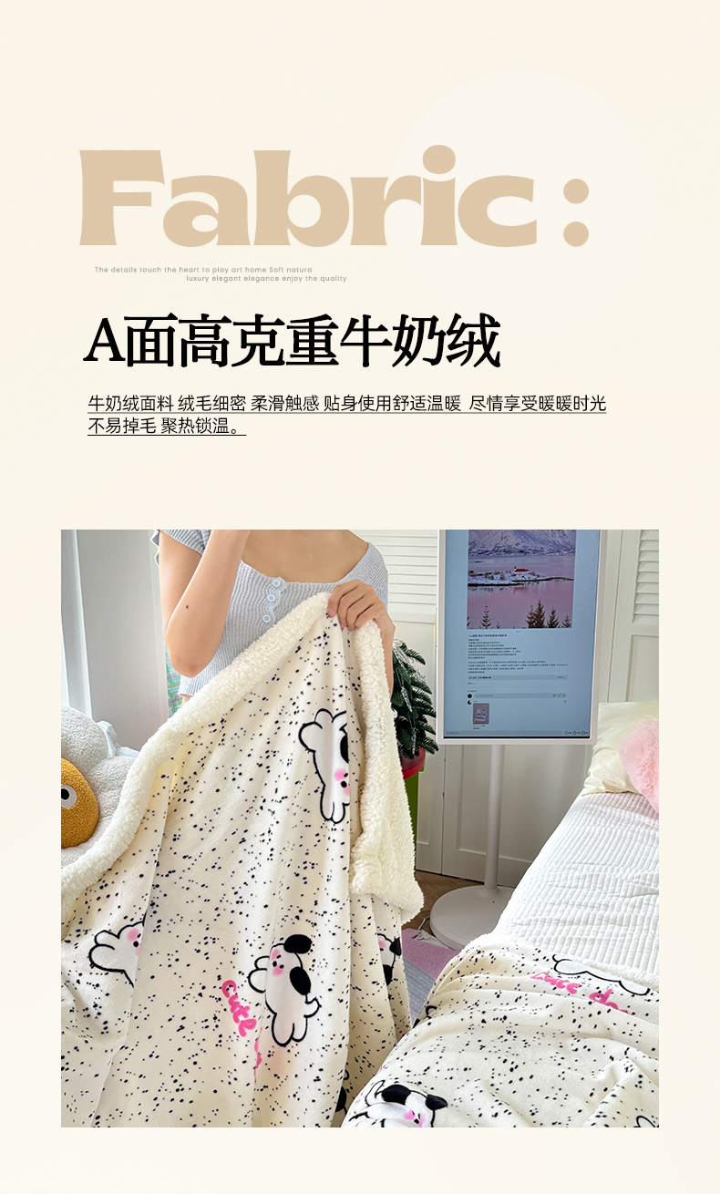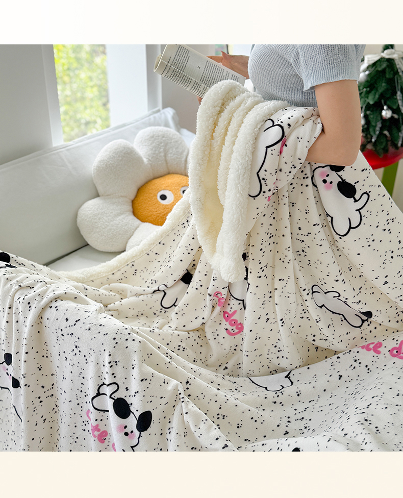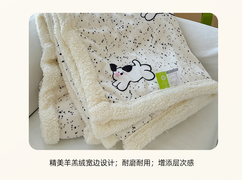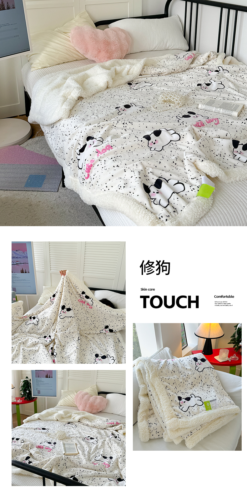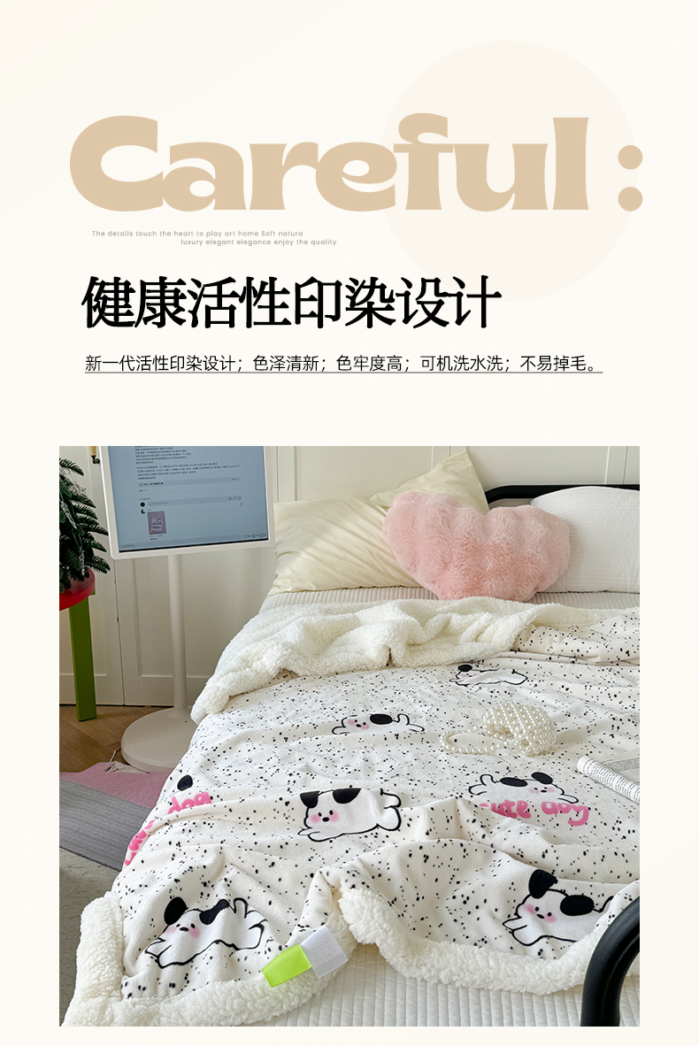 吉象家纺 2024新款高克重牛奶绒羊羔绒印花毛毯 修狗