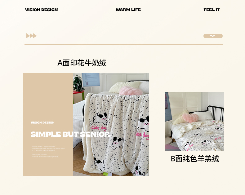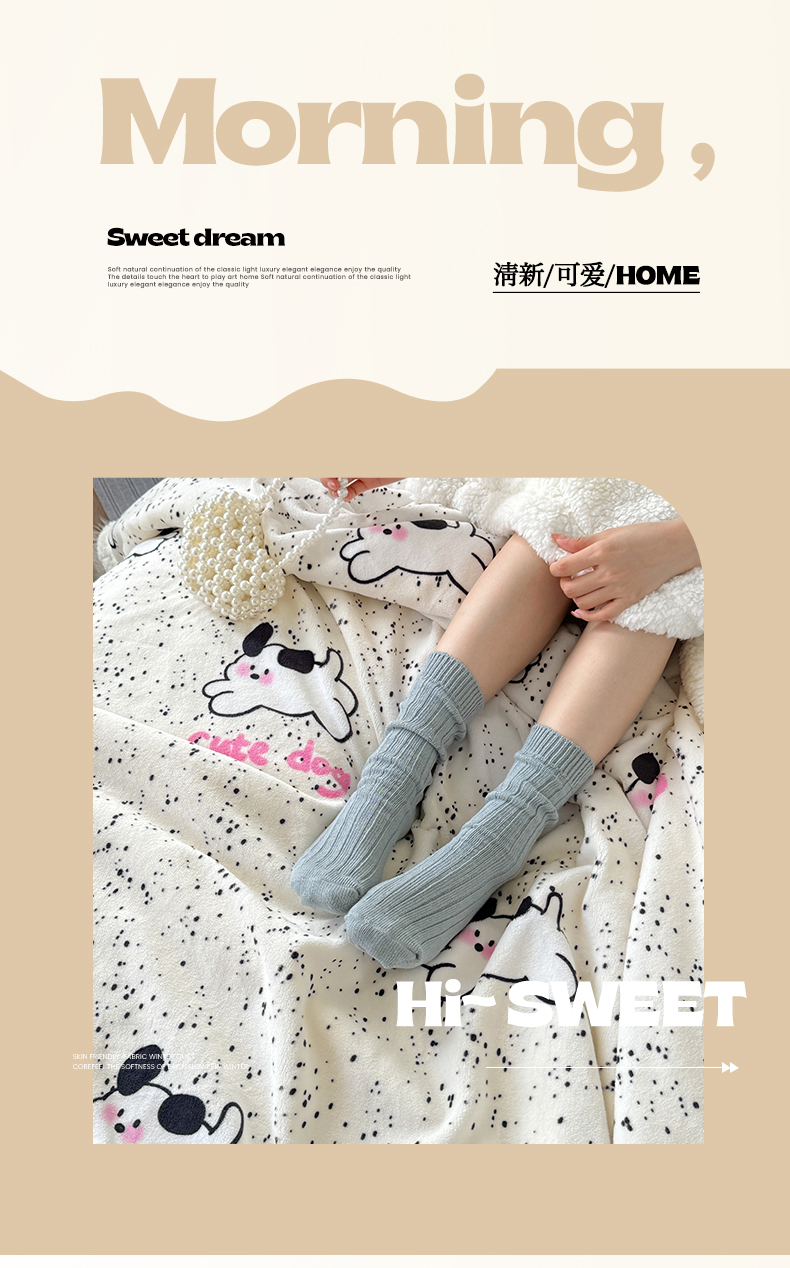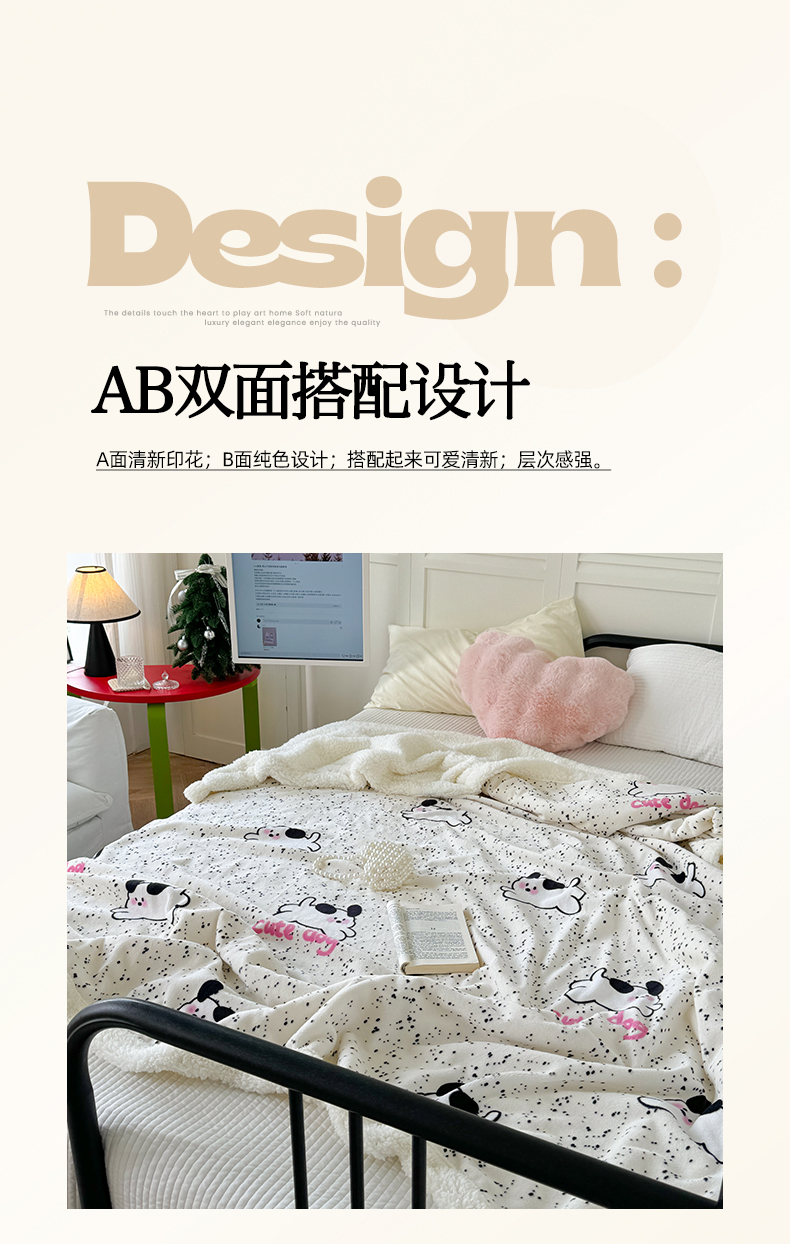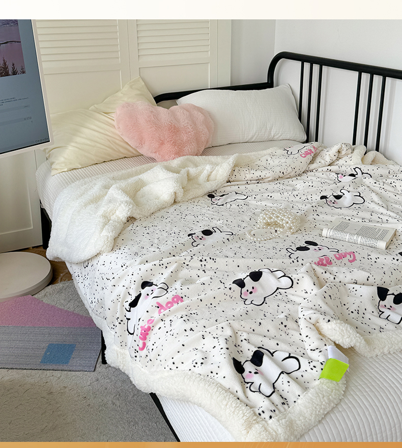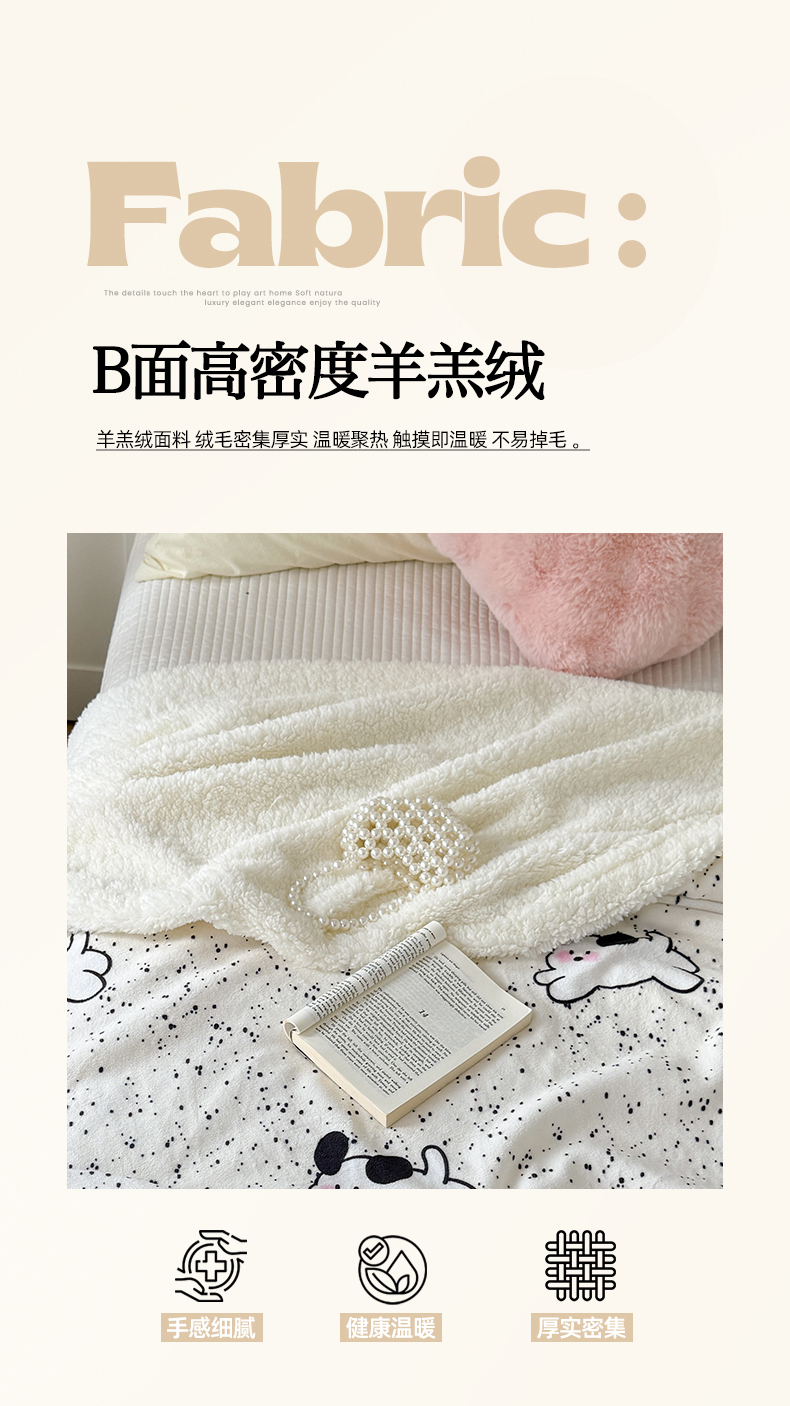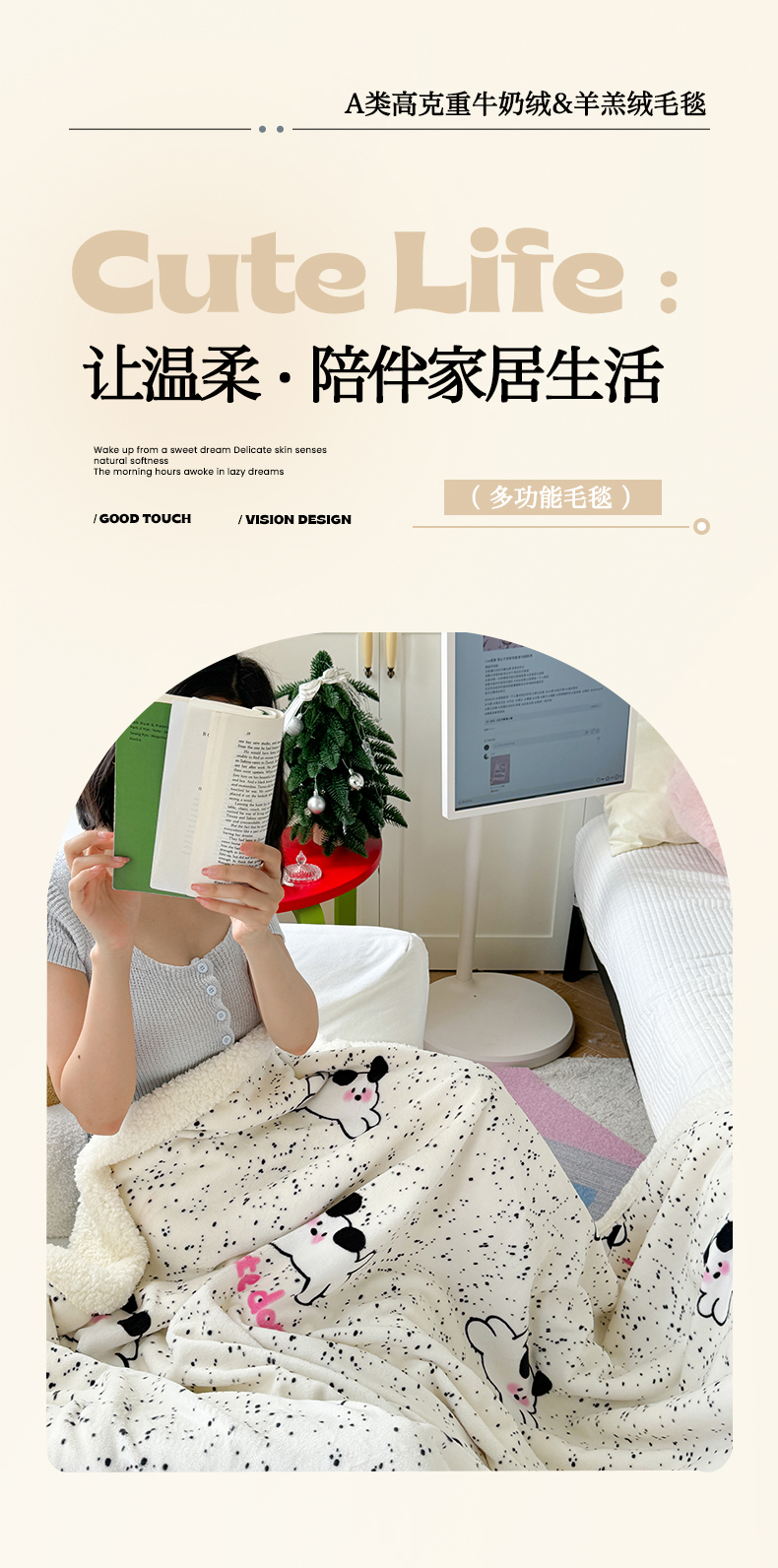 吉象家纺 2024新款高克重牛奶绒羊羔绒印花毛毯 修狗