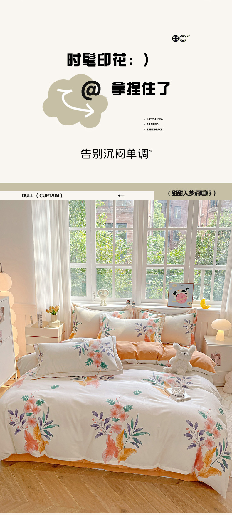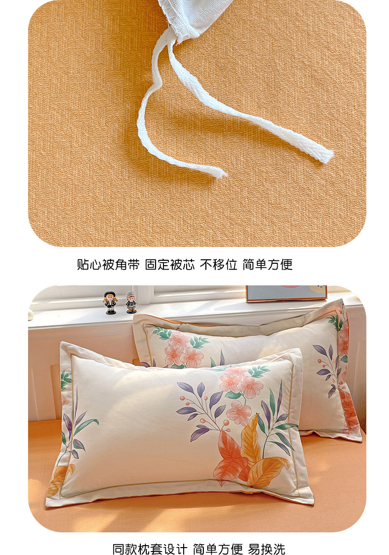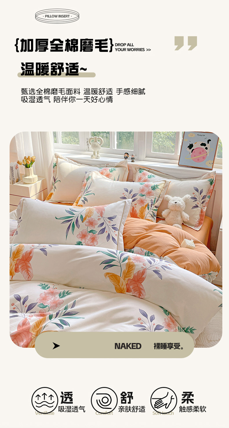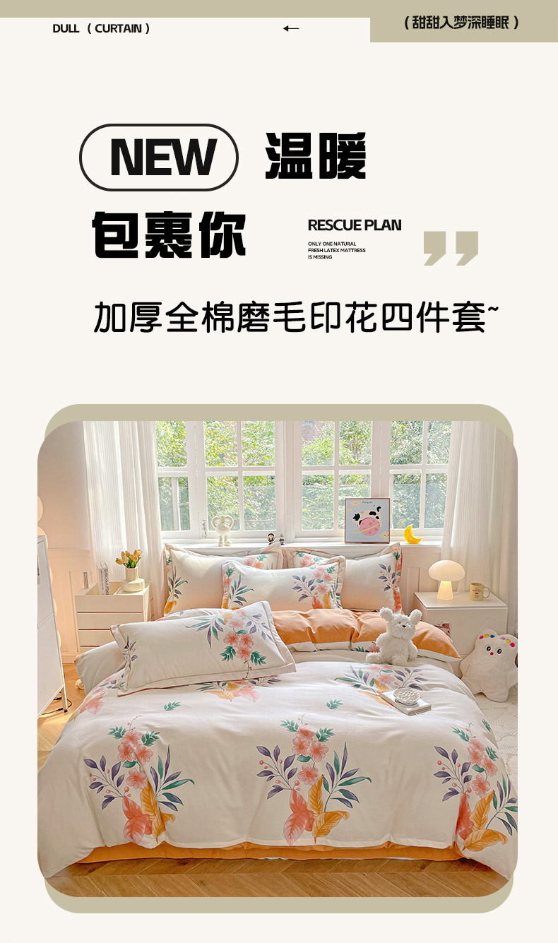 商品名称:暖芯优选 2025新款直播爆款加厚全棉磨毛四件套喷气印花纯棉(一字绣工艺款)学生三件套10月上新 金秋