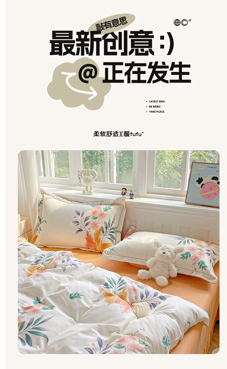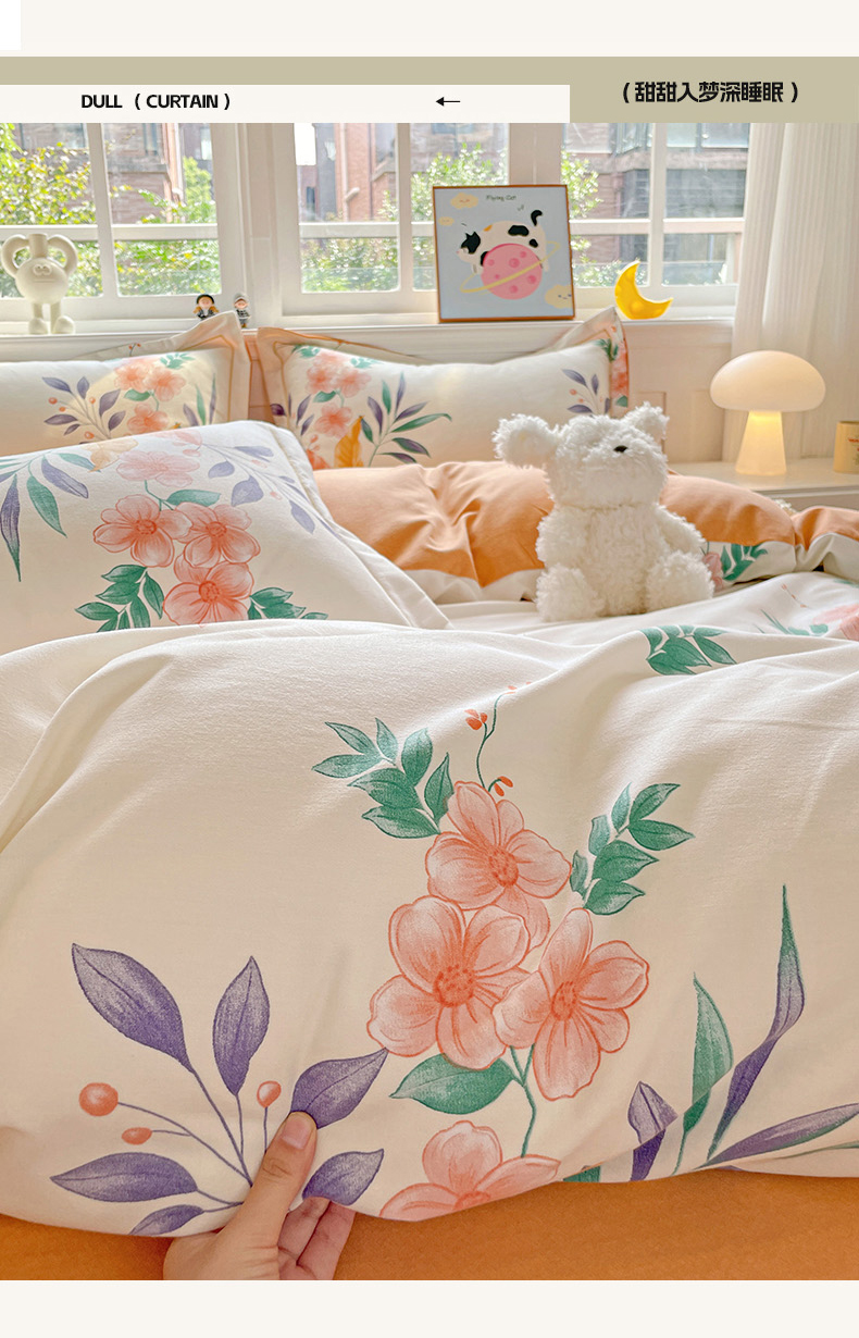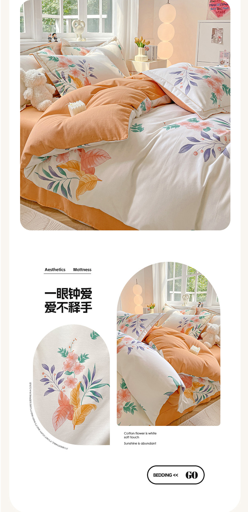 商品名称:暖芯优选 2025新款直播爆款加厚全棉磨毛四件套喷气印花纯棉(一字绣工艺款)学生三件套10月上新 金秋